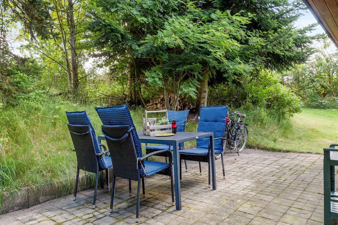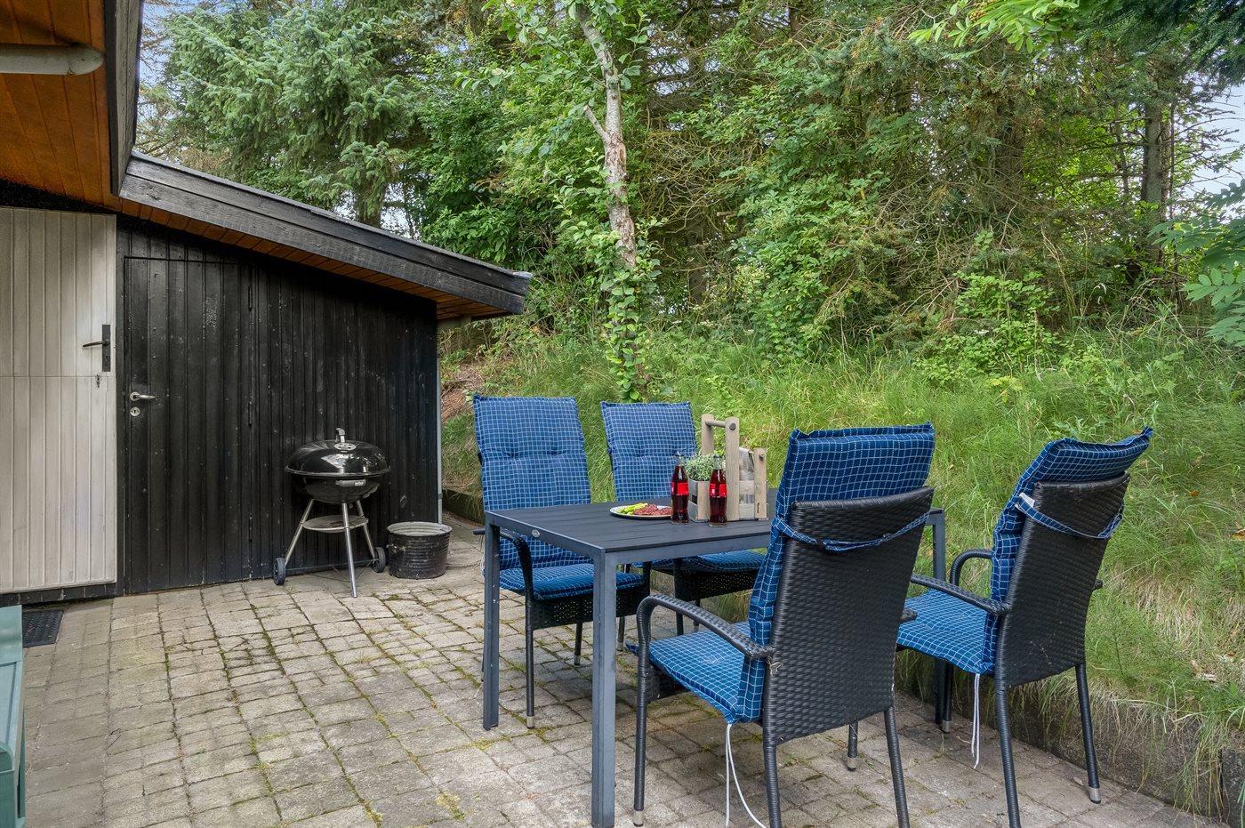 Ferieboligen er beliggende på en 1680 m² stor naturgrund. Der er 840 m til havet. Nærmeste forretning er beliggende i en afstand af 400 m. Til ferieboligen hører åbent terrasseareal. Desuden er der overdækket terrasse. Der er redskabsrum. Grill til rådighed. Parkering ved ferieboligen.