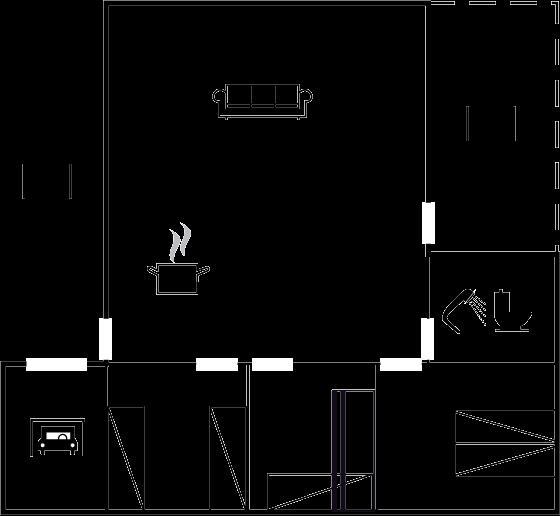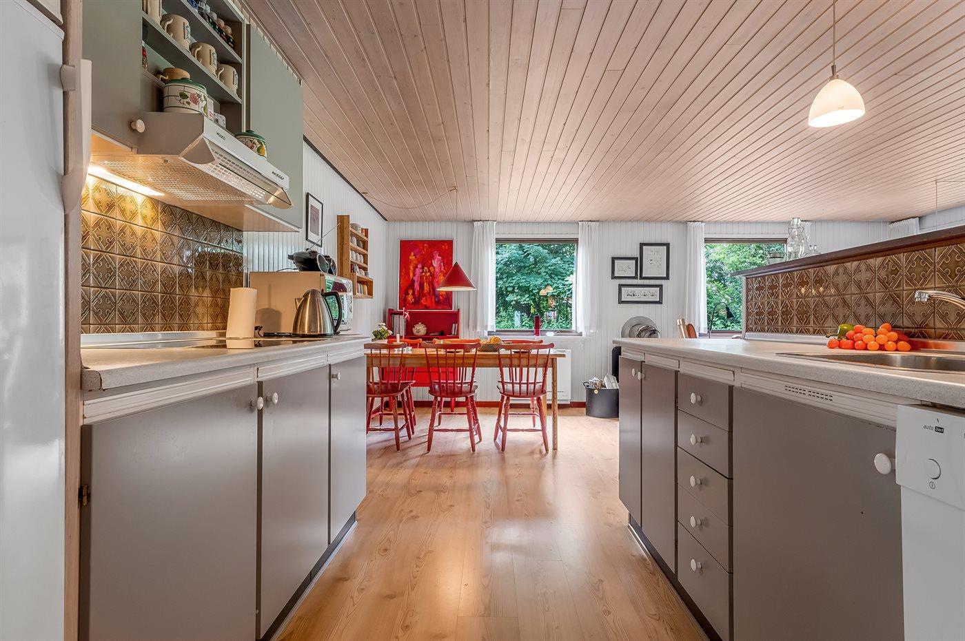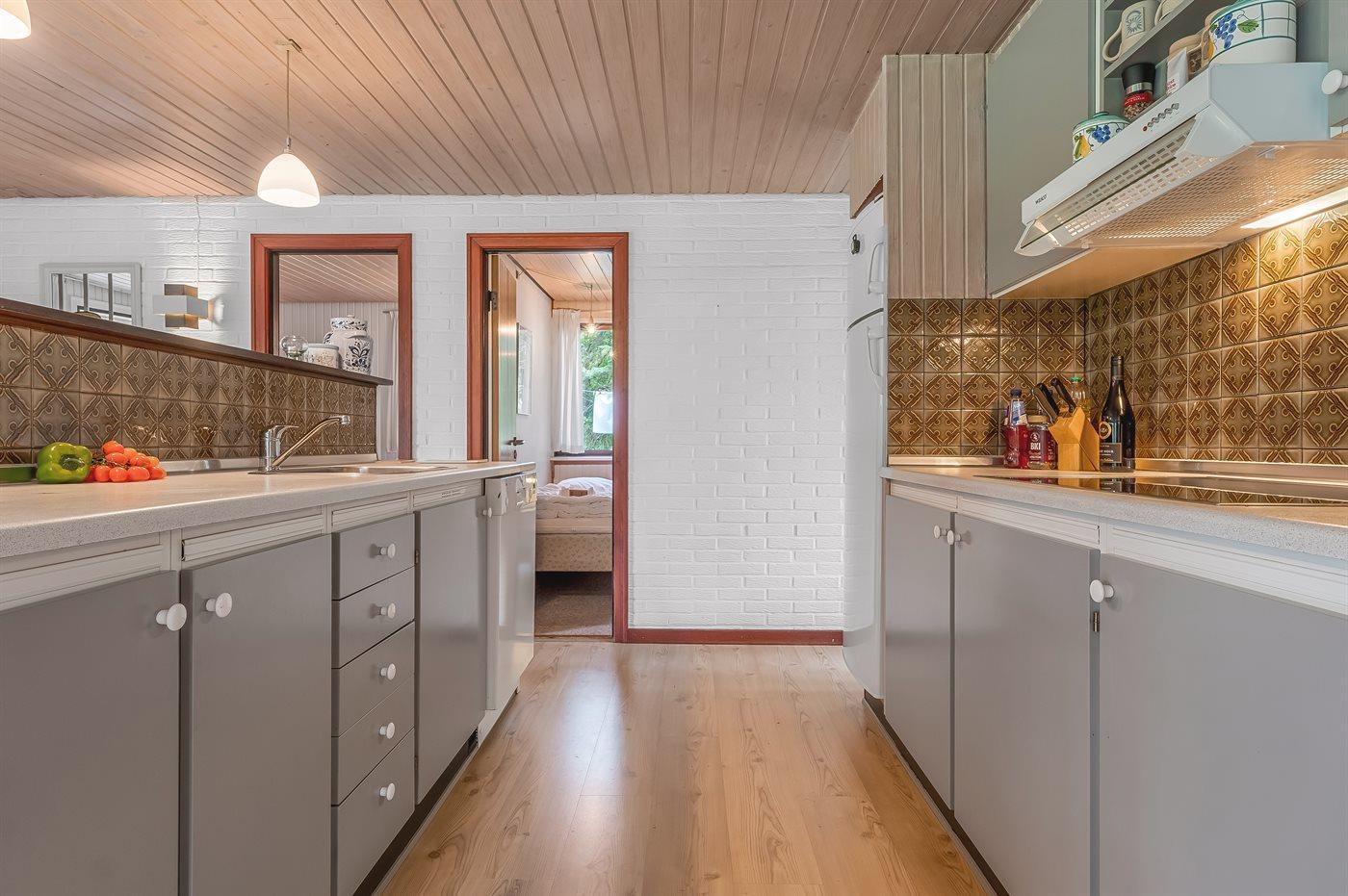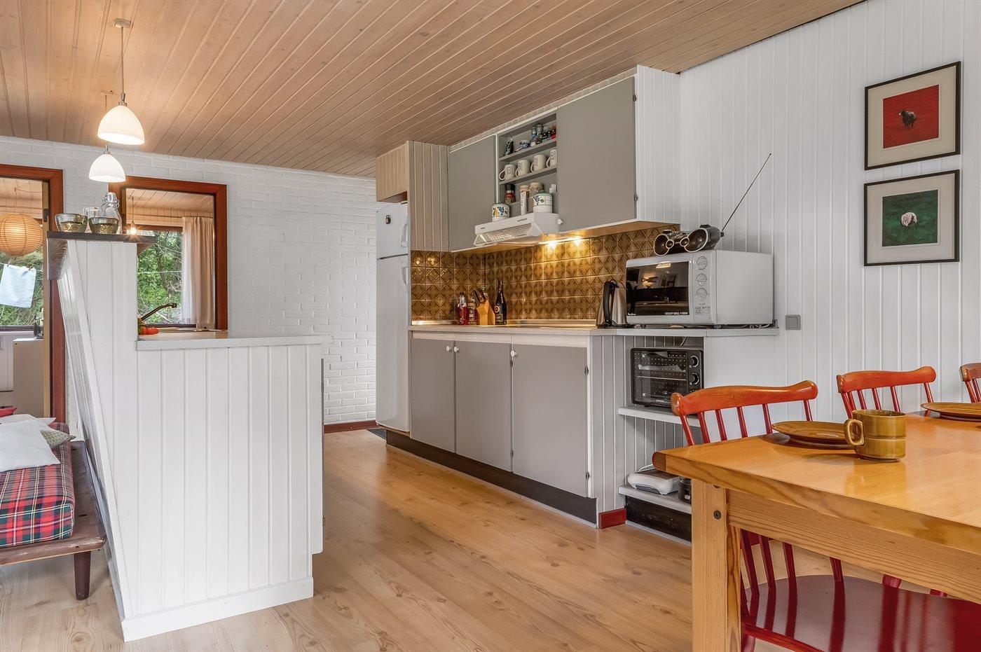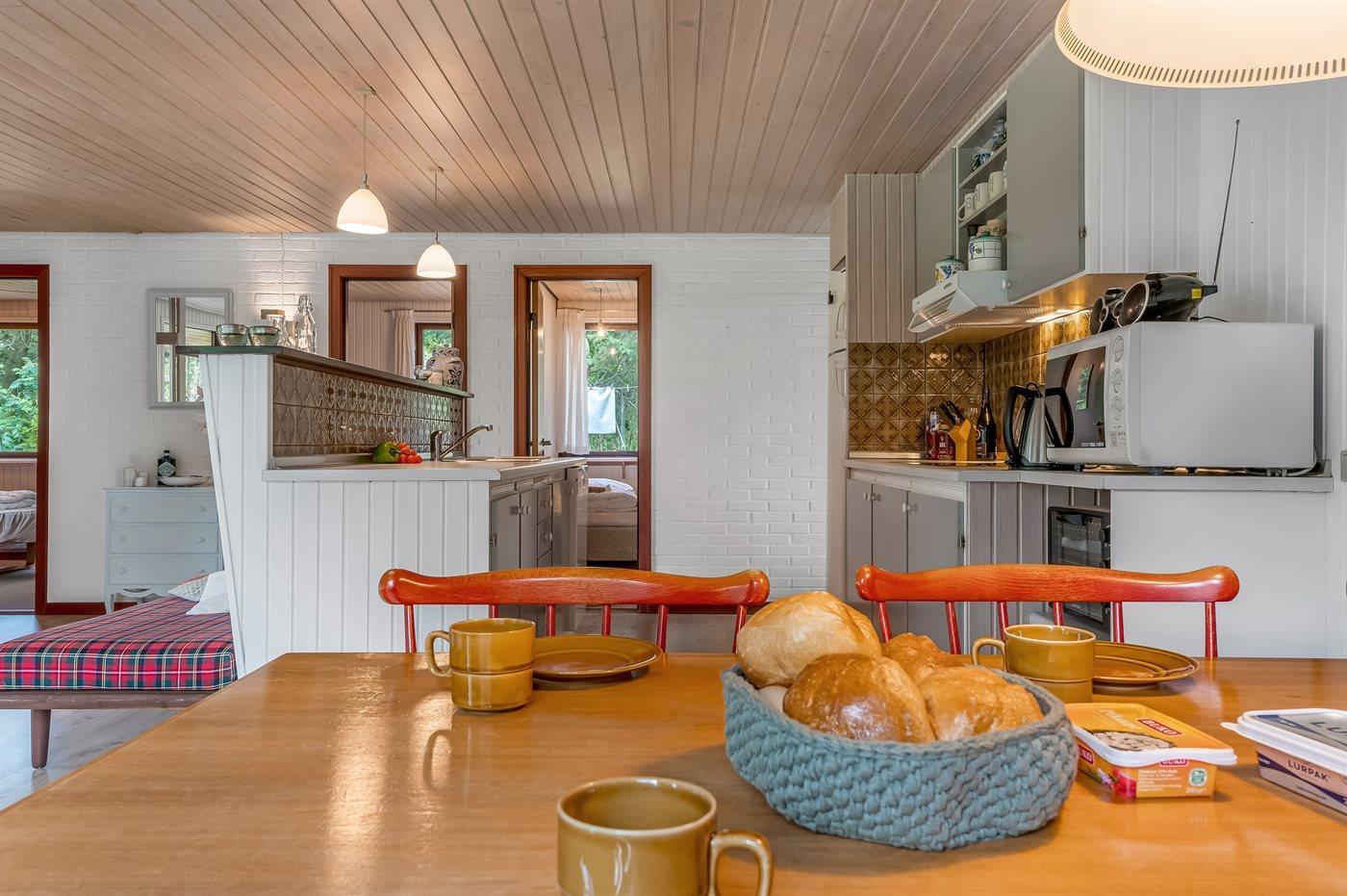 Køkkenet er udstyret med 1 køleskab. Der er 4 keramiske kogeplader, varmluftovn, mikrobølgeovn, Airfryer samt opvaskemaskine.