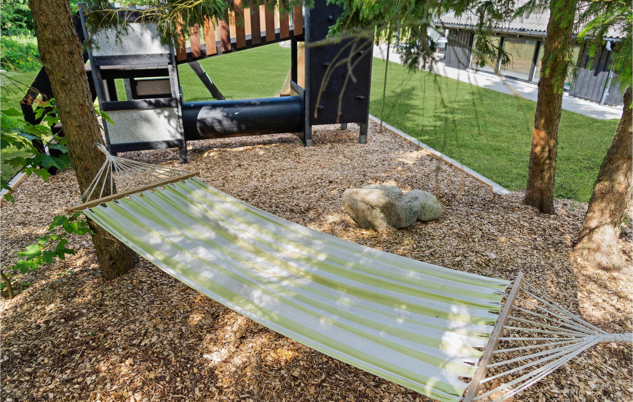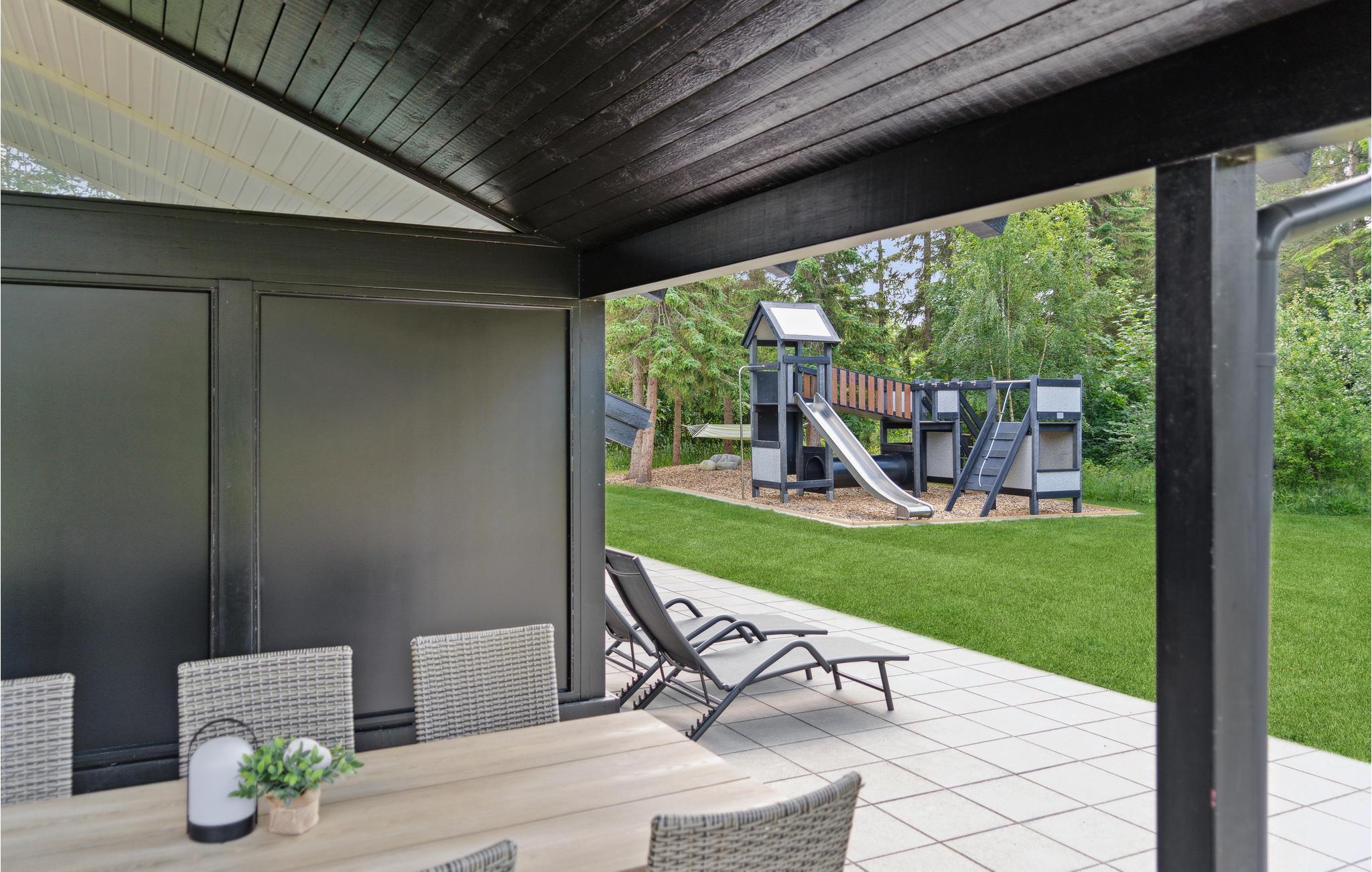 Det skønne feriehus indbyder til en afslappende og luksuriøs ferie. Huset er moderne indrettet og tilbyder masser af plads og mange komfortable faciliteter. Et højdepunkt er den 27 grader varme indendørspool, som I kan tilbringe timevis med at svømme baner og plaske rundt i. I det veludstyrede køkken kan I tilberede lækre feriemåltider og nyde dem ved spisebordet eller tage dem med ud på terrassen. Her kan I sole jer eller læse en god bog gennem dagen, mens jeres børn boltrer sig og leger i den store have. Afslut en skøn feriedag med et glas vin på terrassen efterfulgt af en god film på fladskærmen i opholdsstuen.