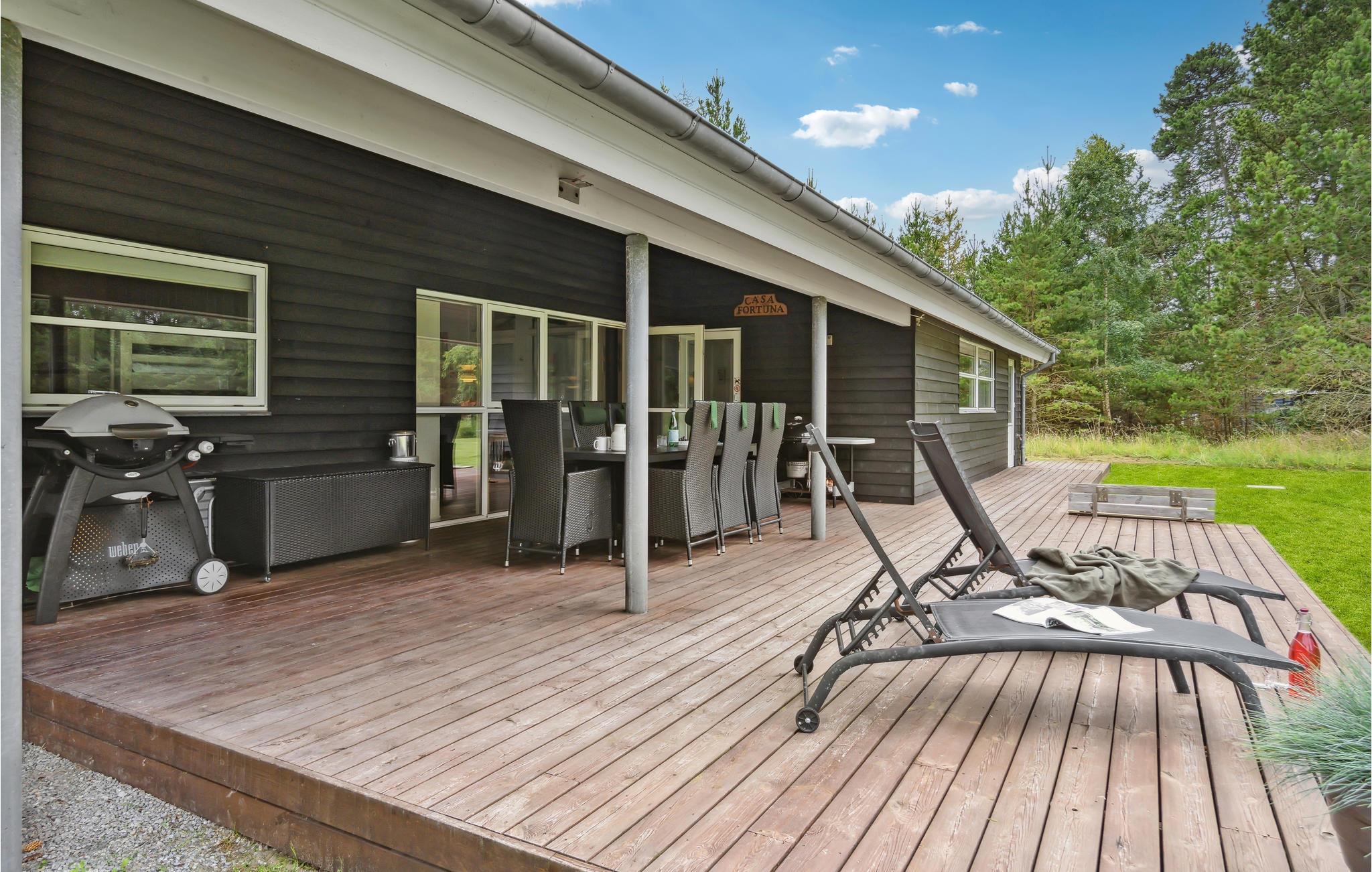 Velkommen til dette rummelige hus, der ligger på en vidunderlig grund og ikke langt fra strandene i det nordlige Jylland. Her får I en fantastisk base for en ferie med masser af sjov og afslapning for alle aldre. Indretningen fremtræder flot og indbydende over hele linjen med pæn kunst på væggene, komfortable møbler og et fuldt udstyret køkken, hvor familiens kokke kan kræse om livretterne. Prikken over i'et er dog pool-afdelingen, hvor børnene kan plaske rundt i den rummelige pool, mens de voksne tager den lidt med ro i spabadet eller saunaen.