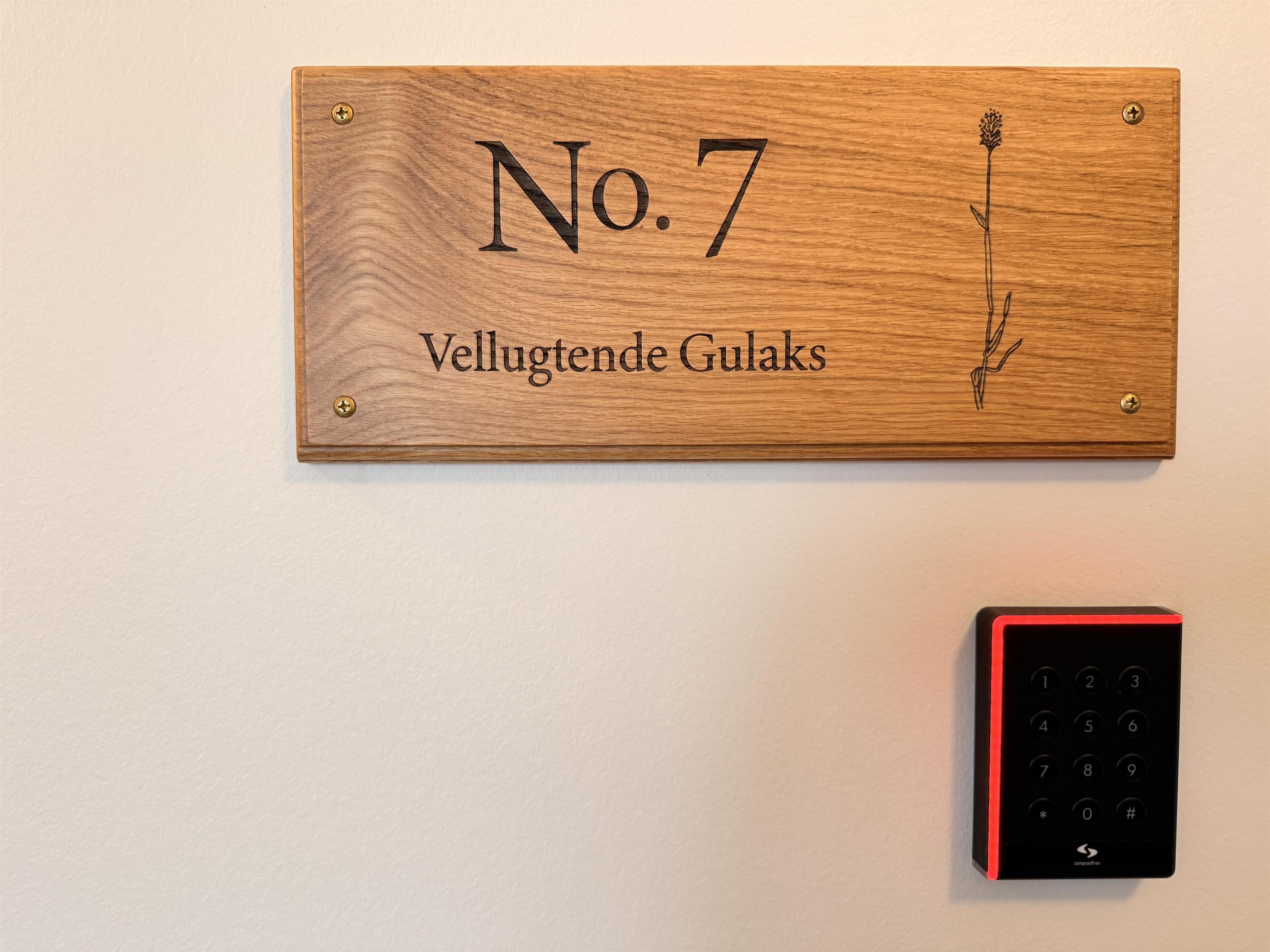 Dejligt og velindrettet dobbeltværelse på Tversted Badepension. Værelset har nummer 7 og ligeledes navnet "Vellugtende Gulaks". En del af badepensionens særlige koncept er at alle værelser og lejligheder er opkaldt efter urter og planter. Spisesal og opholdsstuer er indrettet med flotte møbler fra de gamle isbrydere Danbjørn og Isbjørnen.