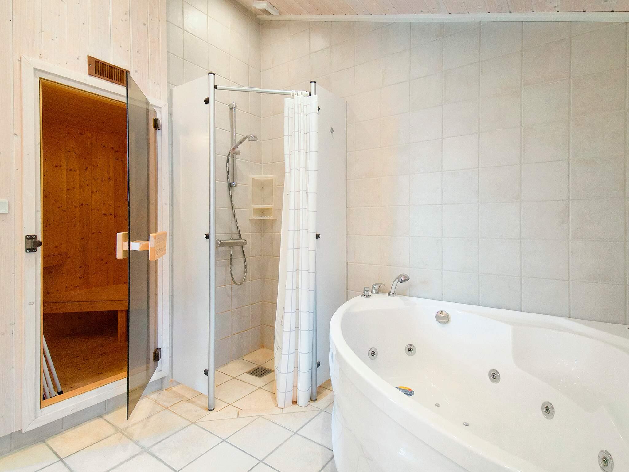 Sommerhus beliggende i et lukket område og ikke langt til den nærliggende strand. Huset er indrettet med to badeværelser, hvor der i det ene er adgang til 2-personers spabad og sauna til 4 personer. Stort køkken/alrum. Endvidere 3 velindrettede soverum med skabsplads. Der er hems, hvor der er mulighed for opredning til 2 personer. Når vejret tillader det, har I mulighed for at nyde vejret på terrasserne.