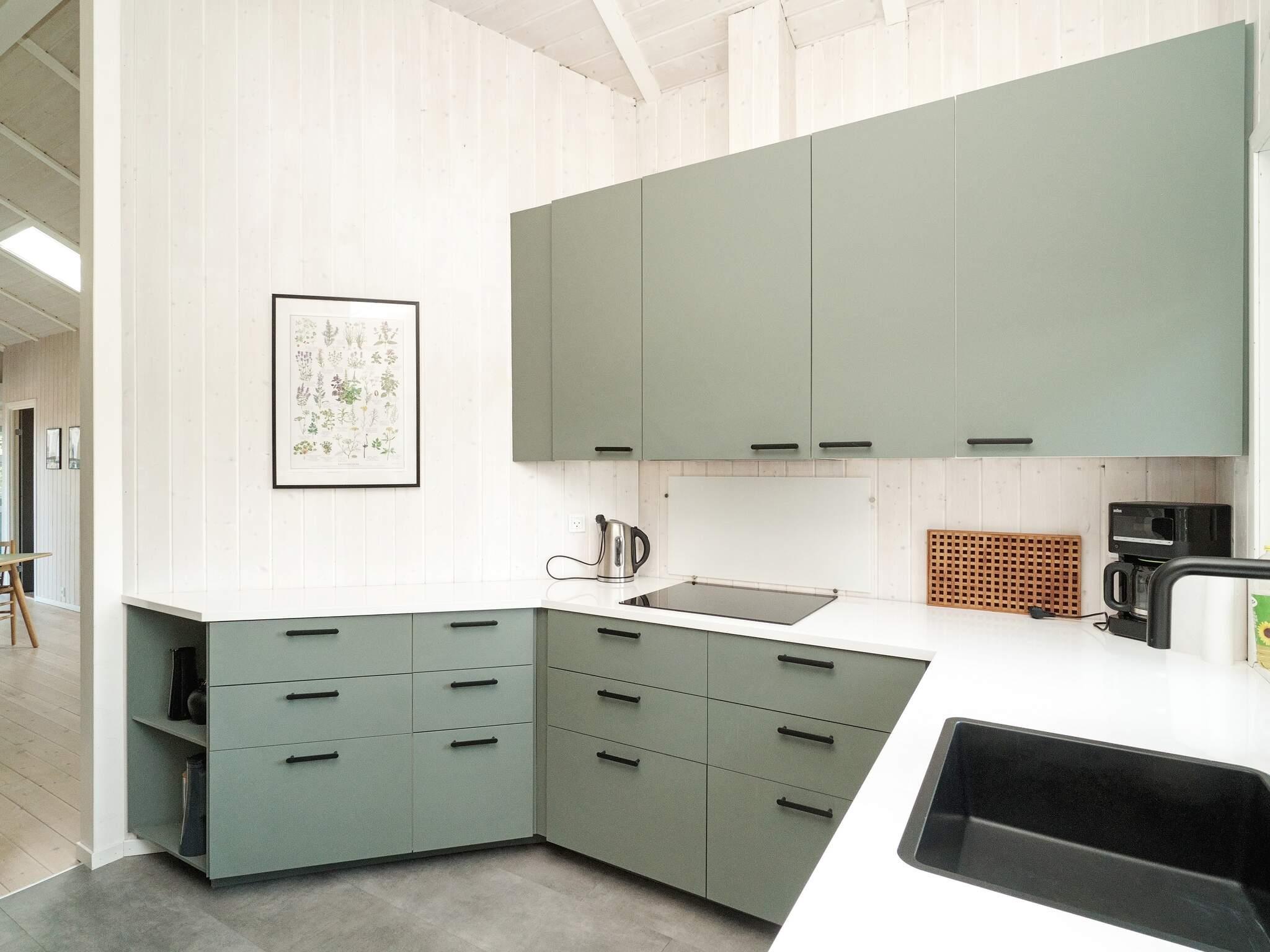 Køkken: Ovn, køleskab, fryser 1 - 59 l, mikroovn, induktionskomfur, kaffemaskine, opvaskemask.