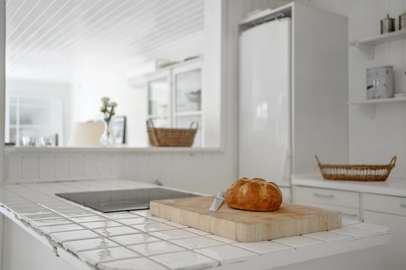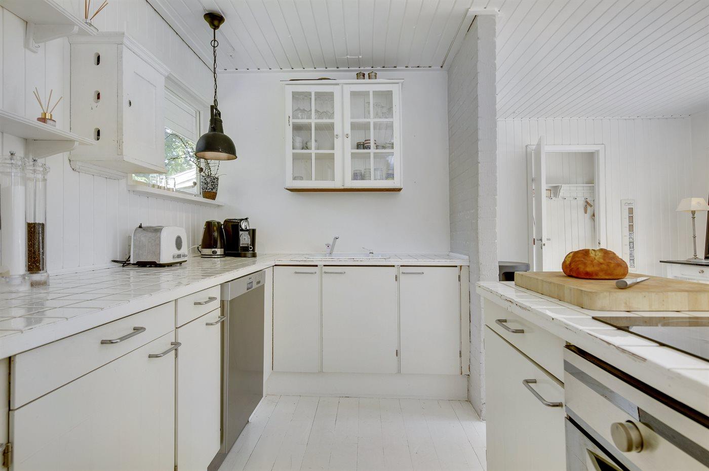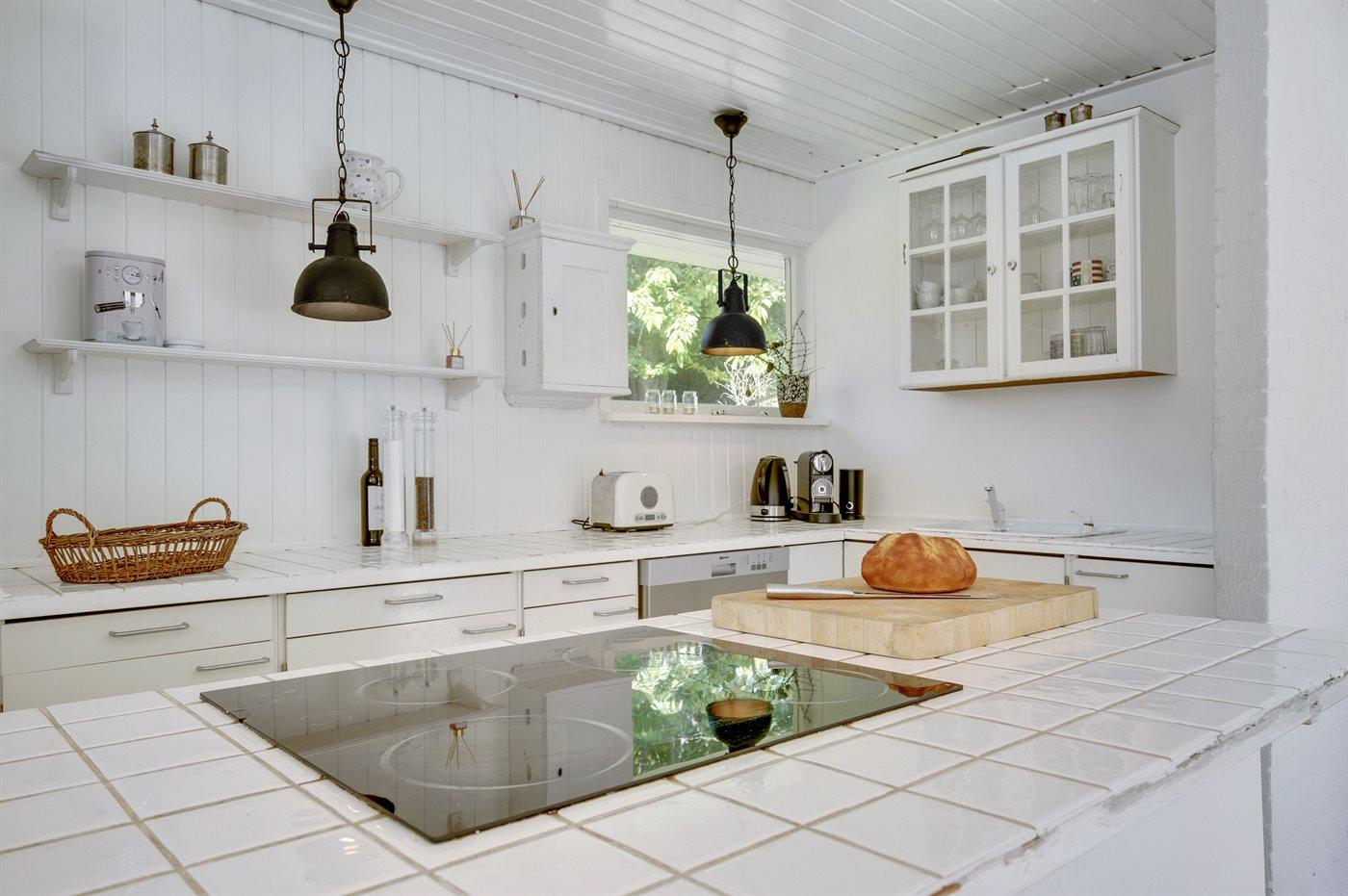 Køkkenet er udstyret med 1 køleskab. Der er 4 keramiske kogeplader, varmluftovn samt opvaskemaskine.