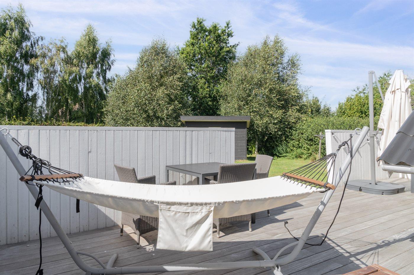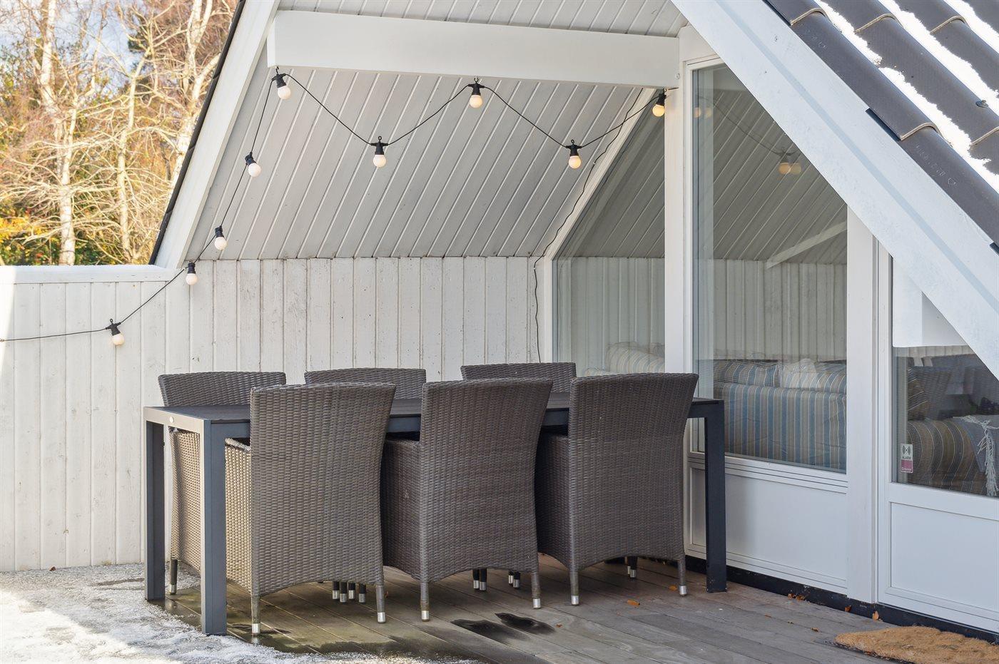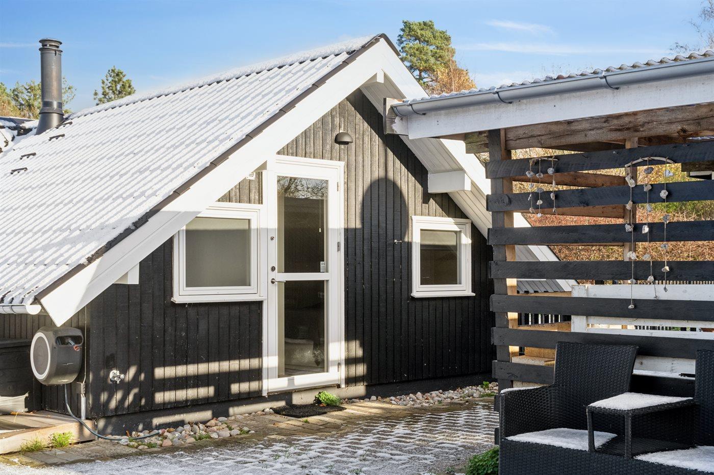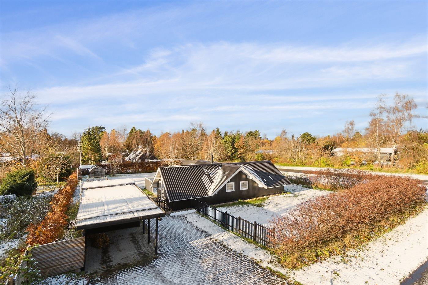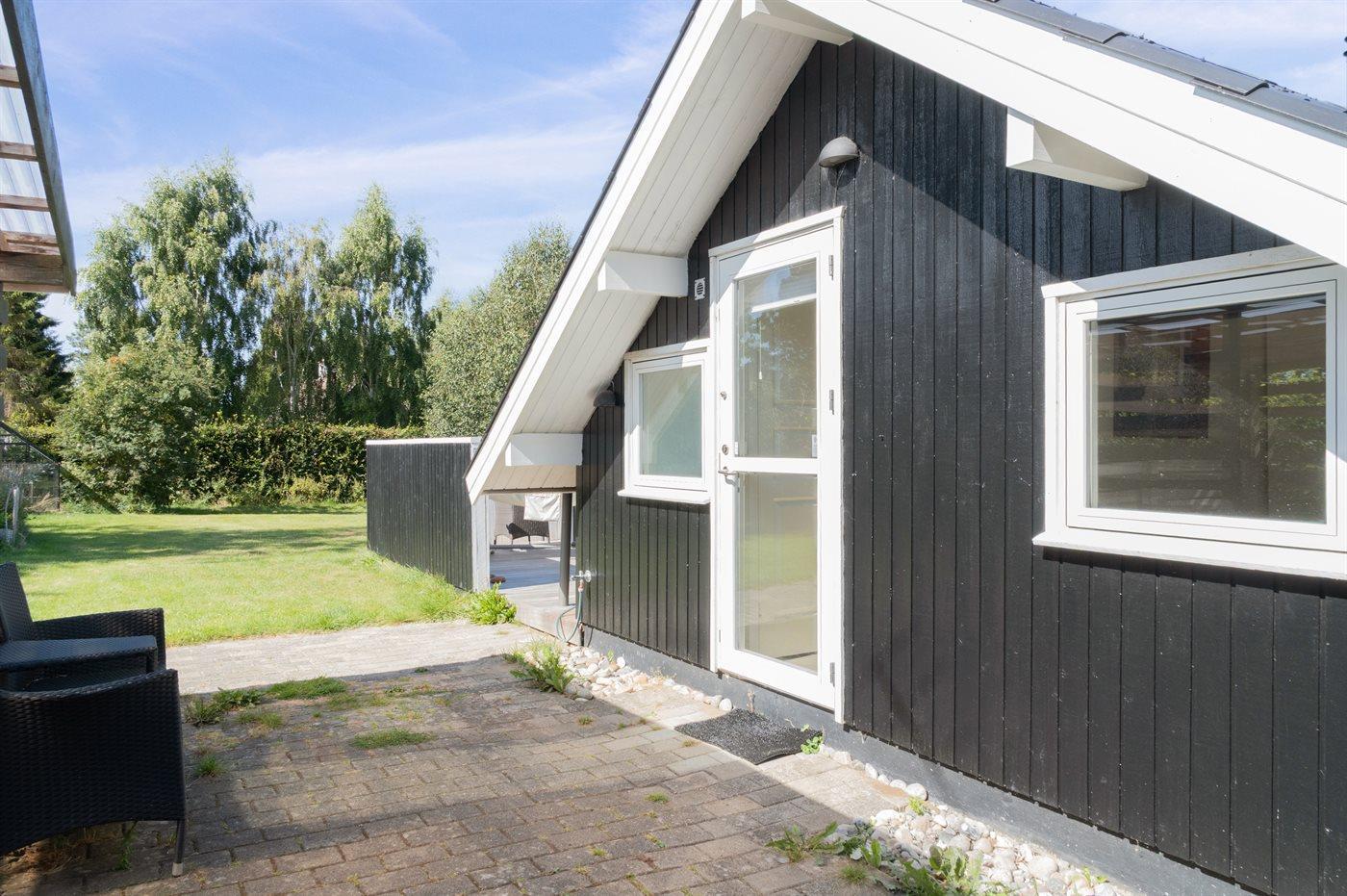 Ferieboligen er beliggende på en 1209 m² stor havegrund. Grunden er indhegnet. Der er 1300 m til havet. Nærmeste forretning er beliggende i en afstand af 1500 m. Til ferieboligen hører åbent terrasseareal. Desuden er der overdækket terrasse. Grill til rådighed. Der er carport til rådighed. Parkering ved ferieboligen.