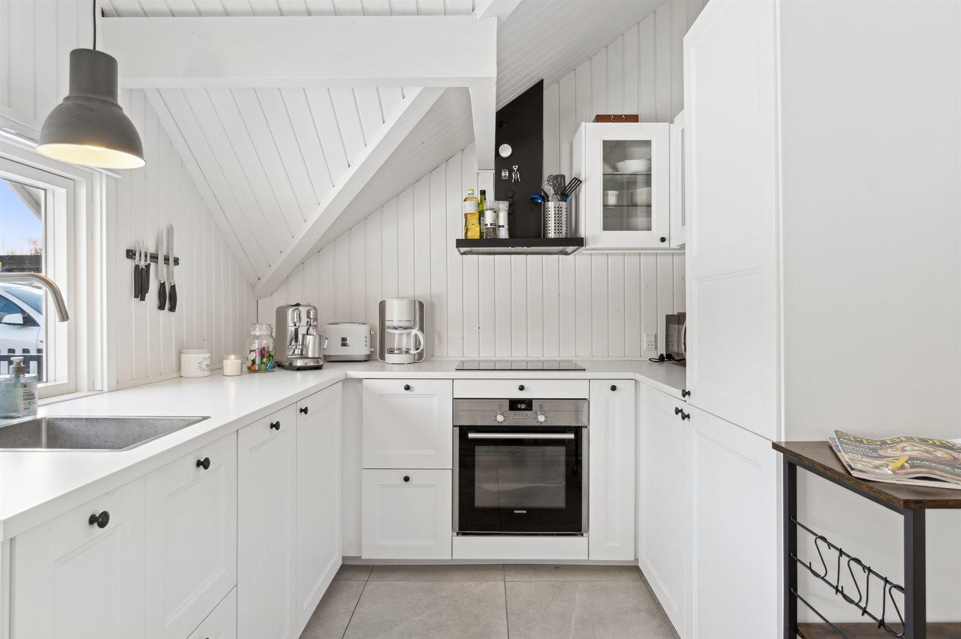 Køkkenet er udstyret med 1 køleskab. Der er 4 induktionskogeplader, varmluftovn, mikrobølgeovn samt opvaskemaskine.