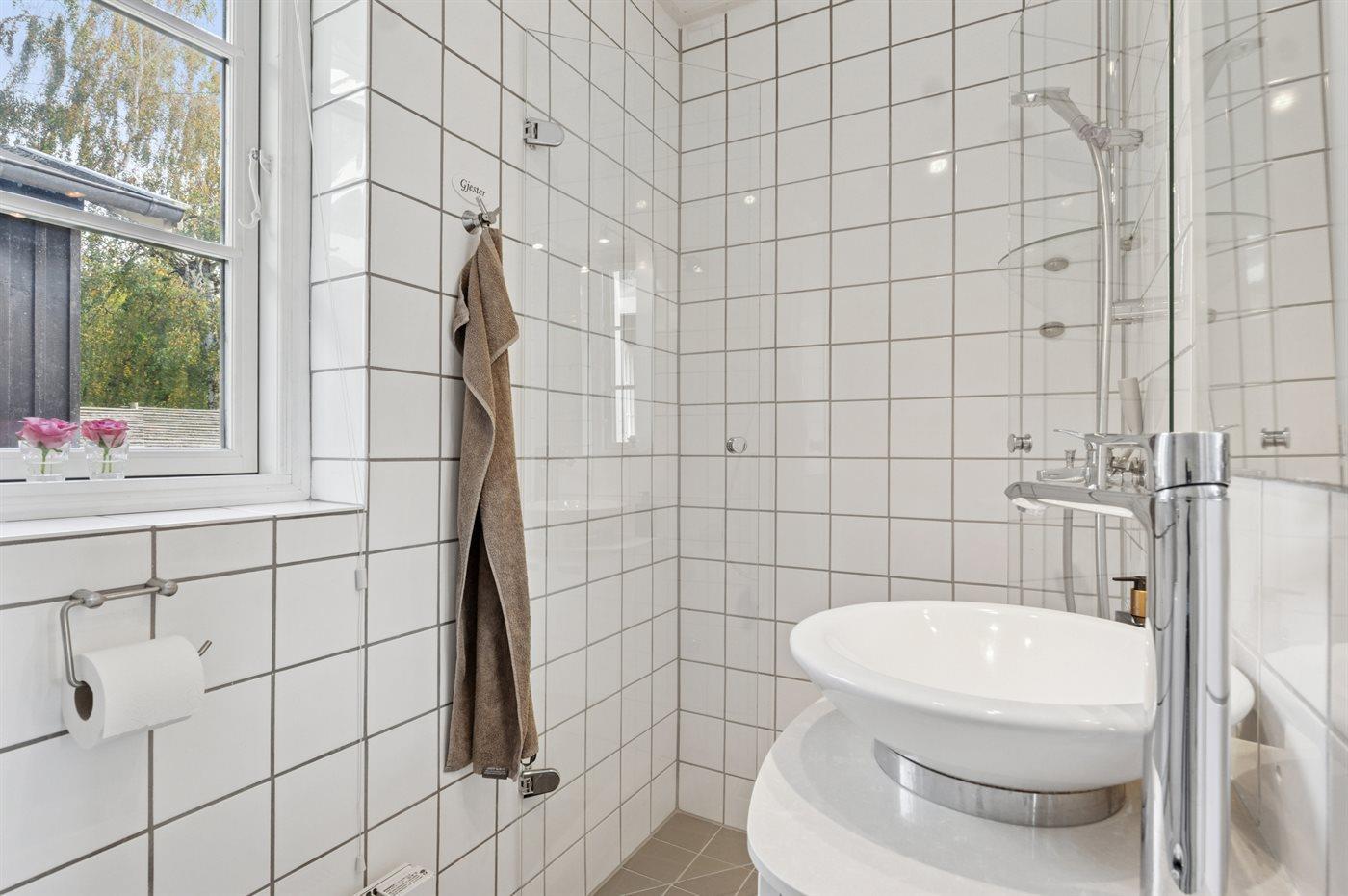 Der er 2 badeværelser med bruseniche og 2 toiletter. Der er gulvvarme på 2 badeværelser.