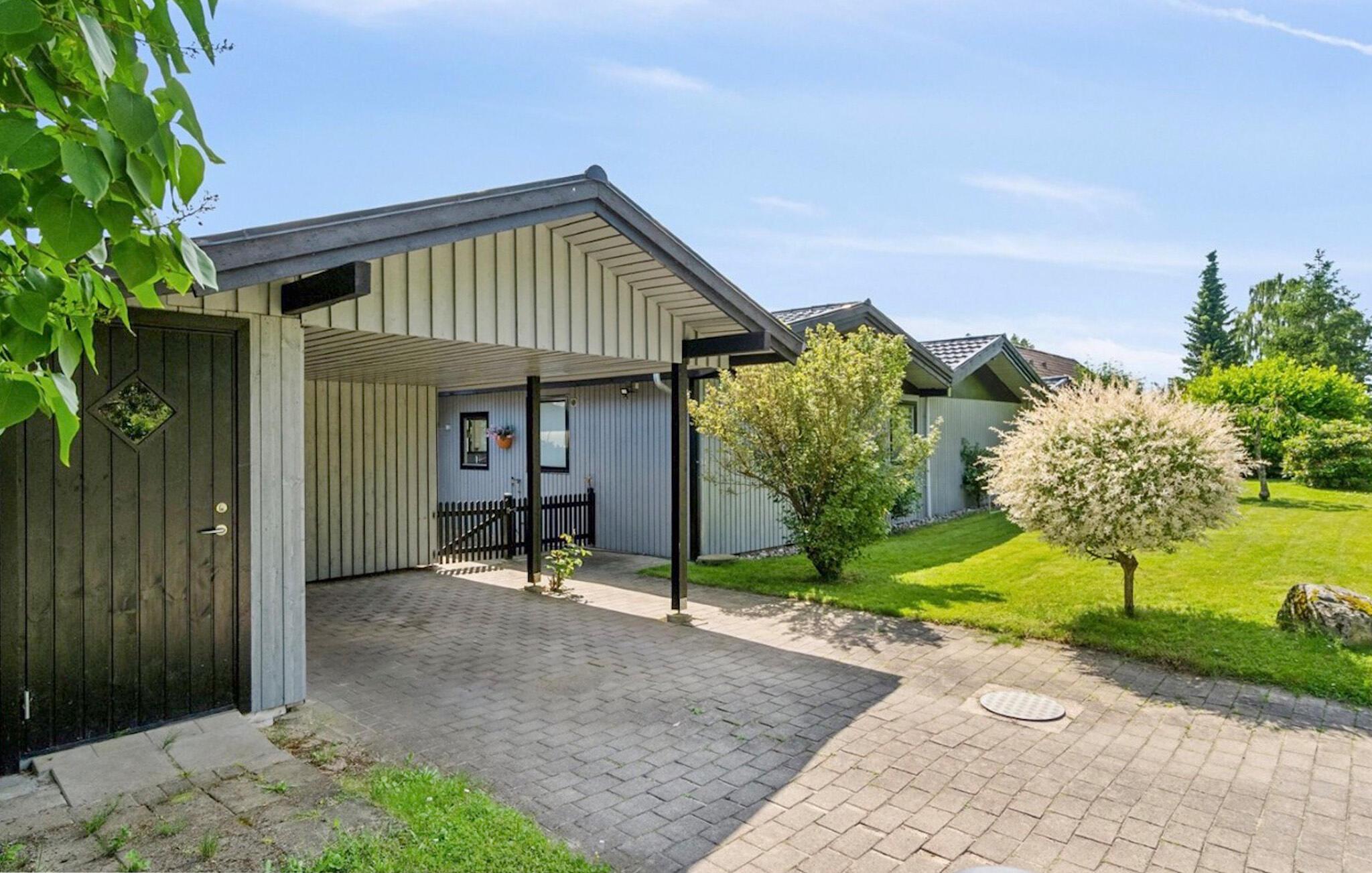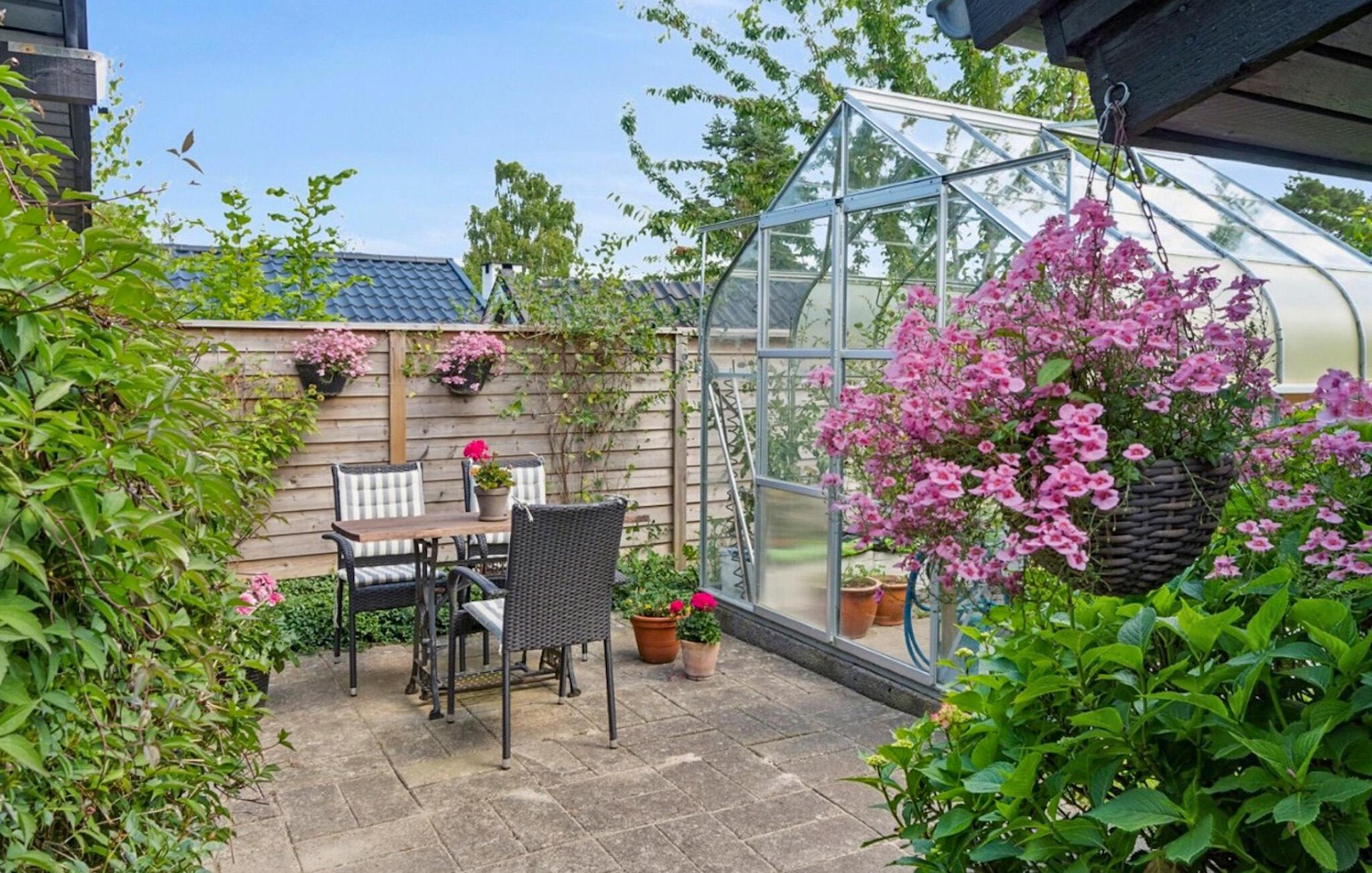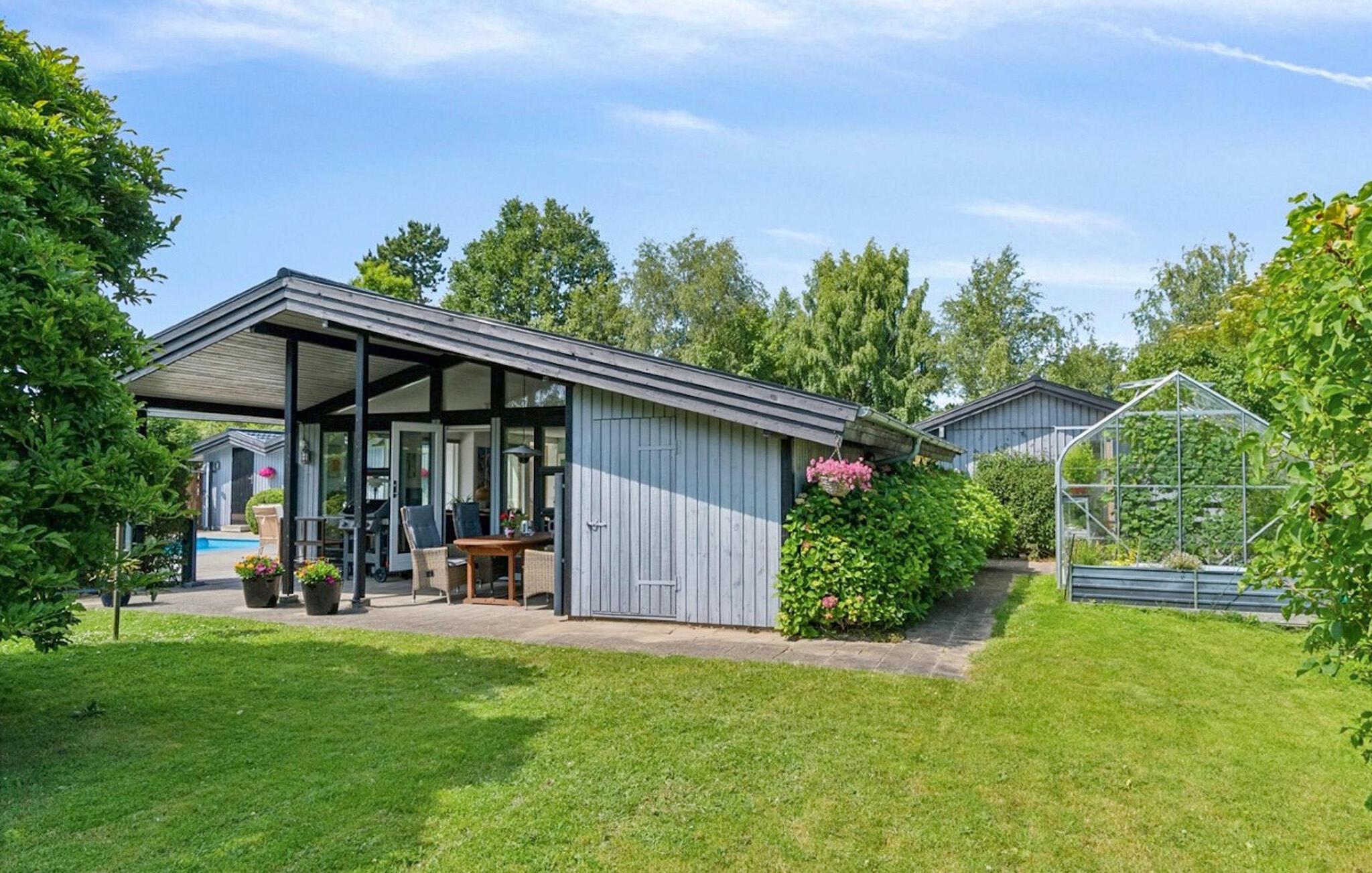 Udendørsområdet er en solrig oase, der inviterer til skønne timer i den friske luft. Nyd jeres morgenmad på den afskærmede terrasse, tag en forfriskende dukkert i poolen, og forbered en stemningsfuld grillaften, mens jeres børn leger på den velholdte græsplæne.