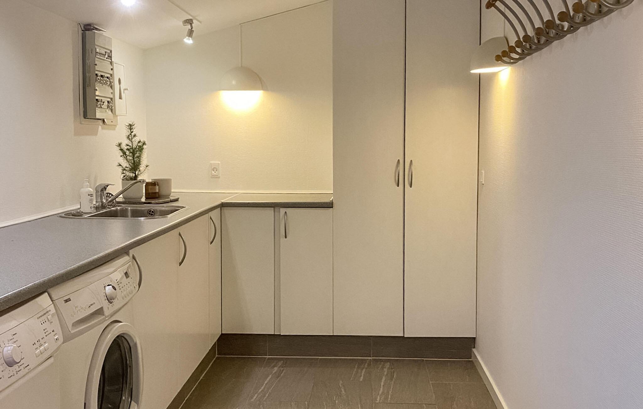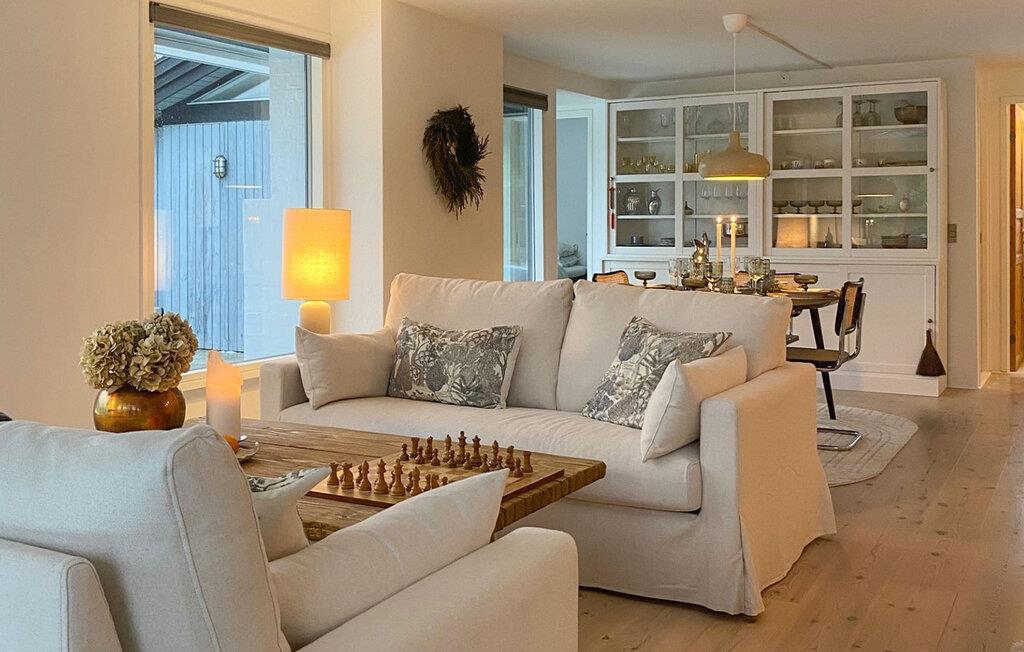 Lad jer begejstre af den smagfulde atmosfære i dette komfortable feriehus. Lav lækre retter i det moderne køkken, og nyd dem ved det elegante spisebord med udsigt til det grønne. Slap af i saunaen, og hyg jer bagefter i de komfortable sofaer med en god film, eller afhold hyggelige spilleaftener med familien i den afslappede atmosfære.