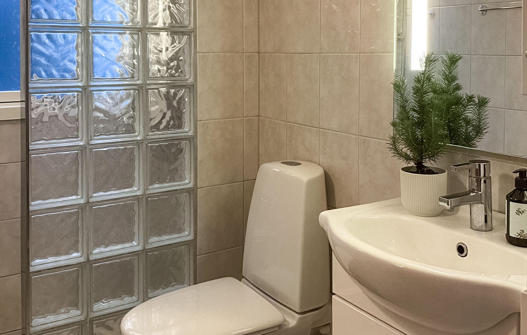 Badeværelse (nr. 1) - WC. Varmt og koldt vand. Bruser