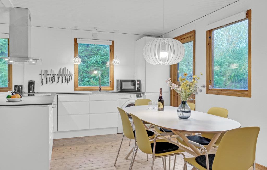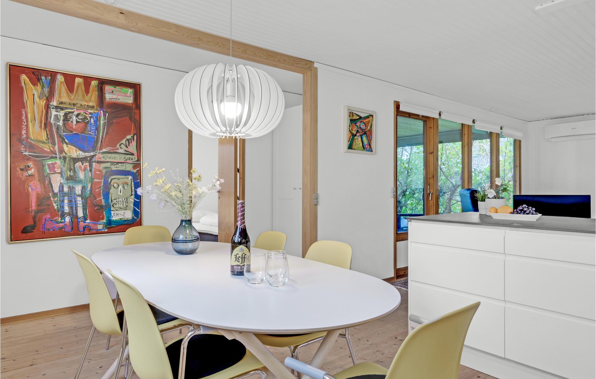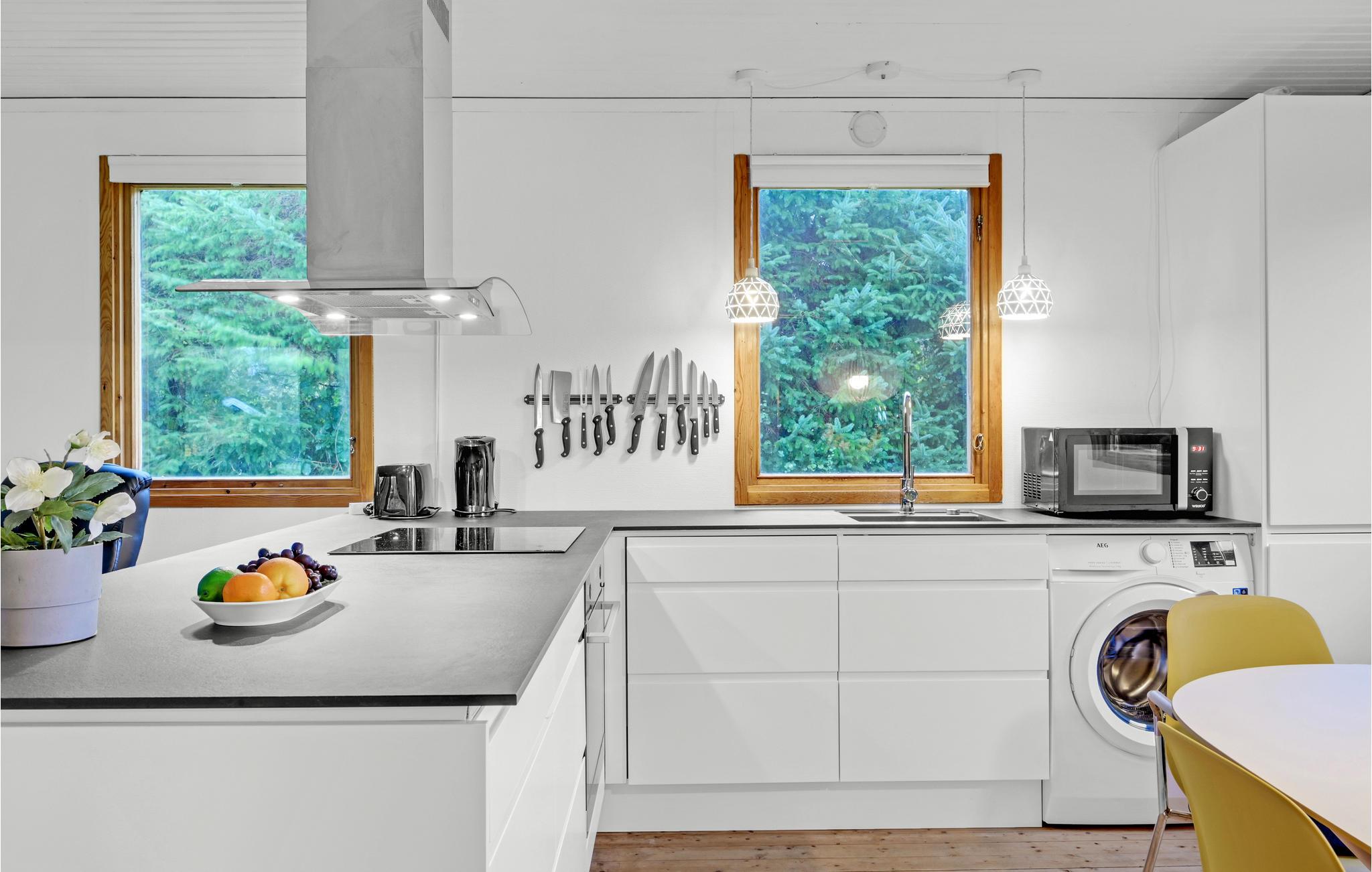 Velkommen til dette sommerhus, hvor I kan slappe vidunderligt af både inde og ude. Den skønne opholdsstue med åbent køkken er husets naturlige samlingspunkt og lægger op til masser af hyggestunder. Her kan I sætte jer med en god film, mens I flader ud i de komfortable møbler.