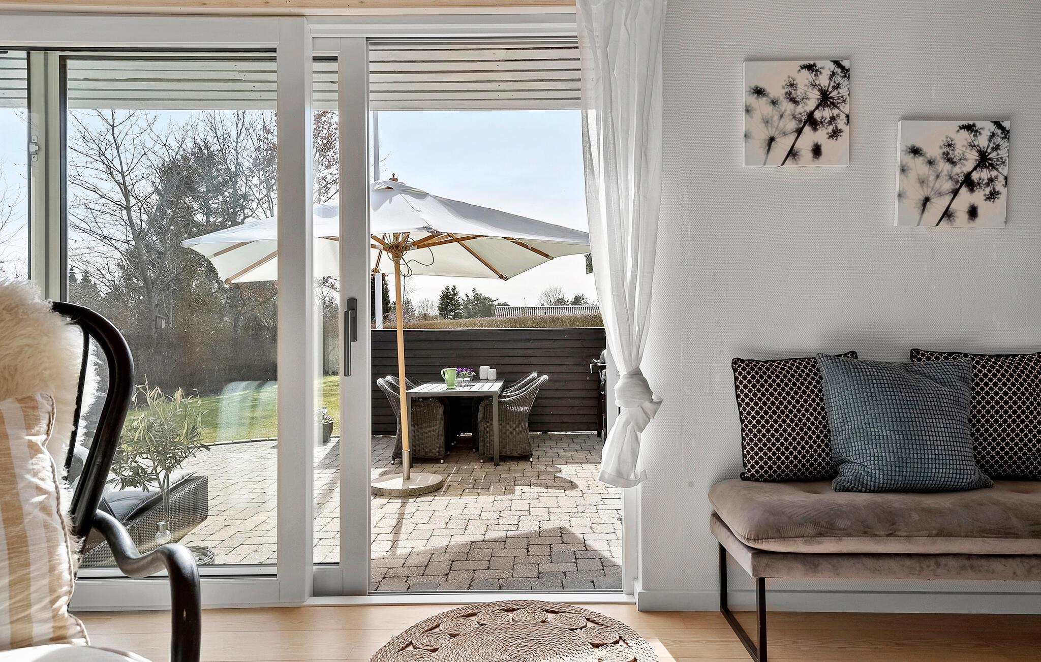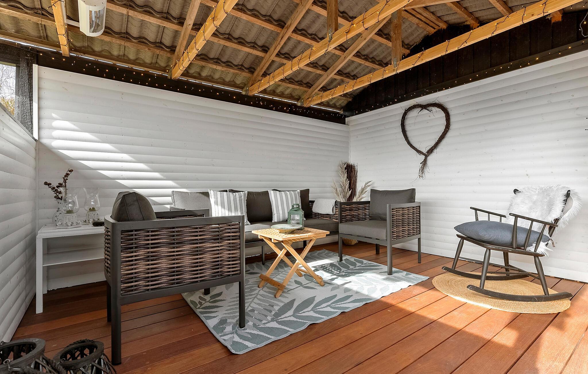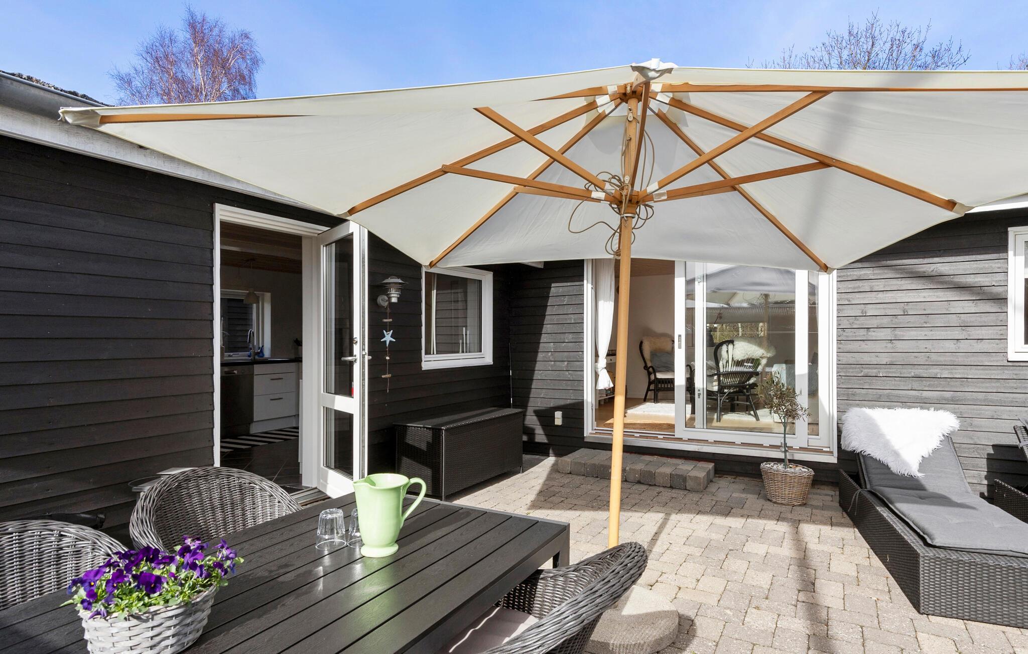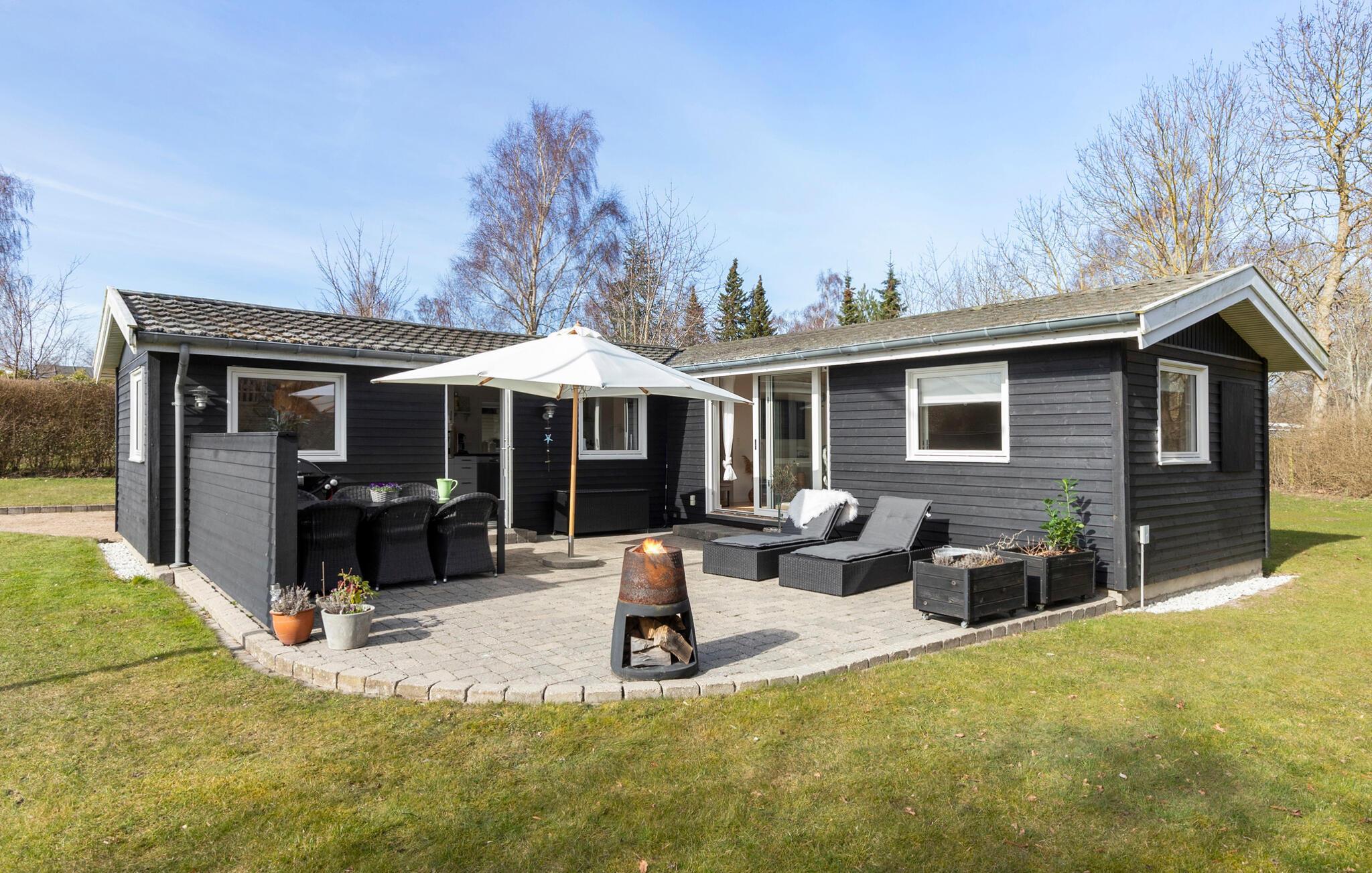 Begynd sommerdagene på den møblerede terrasse med en kop kaffe. Her sidder I godt placeret i en solkrog med udsigt over haven. Læn jer tilbage i liggestolene, mens børnene spiller bold på græsplænen. I kan slutte dagen ekstra stemningsfuldt af med snobrød over bål.