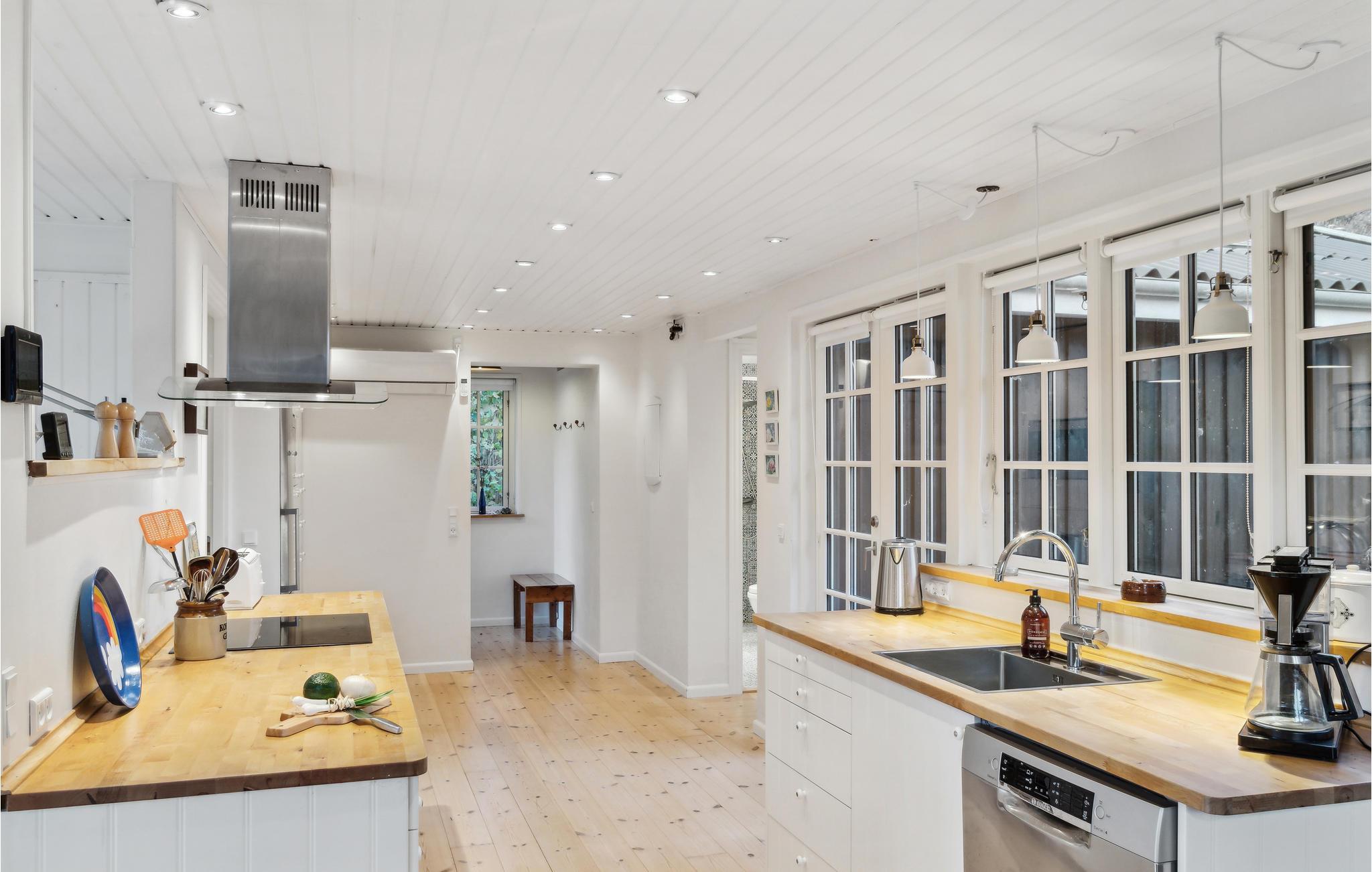 I det attraktive sommerhusområde Udsholt Strand ligger dette dejlige feriehus, der er meget velegnet til to familier. Feriehuset er hyggeligt indrettet med køkken i forbindelse med stue, to gode soveværelser samt et badeværelse. Fra stuen går I via terrassen over i det store anneks, hvor den anden familie nemt kan bo. Her findes et lille tekøkken, to gode soveværelser samt endnu et badeværelse. Haven er afgrænset med levende hegn, der skærmer for vejen og naboerne, og der er sået et engområde for at fremme biodiversiteten. Gå en tur til havet og nyd den friske luft, eller tag cyklen med hjemmefra, og tag turen langs kysten og oplev den spændende og varierede natur.