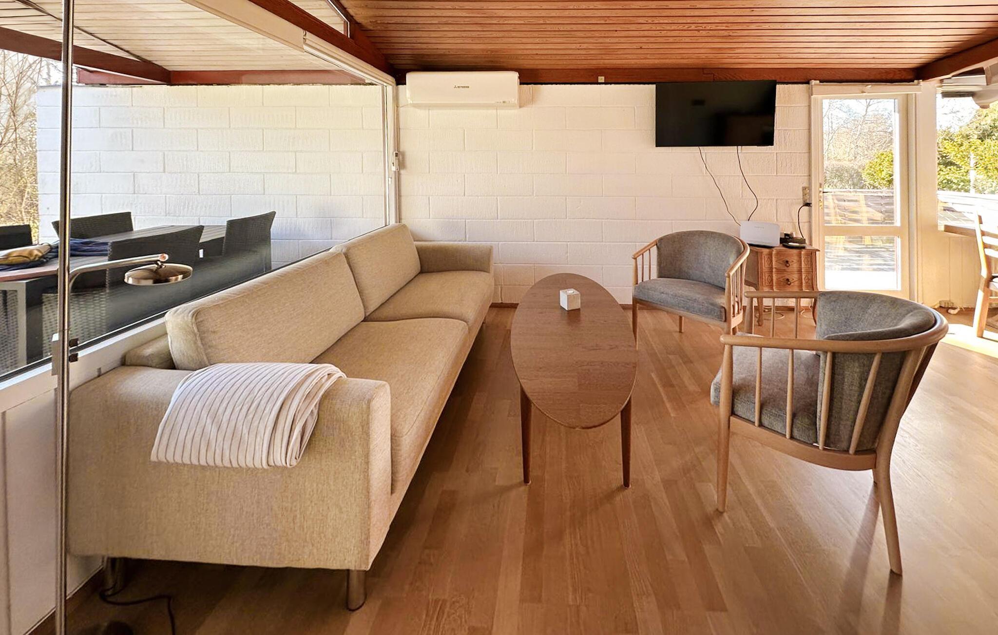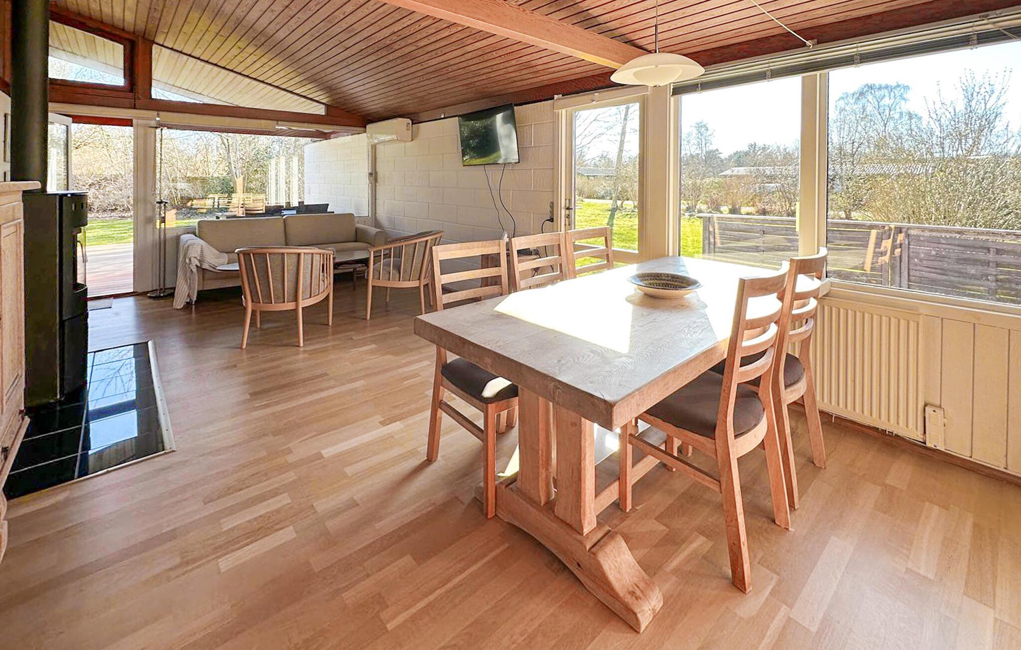 I Udsholt Strand byder dette roligt beliggende feriehus jer velkommen. Huset er indrettet med ældre, men komfortable møbler, der skaber en behagelig og afslappet atmosfære, som I med det samme vil føle jer godt tilpas i. Tilbring hyggelige aftener med sjove brætspil i den åbne stue og læg jer på kølige dage på sofaen med en god, mens I lytter til brændeovnens knitren.