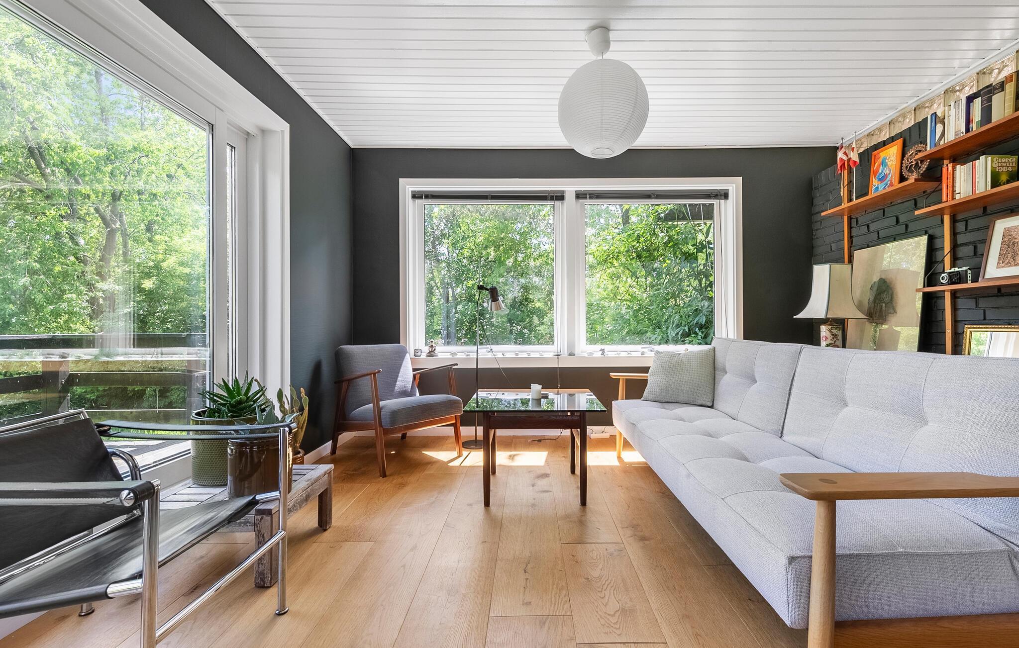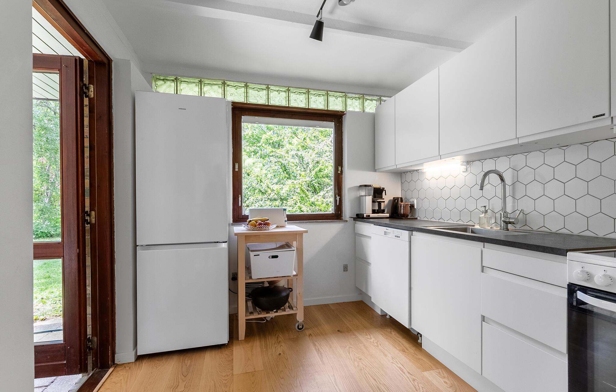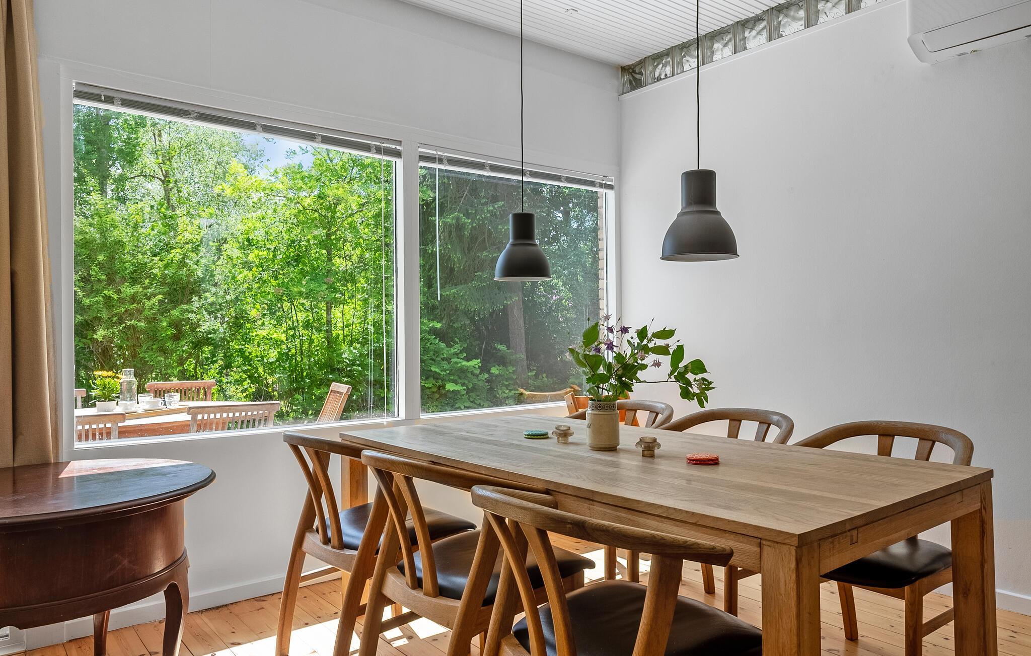 Denne lyse og rummelige oase byder jer velkommen med et komfortabelt møbleret interiør, hvor store vinduer tilbyder en smuk udsigt over det omkringliggende landskab, og de smagfulde værelser er fyldt med naturskønt lys. Fremstil lækre retter med friske ingredienser fra gårdmarkedet, brug det varmt oplyste spisebord til hyggelige spilleaftener, og glæd jer til hyggelige timer i den komfortable sofagruppe, mens I streamer en film eller snakker over et glas vin.