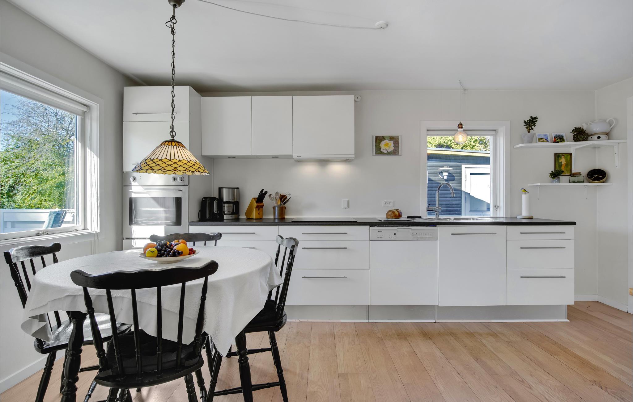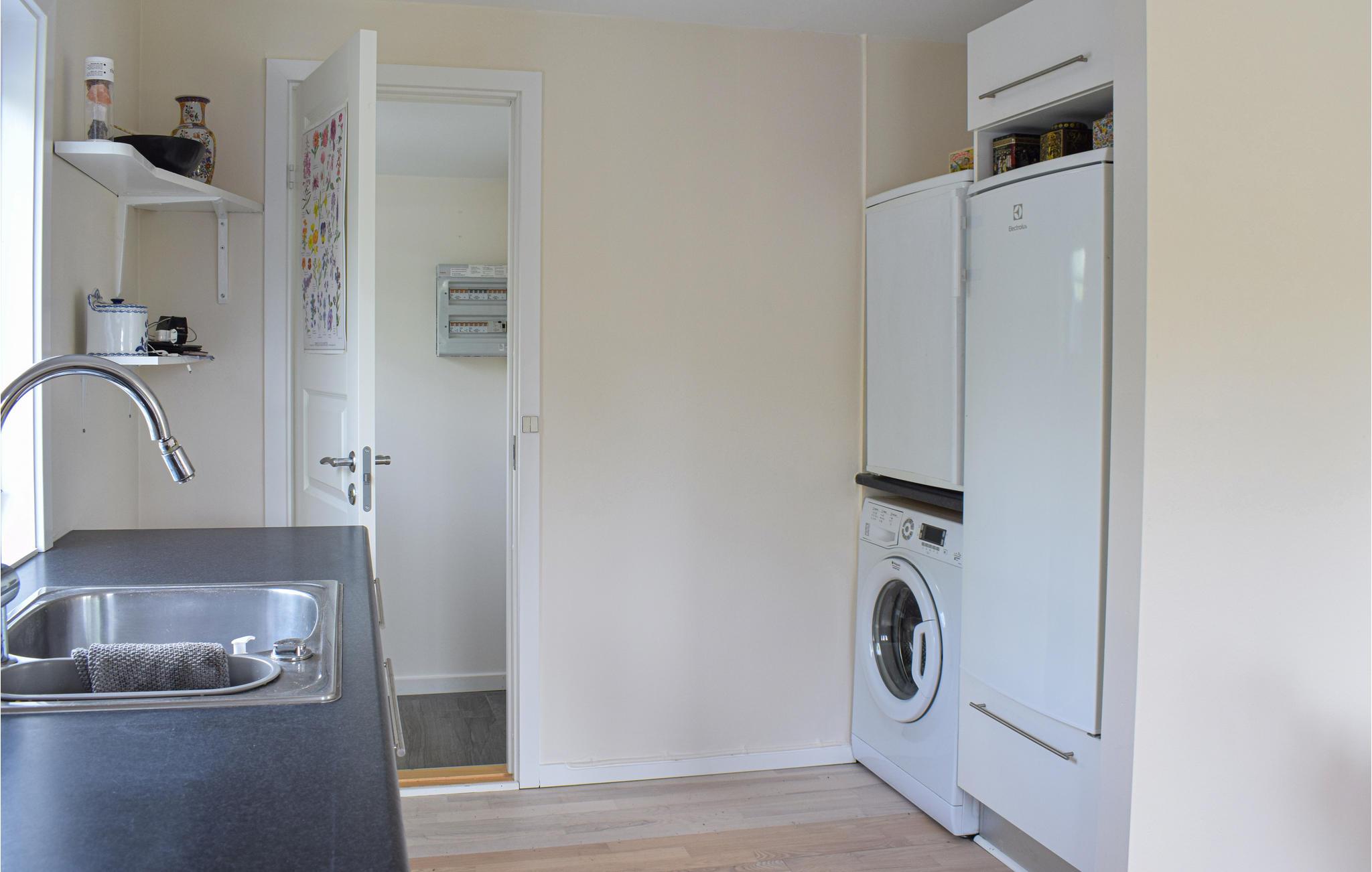 Tæt på Nordsjællands strande, finder I dette sommerhus med en dejlig ugenert og indhegnet have. Den hyggelige stue ligger i åben forbindelse til køkkenet, hvor den knitrende brændeovn sørger for en god stemning på kølige aftener og dage. Ved køkkenet findes et lille spisebord til 4 personer. Endvidere er huset indrettet med 2 fine soveværelser med henholdvis en dobbeltseng og to enkelsenge. På terrassen kan I nyde solen hele dagen i de gode havemøbler. Af aktiviteter til børnene findes både fodboldmål og trampolin.
