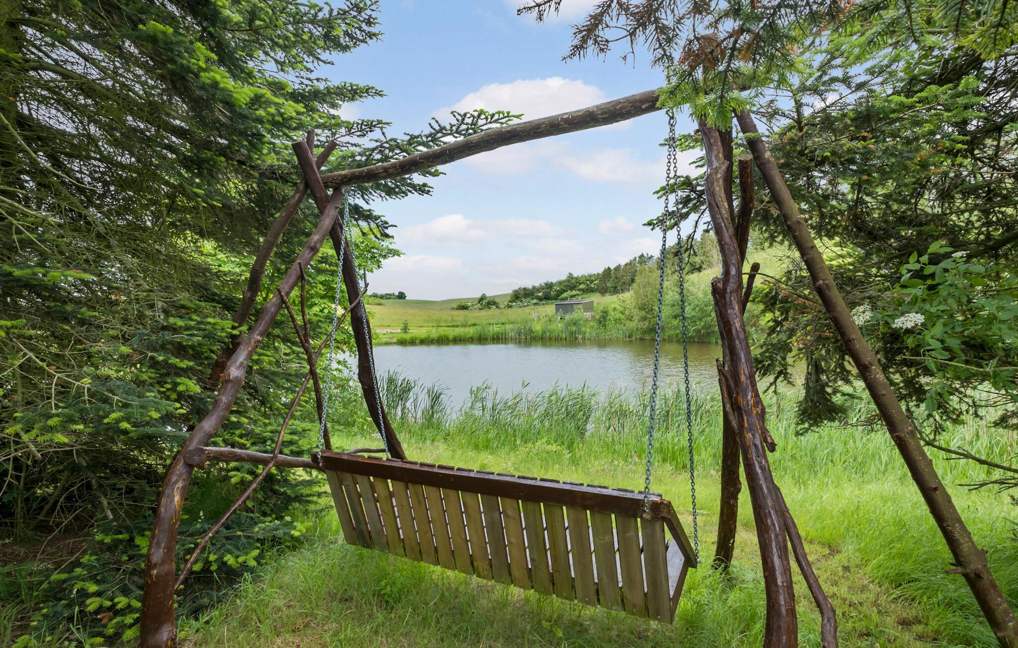 Glæd jer til et helt igennem idyllisk feriehus med vildmarksbad og tøndesauna ud til en sø.