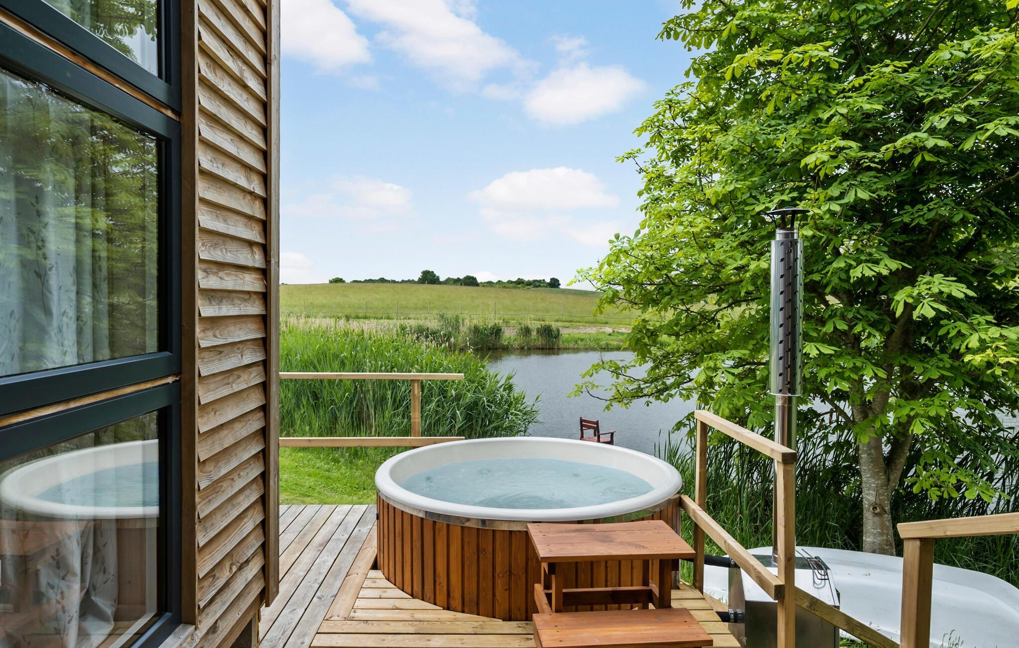 Hyggeligt feriehus ved Ugerløse med vildmarksbad, tøndesauna og søudsigt for ren afslapning.