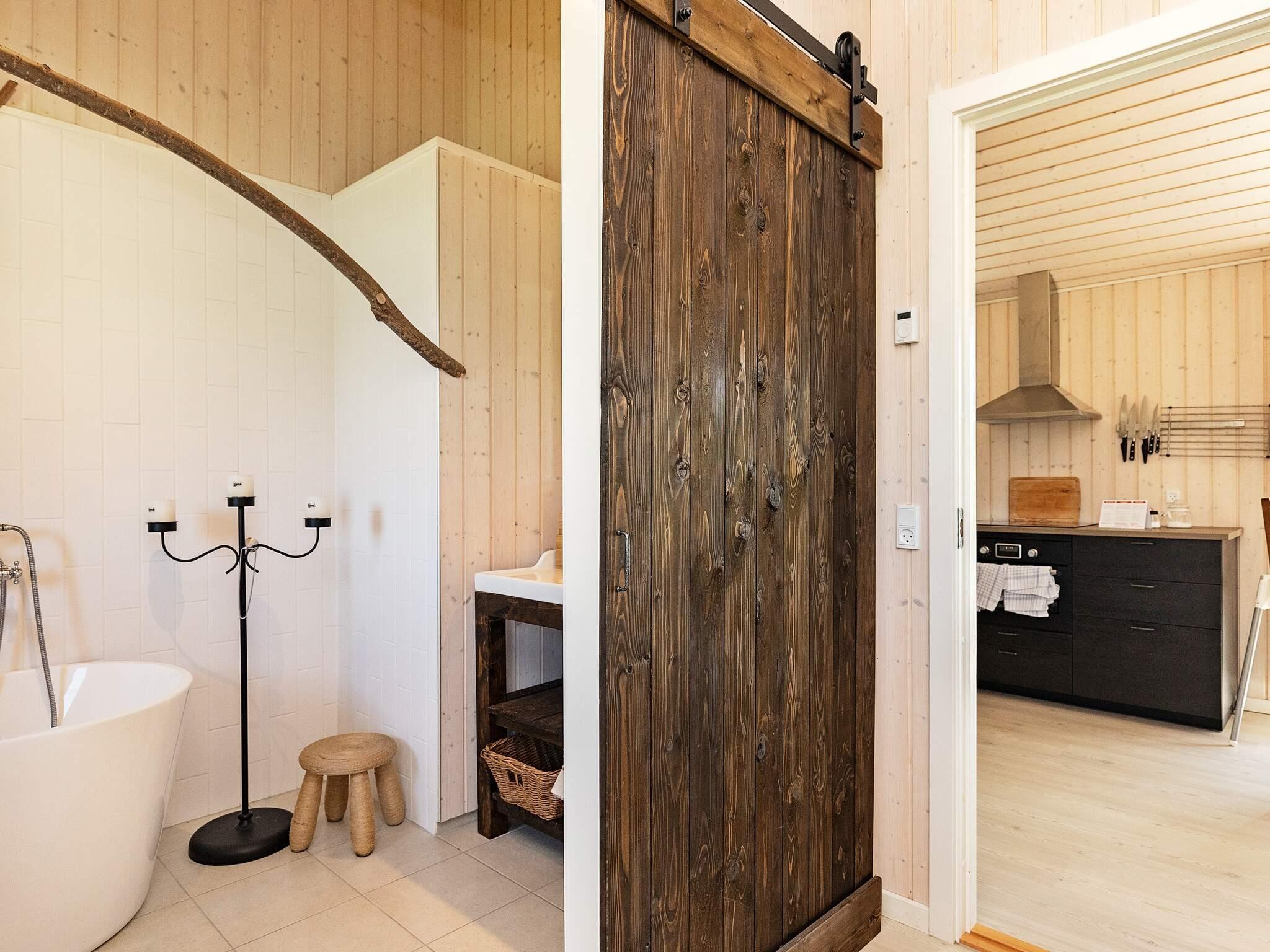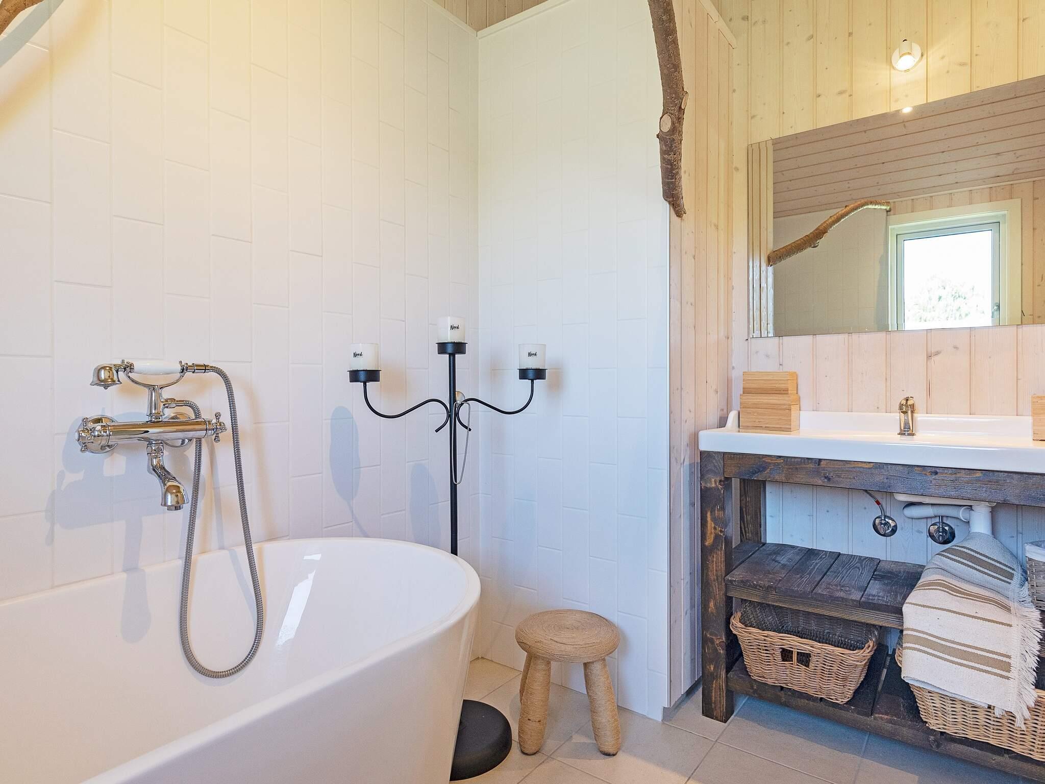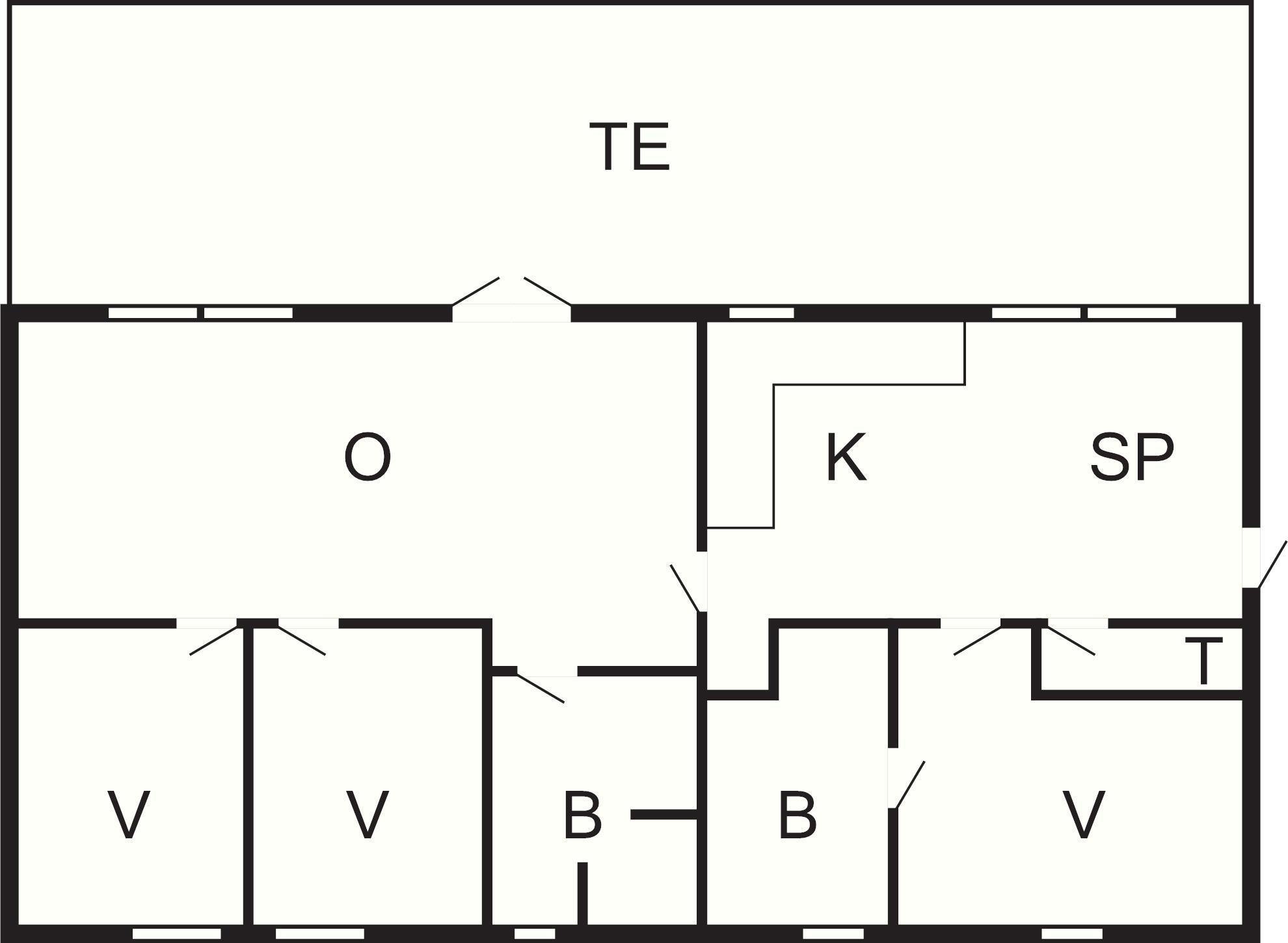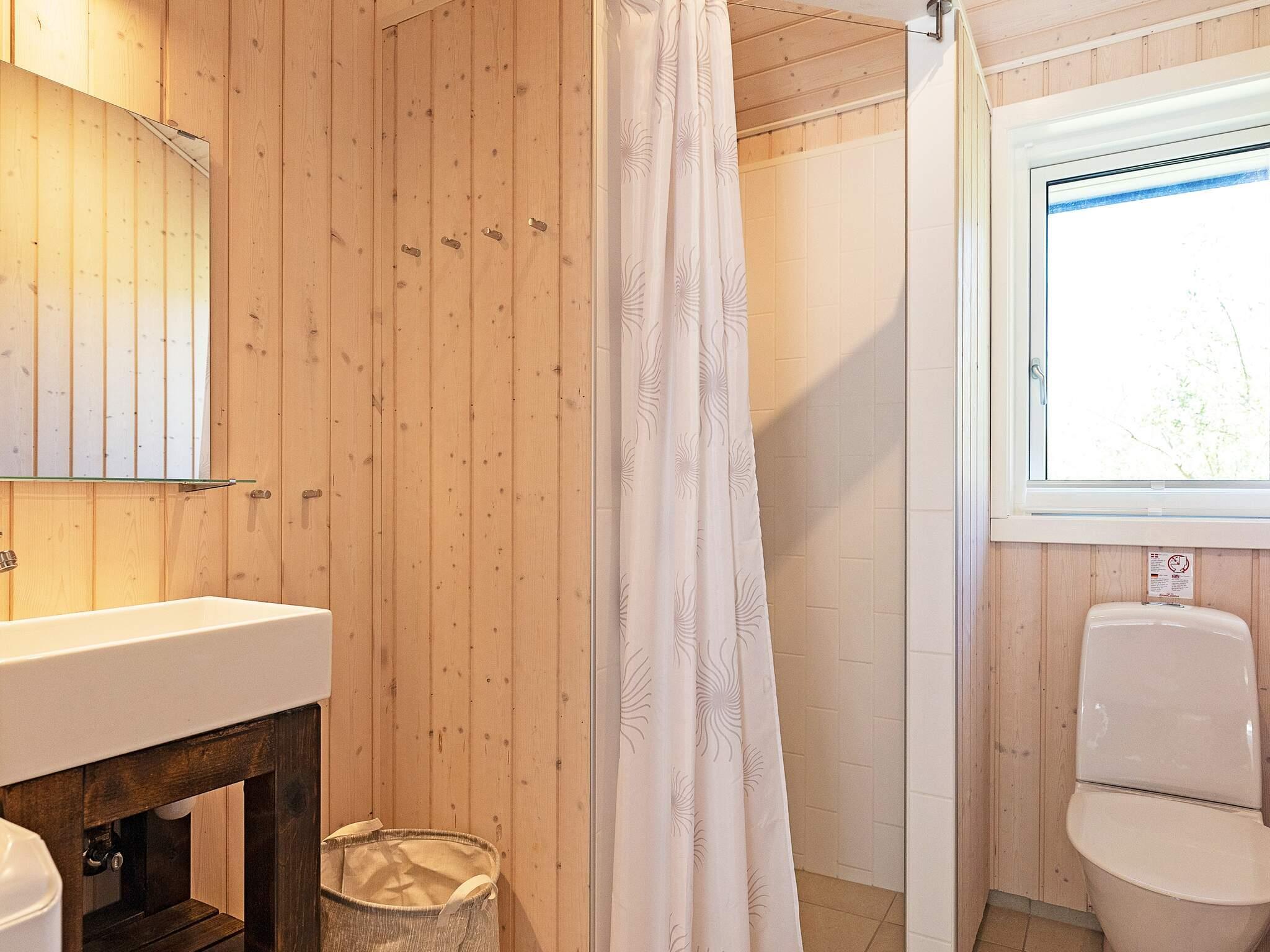 Velholdt sommerhus på 79 m2 med to gode badeværelser beliggende kun ca. 600 meter fra den skønne, børnevenlige badestrand ved Ulvshale. Sommerhuset indeholder separat køkken, værelse med dobbeltseng samt eget badeværelse med karbad. Fra køkkenet er der adgang til en meget lys opholdsstue, som igen har adgang til endnu et brusebadeværelse samt et værelse med dobbeltseng og et hyggeligt børneværelse med køjeseng til to personer. Huset er opført med mulighed for to selvstændige beboelsesafdelinger, som kan adskilles mellem køkken og stue. Der er to forskellige indgange til huset. Fra stuen er der direkte adgang til stor, hyggelig træterrasse, hvor I kan nyde solen, åbne rødvinen og se børnene lege i haven. Udlejes ikke til ungdomsgrupper.