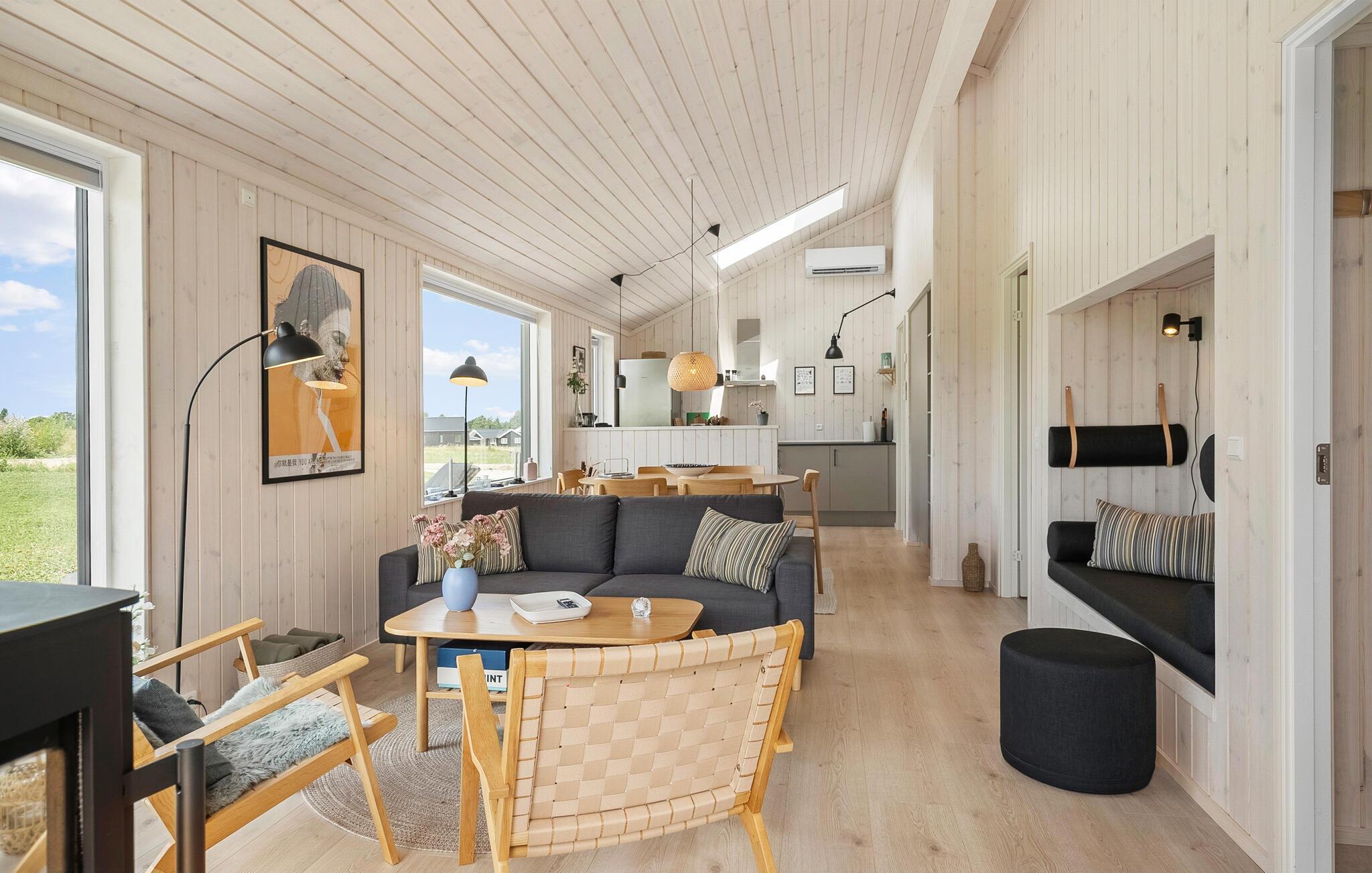 Dette naturskønt beliggende hus har klart naturligt lys og varme træpaneler. Det er nemt at slappe af og lade op her. Læn jer tilbage i den komfortable sofa med en kop te, og tænd brændeovnen på kølige dage. Tilbered friske måltider i det moderne køkken, som er perfekte til at nyde med et glas vin.