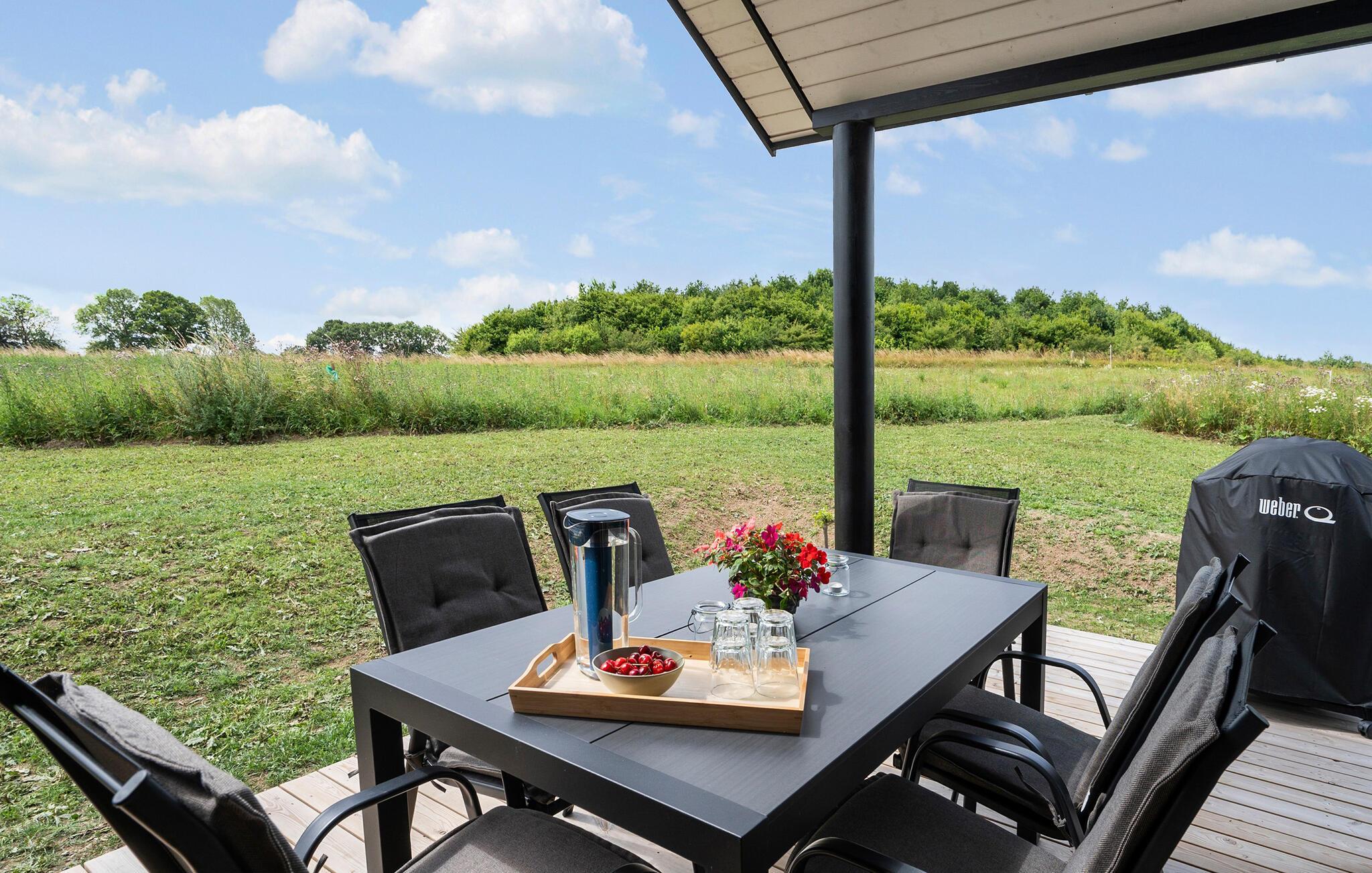 Træd ud på terrassen med en velduftende kop kaffe ved dagens første solstråler og nyd den fænomenale udsigt over enge og marker. Her er I fordybet i naturen og kan se det skiftende lys og de forbipasserende skyer. Afslut dagen med en grillmiddag under stjernehimlen.
