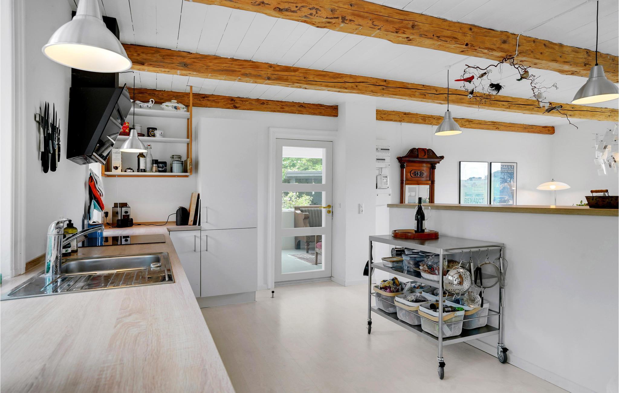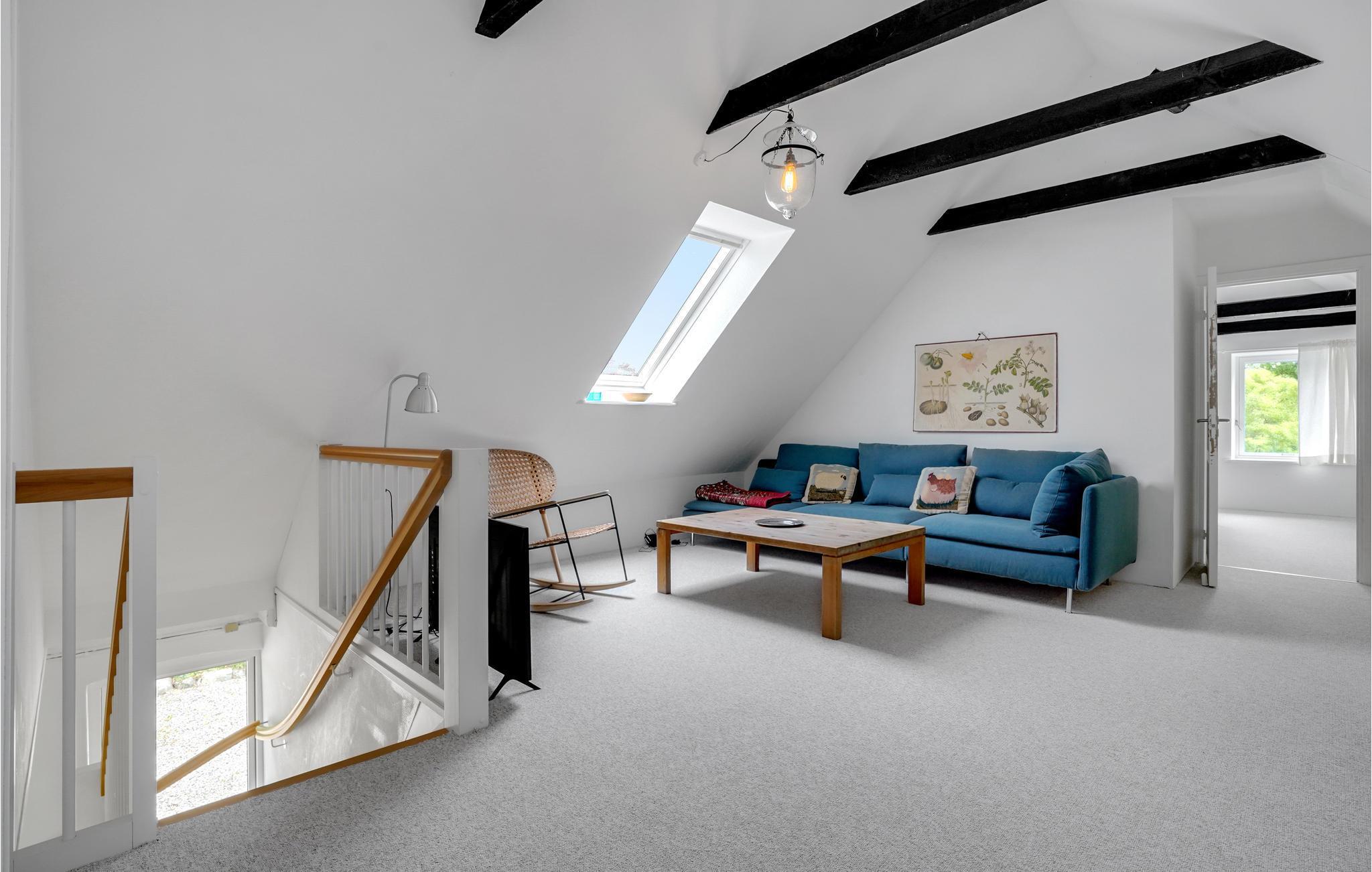 Velkommen til dette indbydende sommerhus, der er hyggeligt, personligt og funktionelt indrettet. Her er lyst, højt til loftet og plads til at man kan være sig selv og samles hele familien i det store, lyse køkken-alle-rum. Det charmerende feriehus har to etager og består af tre soveværelser, et badeværelse, køkken og en smuk opholdsstue. Der er indrettet fjernsynsstue og et lille bibliotek på første sal, og ditto med brændeovn i stueetagen.