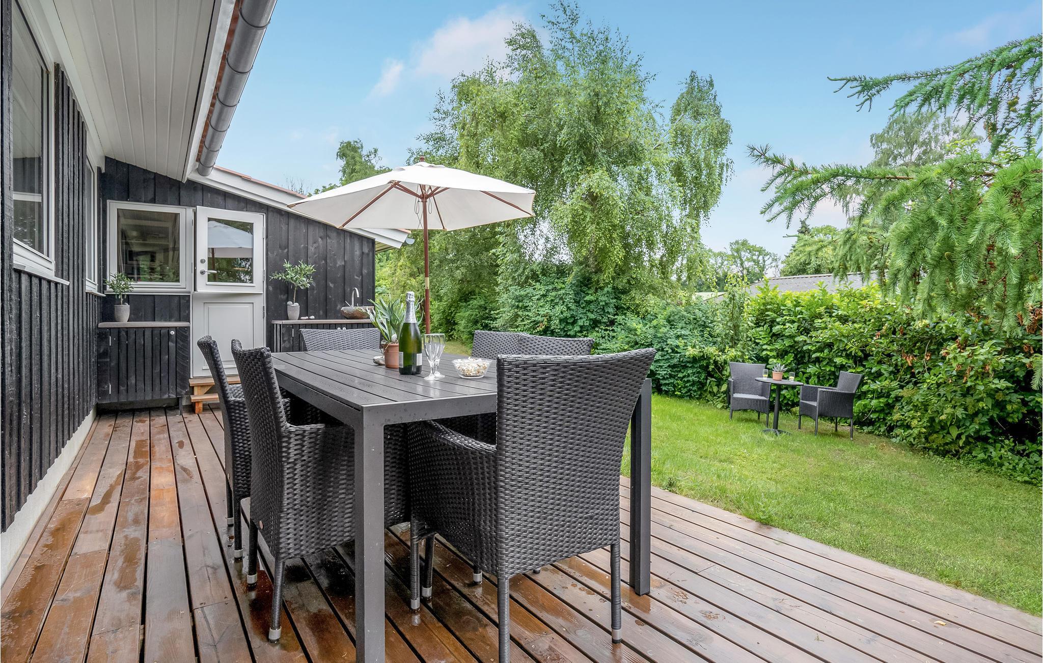 Hyggeligt sommerhus ved Ulvshale Strand på Møn med stor lukket have og terrasse, ideelt til afslapning og naturoplevelser.