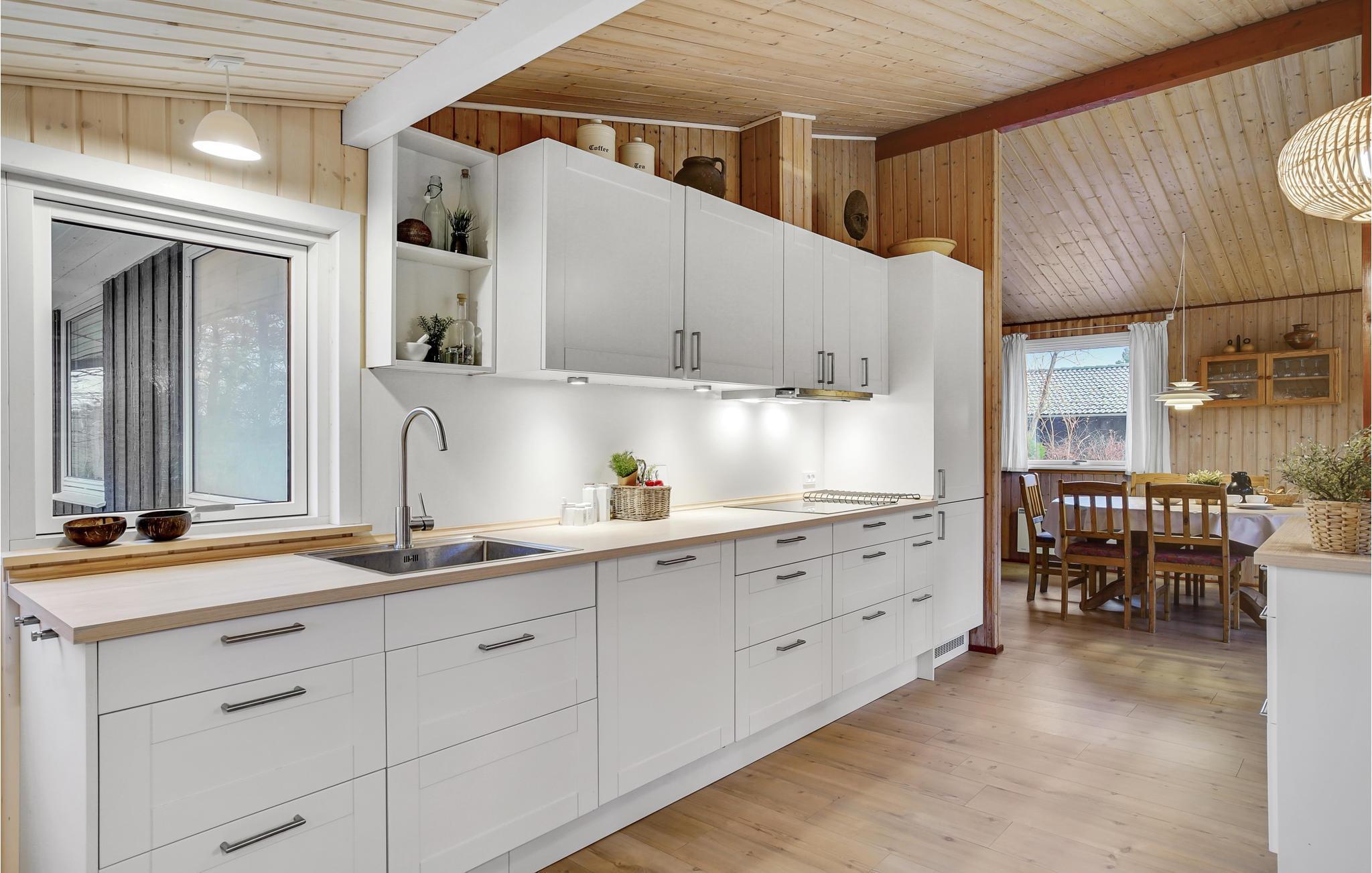 Ved Ulvshale Strand på Møn, ligger dette hyggelige sommerhus. Åbent køkken i forbindelse med stue og udgang til terrasse. Fra værelserne er der udgang til haven og endnu en terrasse. Stor lukket grund, hvor du kan nyde ferien. Ulvshale strand er børnevenlig. Besøg Stge by, hvor du finde masser af forretninger og indkøbsmuligheder. Oplev den maritime stemning ved havnen. Lystfiskere har gode chancer fra kysterne. Møns Klint og Geocentret er også et besøg værd.