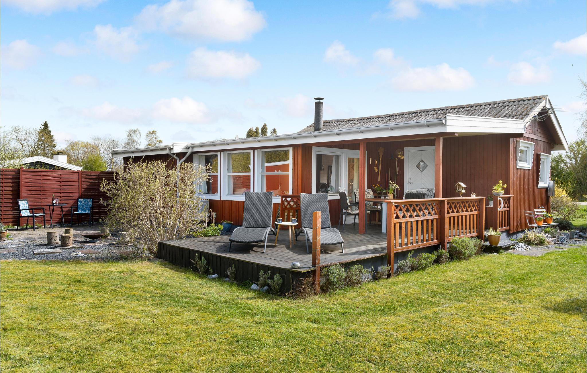 Er hygge og en hjemlig atmosfære vigtigt for jer? Så er I kommet til det rette sted i dette skønne feriehus! Træd indenfor og sænk skuldrene, her vil I straks føle jer hjemme. I kan nyde tiden her med jeres familie, glemme jeres hektiske hverdag og bare lægge fødderne op. Nyd jeres feriemåltider på den delvist overdækkede terrasse og se ud over de grønne omgivelser.