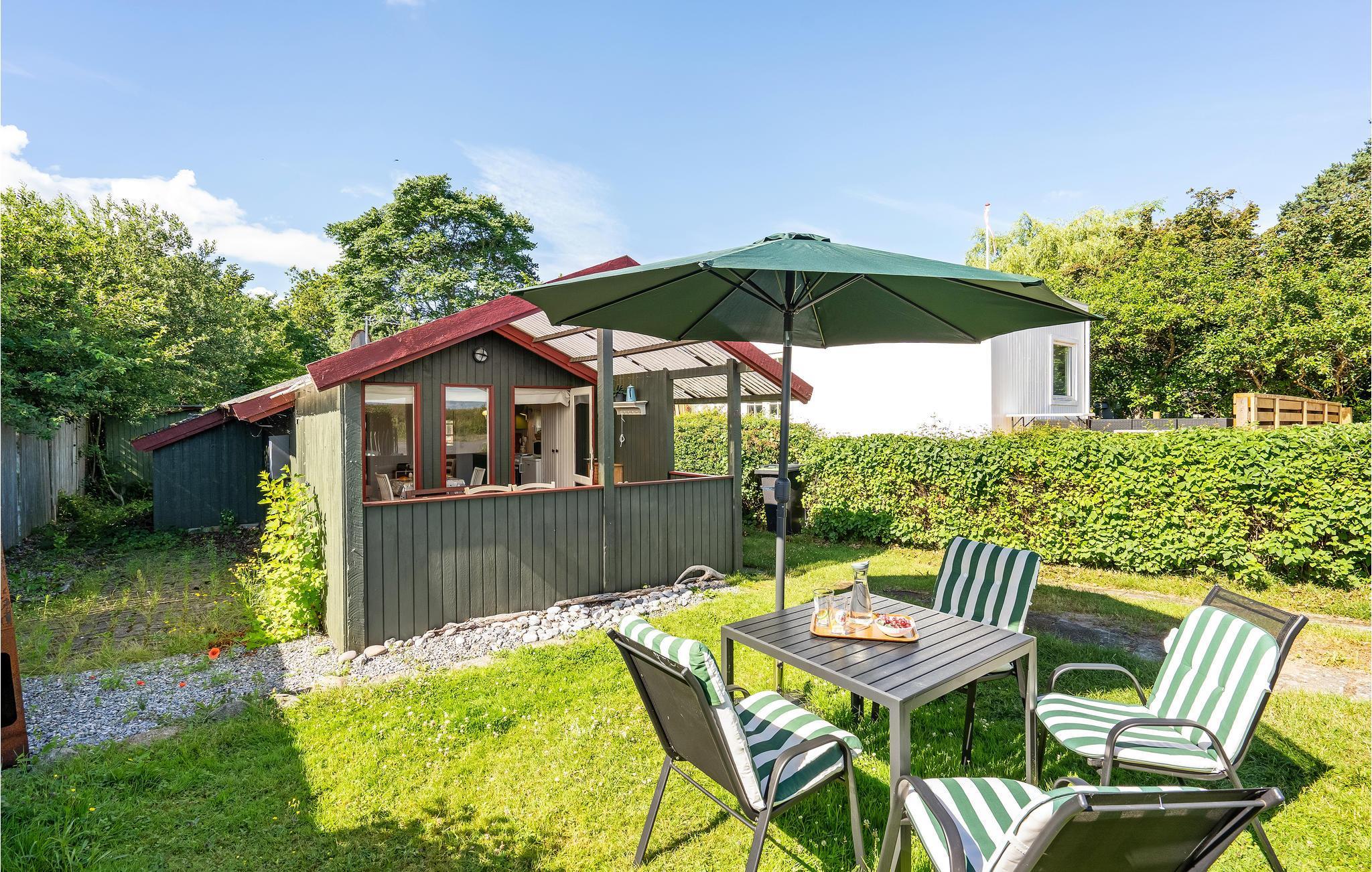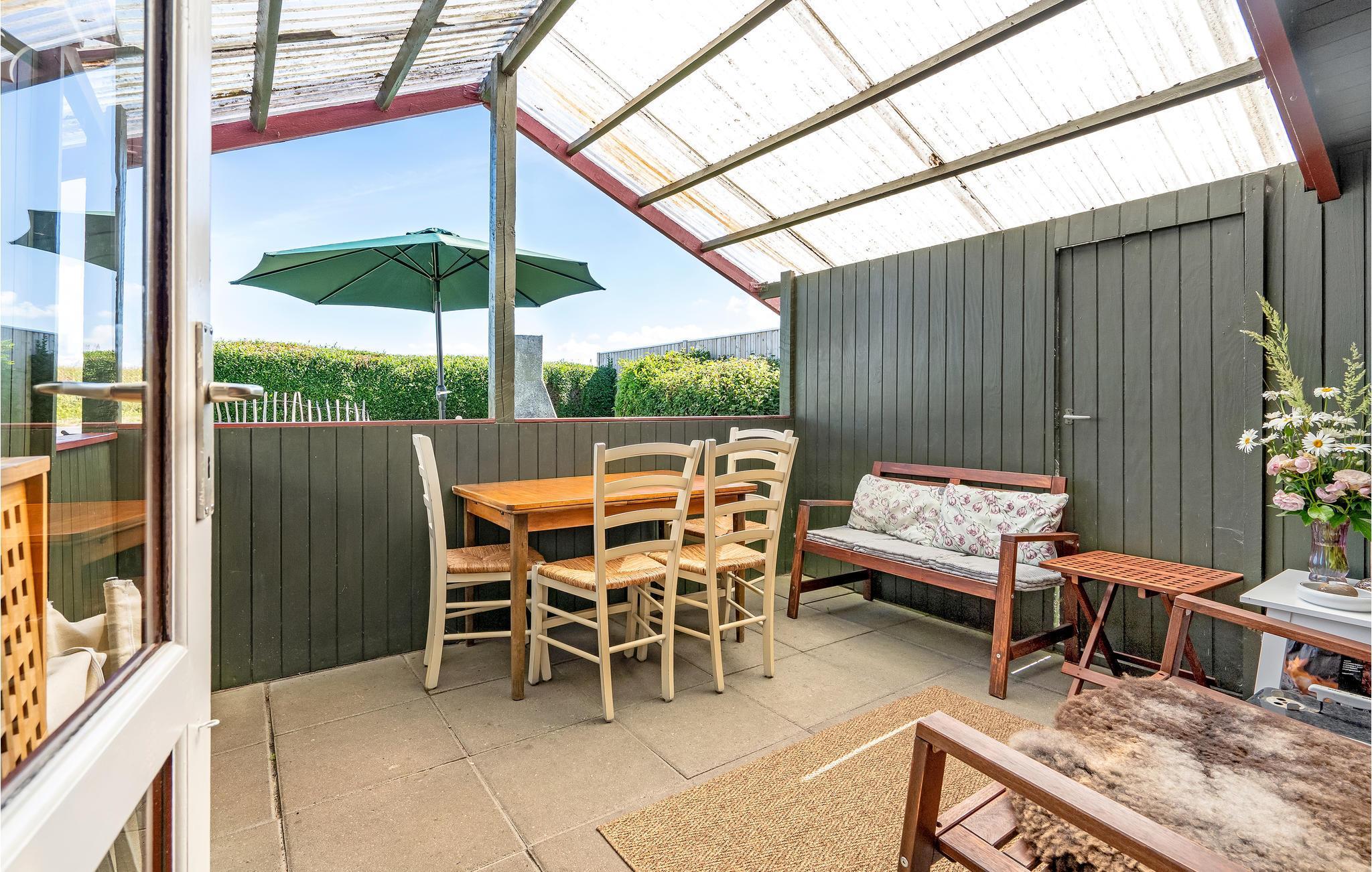 Sommerhuset har en nydelig overdækket terrasse, hvor I kan drikke morgenkaffen, nyde solen og en god bog og tilberede lækker mad på grillen til de lange, lyse sommeraftener. Der er desuden en lille, ugeneret baghave, med masser af sol, læ og privathed.