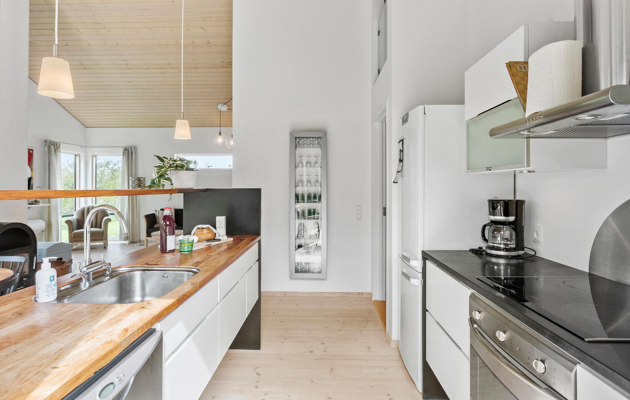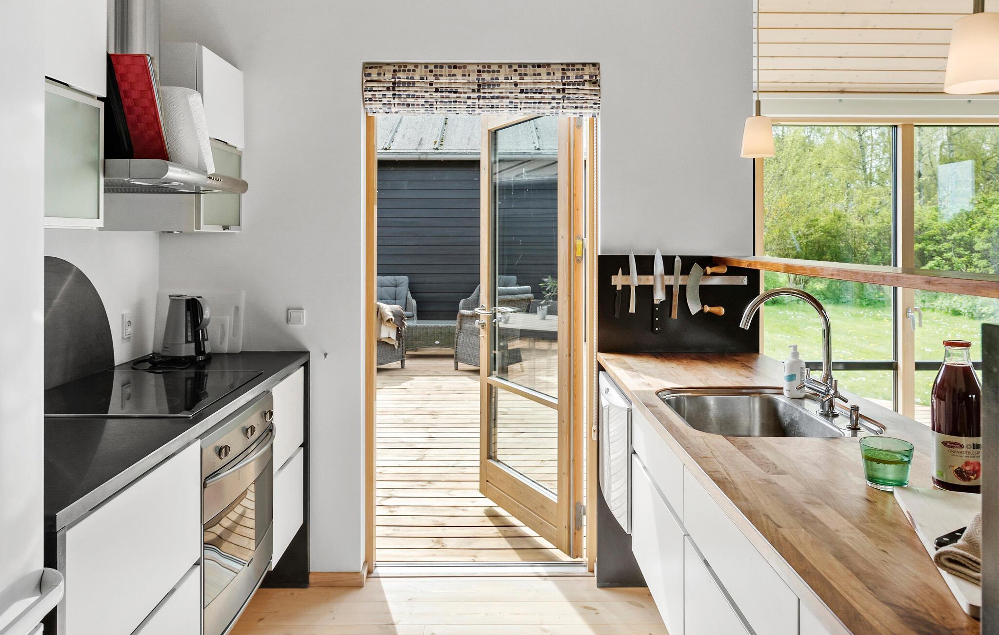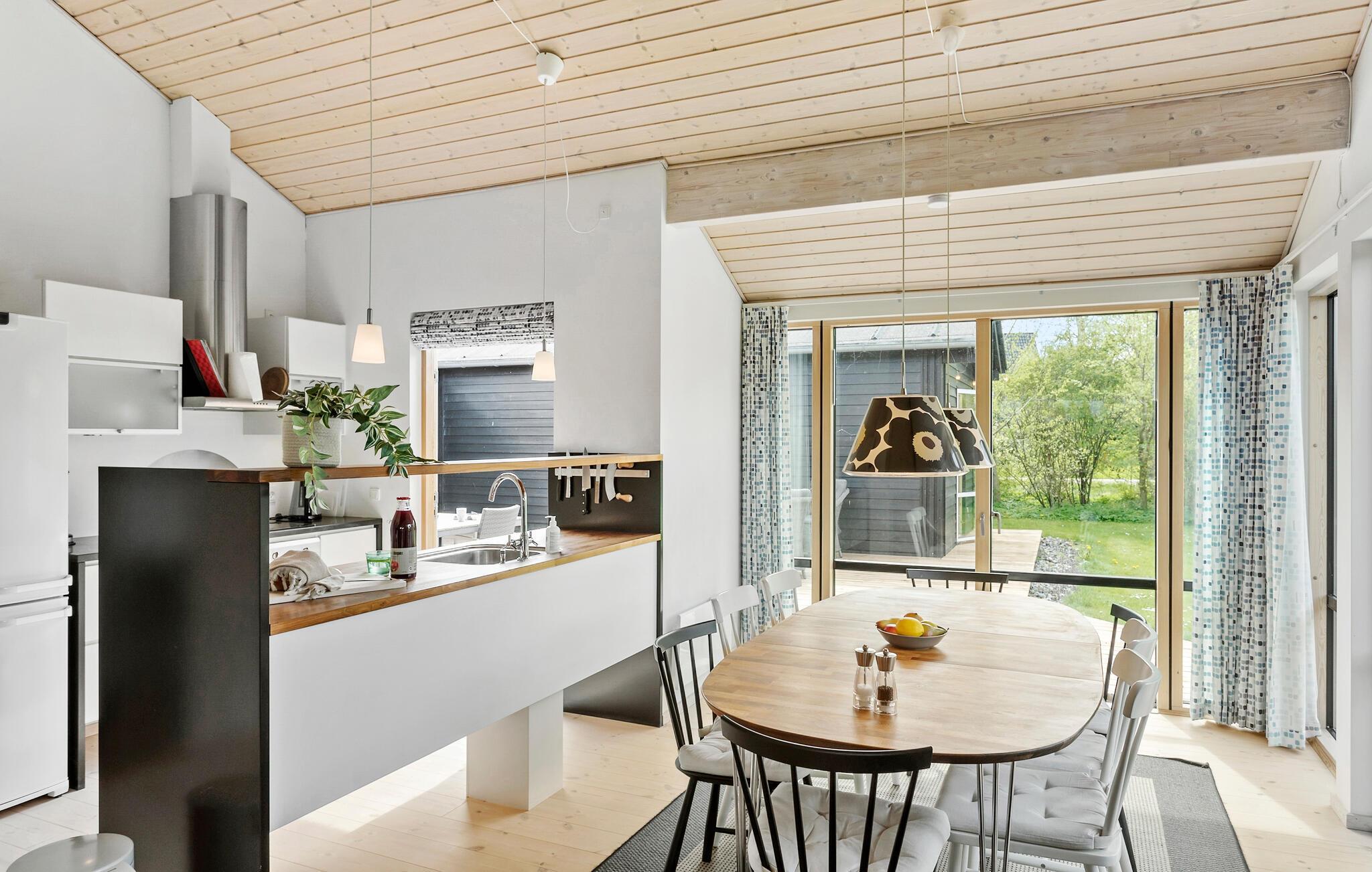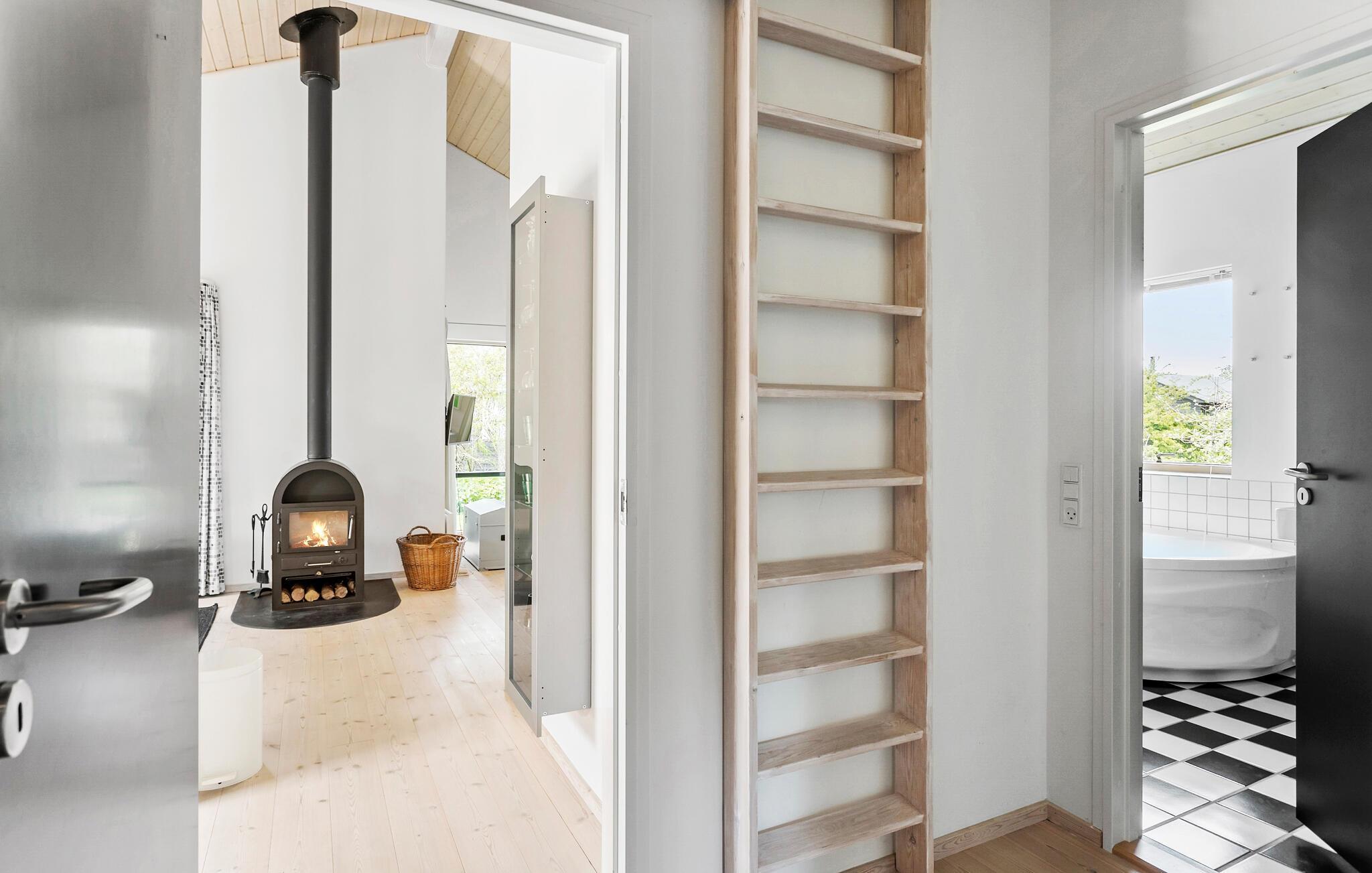 Tag en velfortjent pause fra hverdagen og rejs til Ulvshale, hvor I i dette skønne hus får alt, I behøver, til et aldeles bekymringsfrit ophold tæt på stranden. Boligen består bygninger, der gør det til den ideelle base for to vennefamilier, der ønsker en ferie med det helt rette mix af sociale stunder og muligheden for at trække sig lidt tilbage til privaten. Indretningen fremtræder lyst og luftigt med træpaneler, højt til loftet og en brændeovn, der giver varme og det helt rette lydtapet til en hyggelig aften med brætspil eller en god film i sofaen. Eller måske I skal forkæle jer selv med en tur i saunaen eller spabadet?