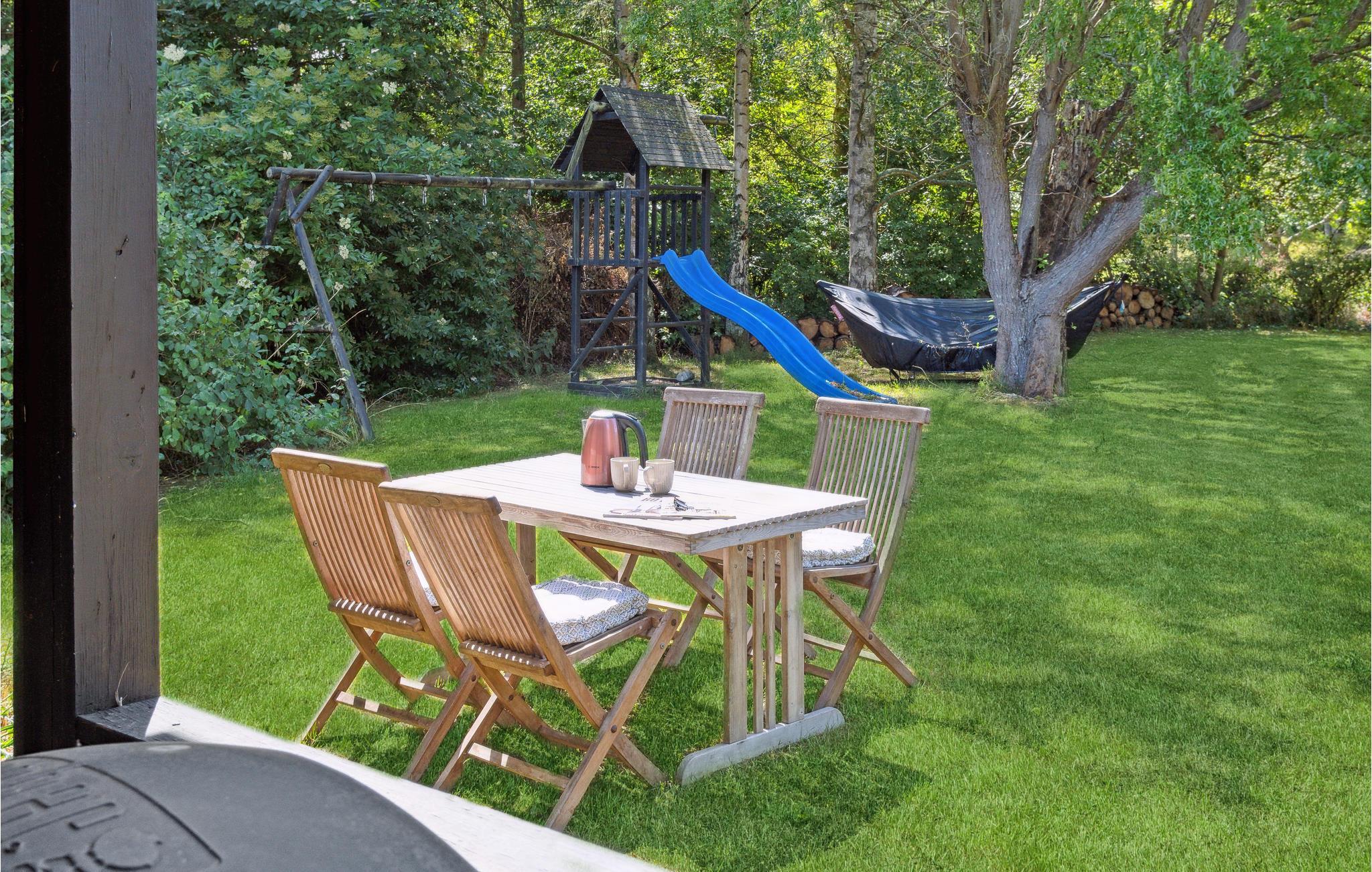Her kan I og jeres lille familie nyde et roligt og afslappende ferieophold. Det kompakte hus byder på enkel komfort, og I kan bruge det som en god og fredelig base på øen. Lav yndlingsretterne i køkkenet og nyd dem ved spisebordet eller udenfor i haven under åben himmel. Er det mindre godt vejr, kan I sidde på den overdækkede terrasse. Den store have byder på fornøjelser for jer alle. Mens I griller om aftenen, kan jeres børn lege og rutsje i haven. Et par hundrede meter fra huset ligger den smukke sandstrand, hvor I kan gå på jagt efter smukke skaller og sten.