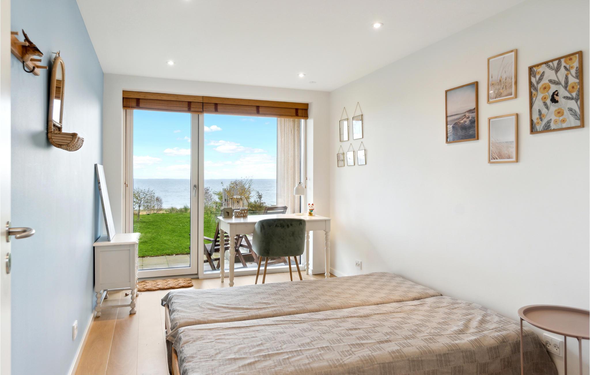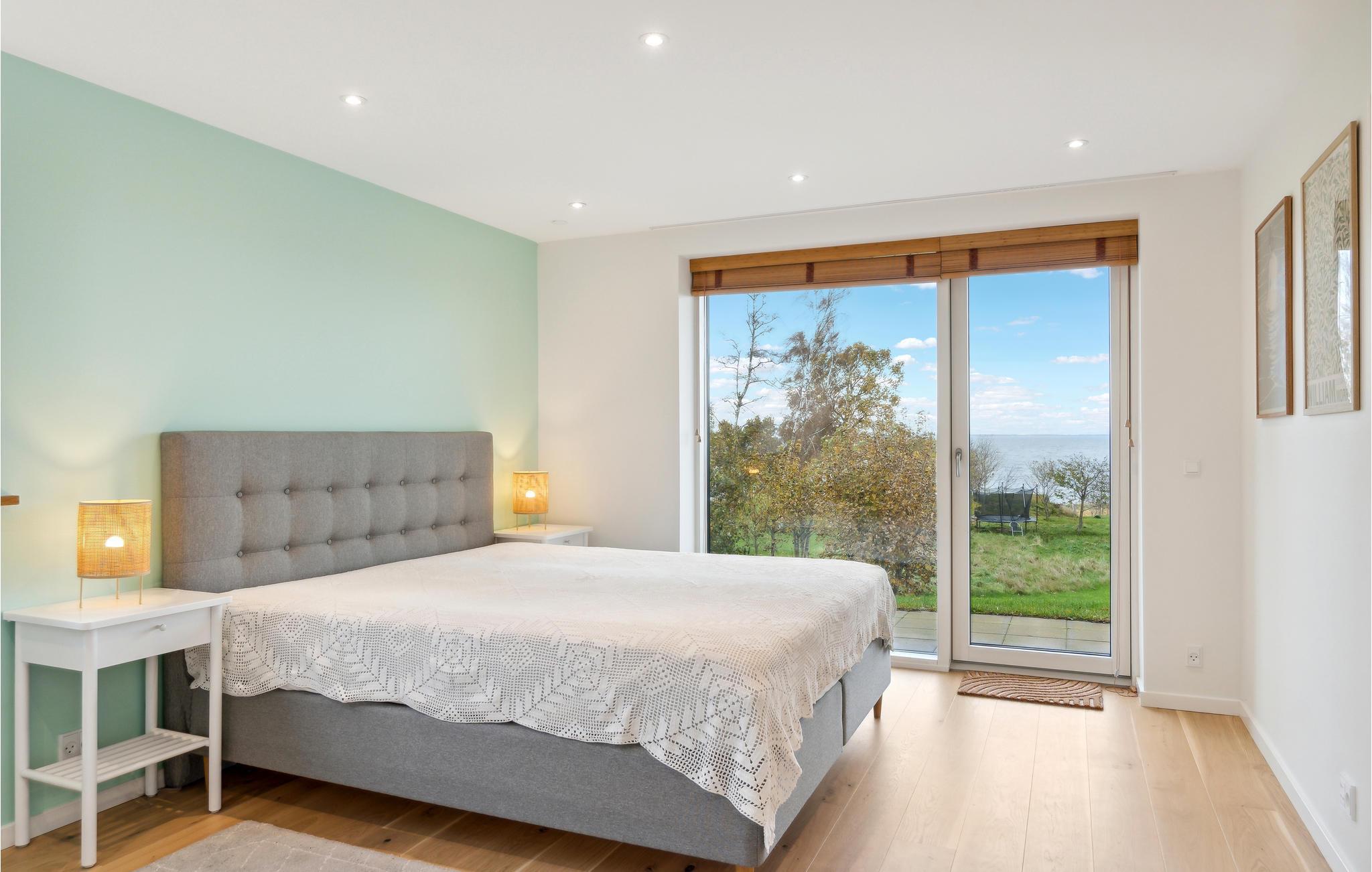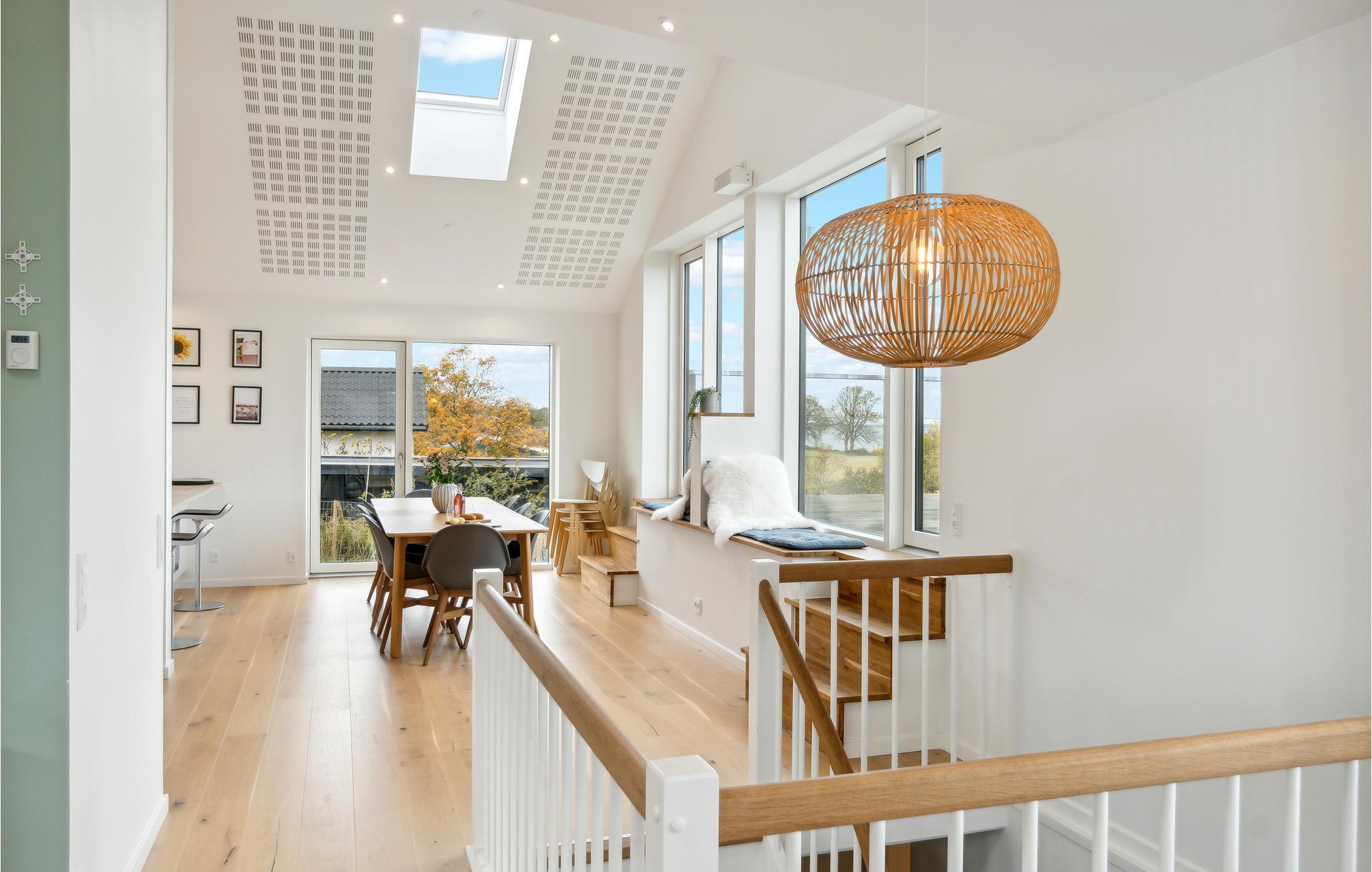Velkommen til det attraktive hus, som har en topplacering nogle få skridt fra stranden. Boligen emmer af lys, luft og moderne kvalitetsløsninger, så her tegner alt til nogle skønne dage, hvor I virkelig kan slappe af. Vinduerne går fra gulv til loft og sørger for en fantastisk udsigt. Find jer godt til rette med bøger og krydsord i de komfortable møbler eller læn jer tilbage og hold en lille tænkepause, mens I kigger ud på det store blå.