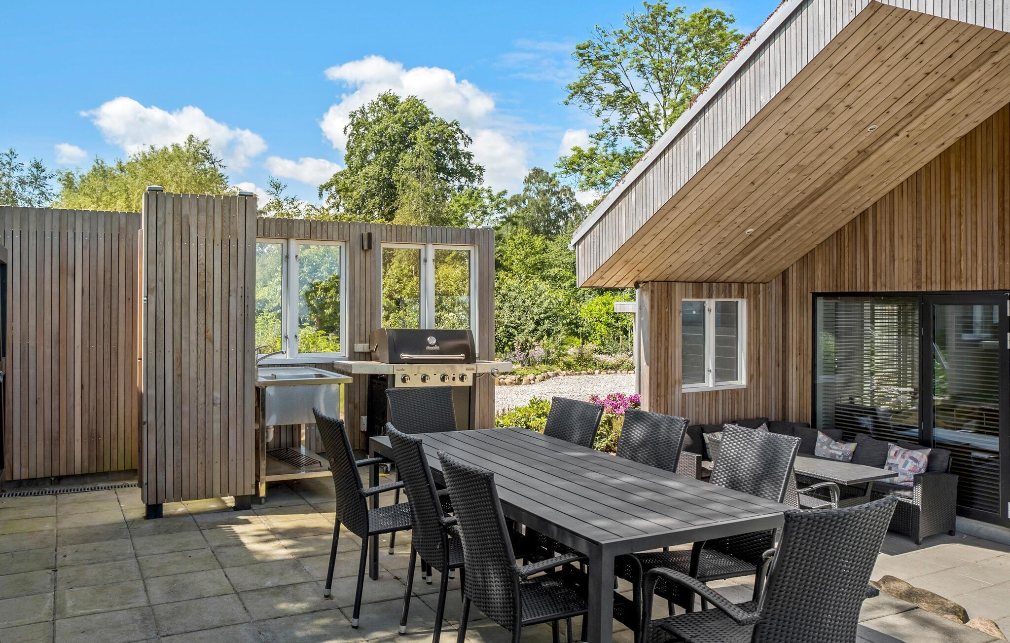I kan også se frem til skønne omgivelser udendørs, hvor der er et stort udvalg af sjove aktiviteter til børn og voksne. Nyd en kop kaffe i shelteret og på terrassen, hvor der er en skøn udsigt, tænd op i grillen og gør klar til en lækker middag og slut aftenen af med bål på græsplænen.