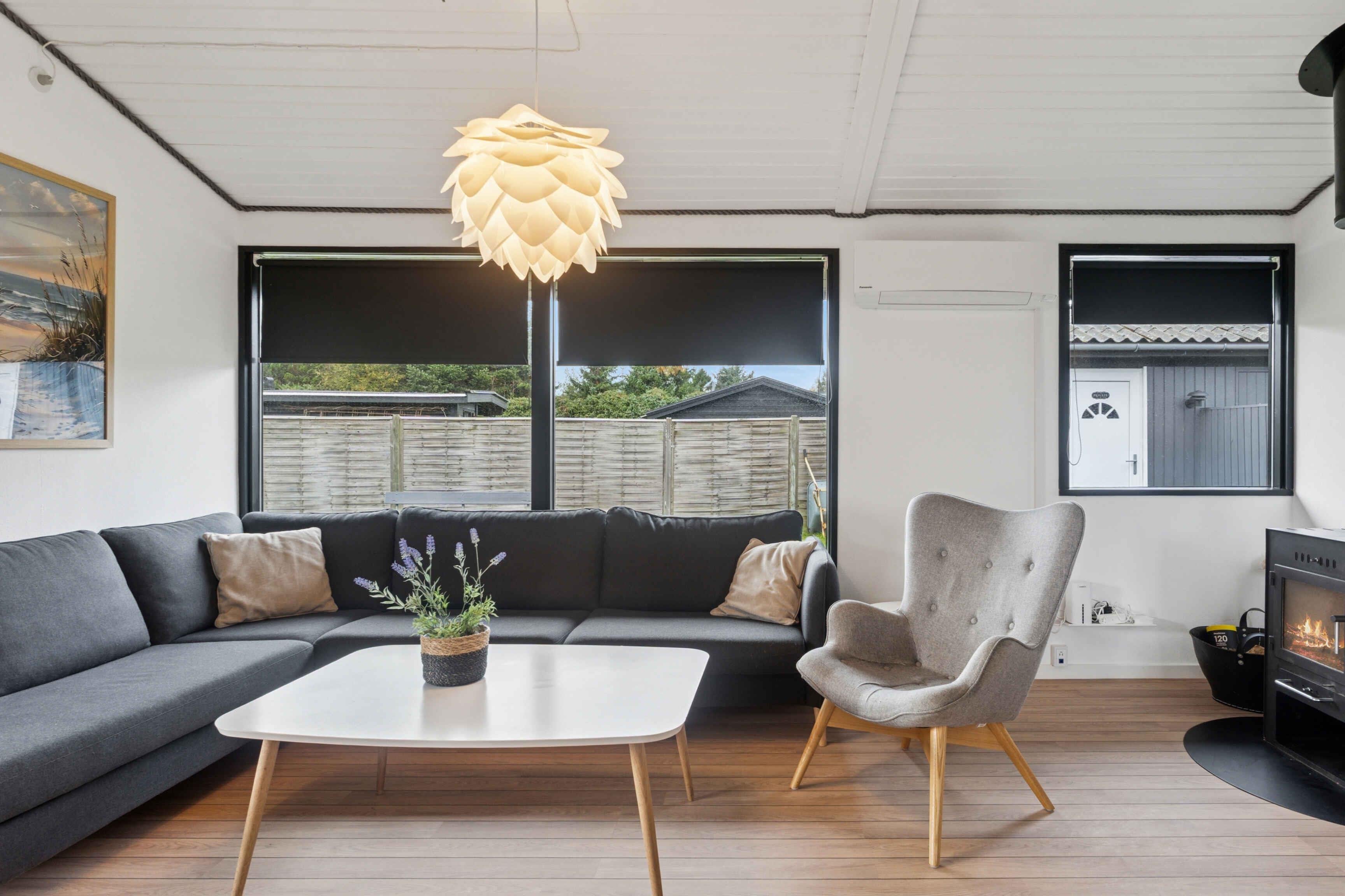 Dejligt sommerhus, nyrenoveret, varmepumpe, brændeovn, internet, i det største soveværelse er et sammenhængende legerum, ligger i naturskønt område, 1000 m til dejlig børnevenlig strand