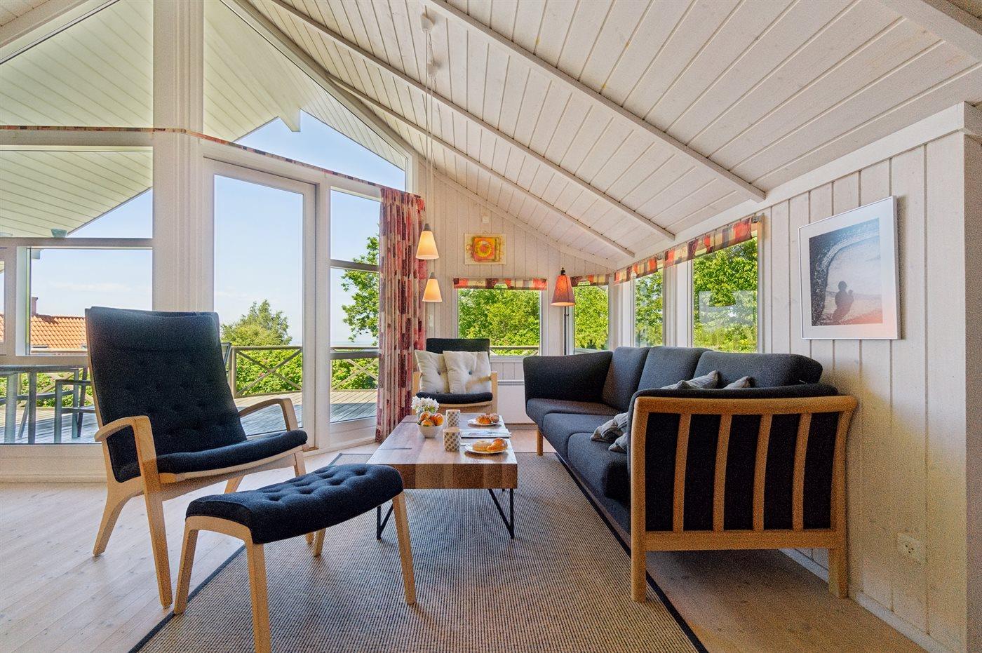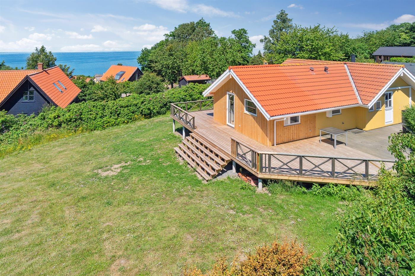 Et fantastisk beliggende sommerhus med flot udsigt over Østersøen, hvor Sverige kan skimtes i horisonten. Til huset hører en særdeles stor og til dels overdækket terrasse – her er der gode muligheder for at placere sig optimalt i forhold til solen. Huset ligger i naturskønne omgivelser i et område med gode aktivitetsmuligheder.