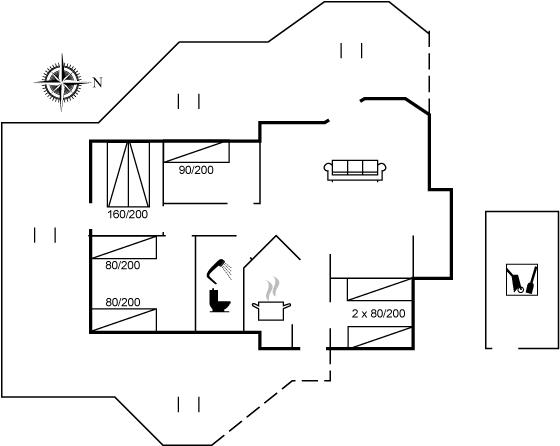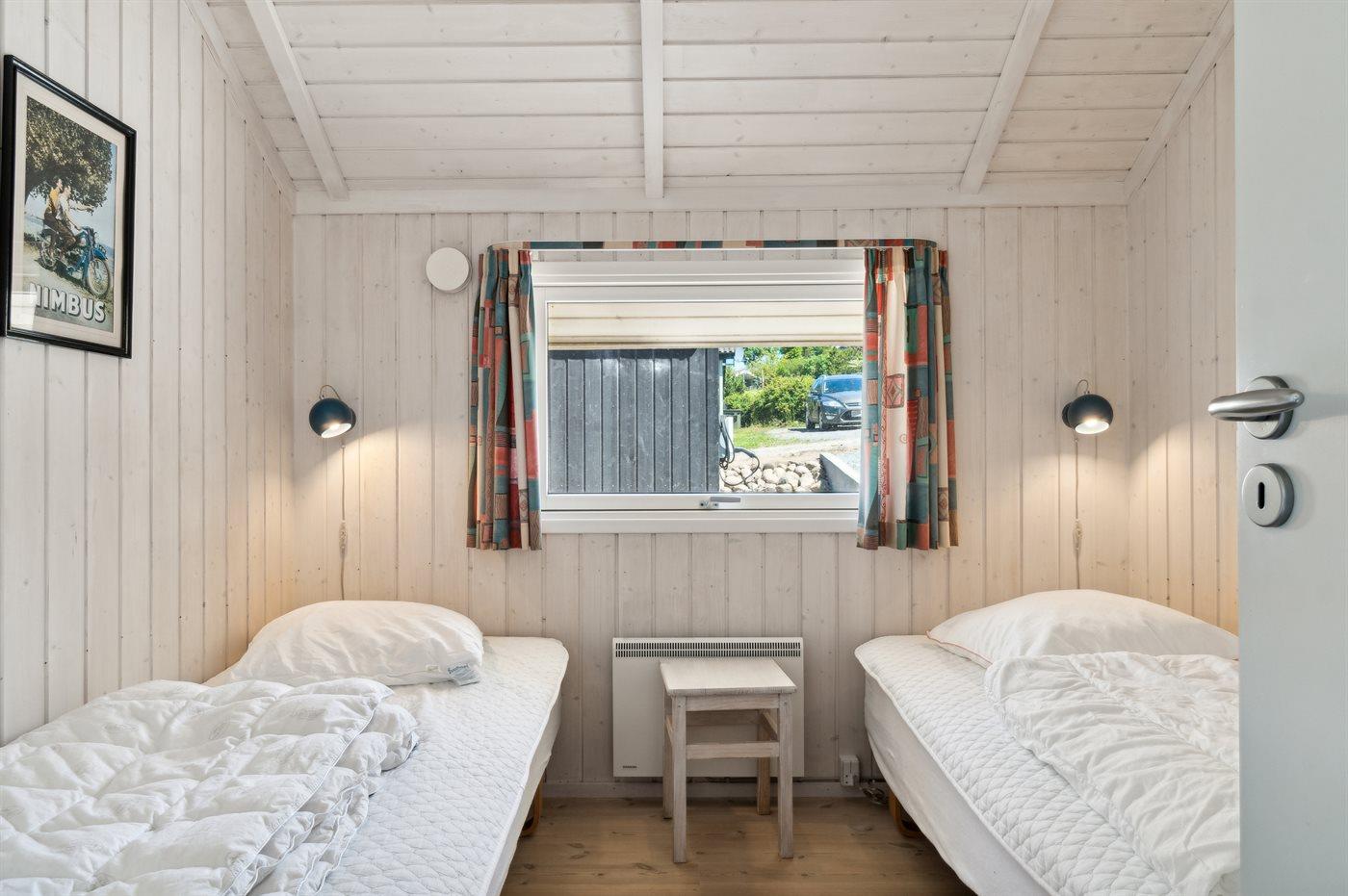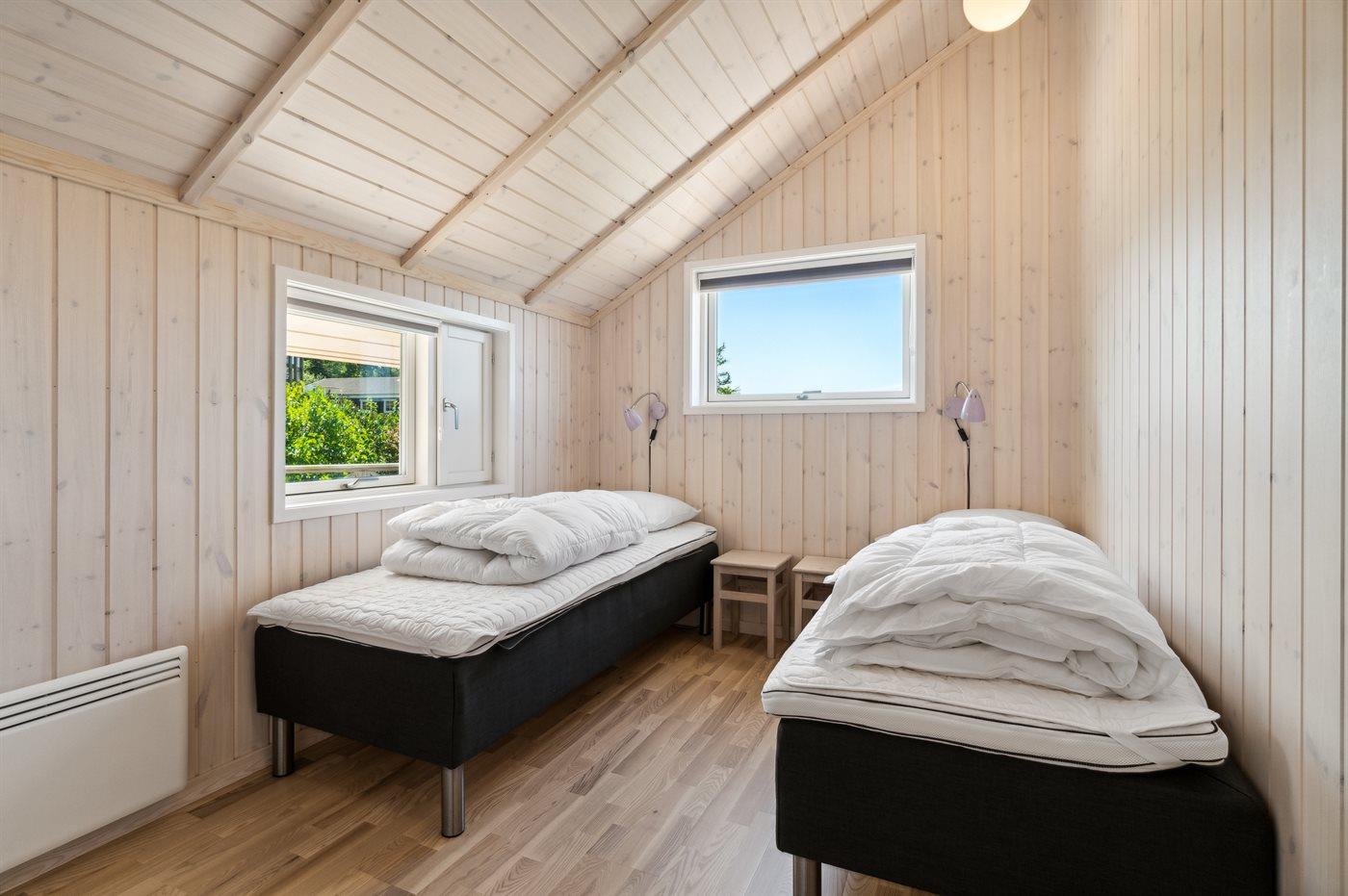 Der er i alt 4 soveværelser. Sovepladserne fordeler sig på: 2 sovepladser i dobbeltseng. 5 sovepladser i enkeltsenge.