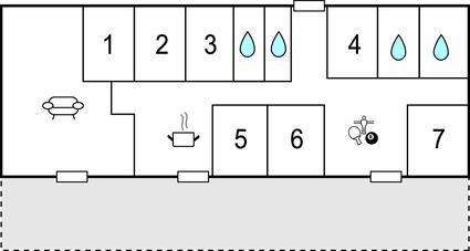 Badeværelse (nr. 1) - WC. Varmt og koldt vand. Bruser
