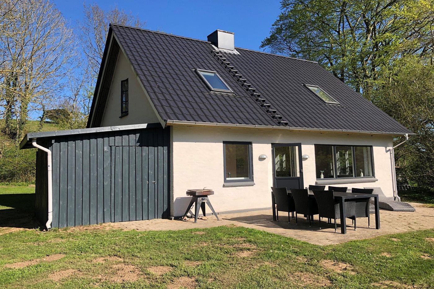 Charmerende sommerhus ved Aabenraa Fjord med naturudsigt, terrasse og moderne faciliteter i en fredelig grøn oase.