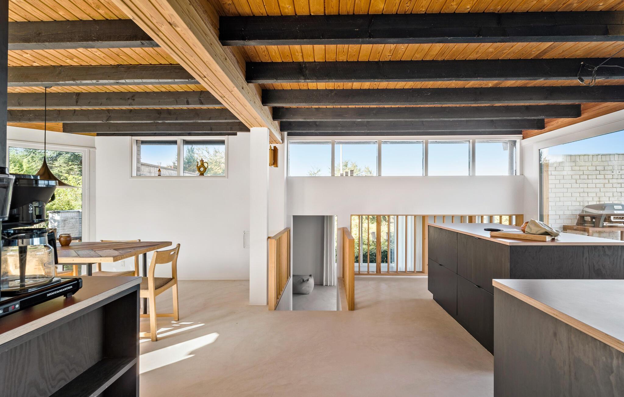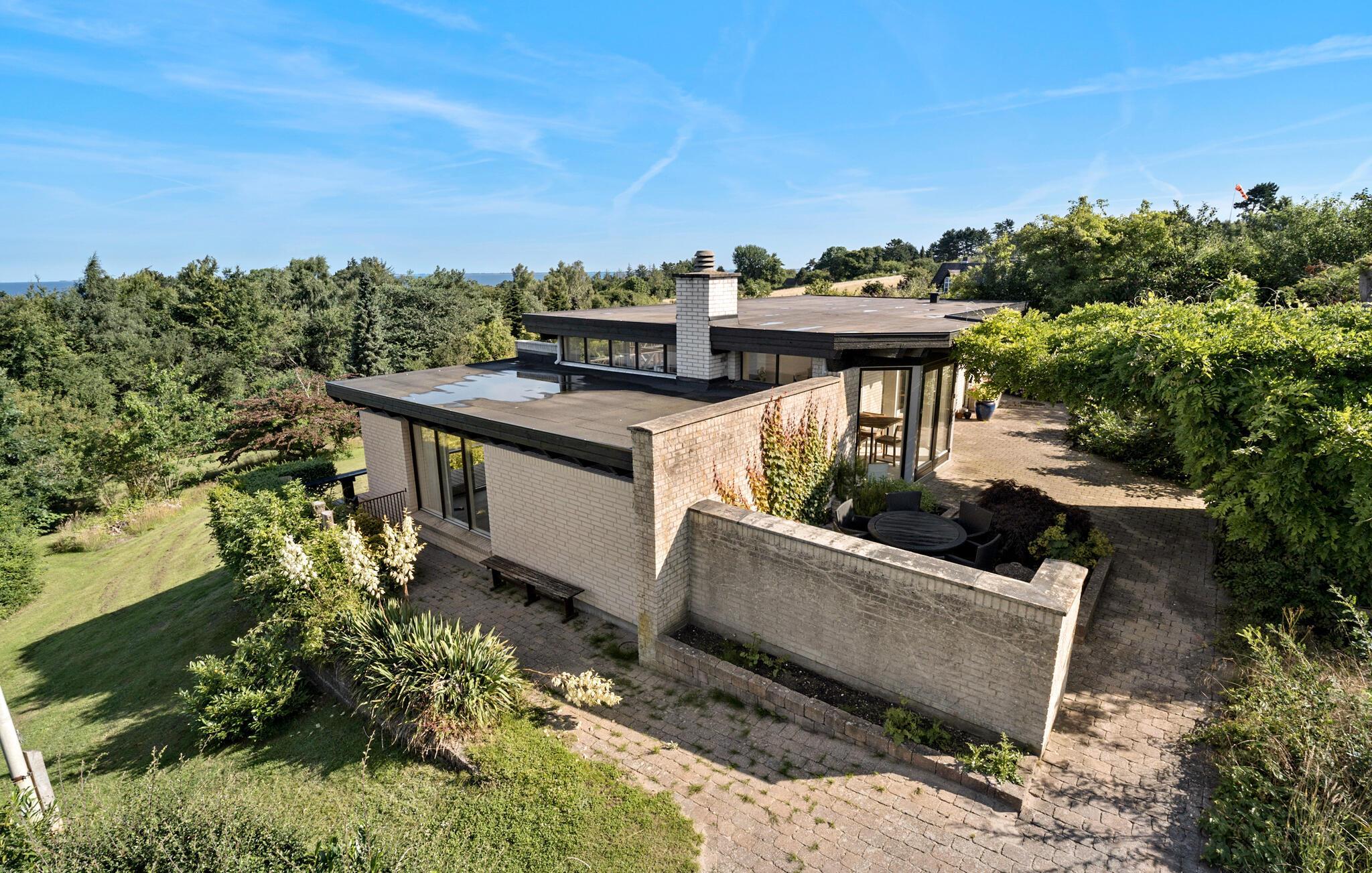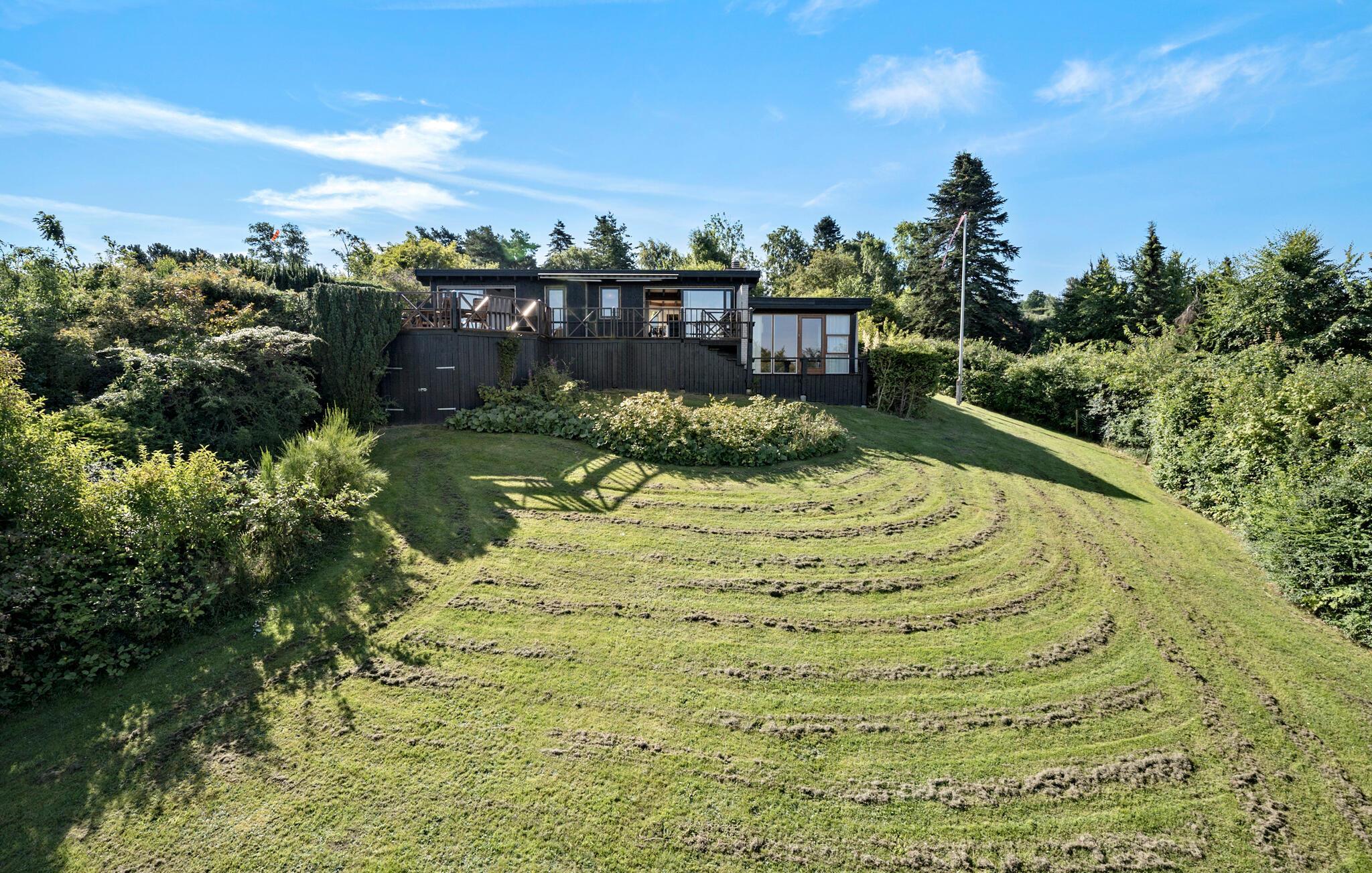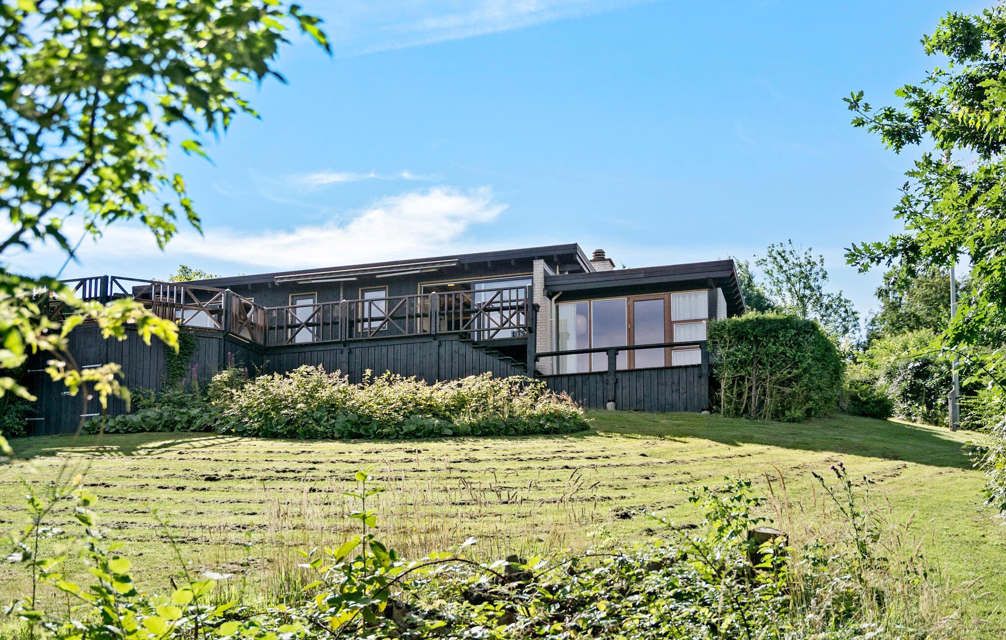 Dette skønne sommerhus ligger på en bakke og I har derfor en vidunderlig udsigt over det omkringliggende landskab og delvis havudsigt over Sejerø Bugt. Indenfor skaber de smukke træbjælker i loftet og cementgulvet en rustik og varm stemning, der passer helt optimalt ind i husets ellers moderne og stilrene udtryk. Der er store vinduespartier flere steder i huset, så naturen bliver nærmest en del af indretningen. Så om I forbereder mad i det åbne køkken, nyder morgenkaffen ved spisebordet eller blot får en stille stund i sofaen, kan I kigge ud på den smukke natur I er omgivet af.