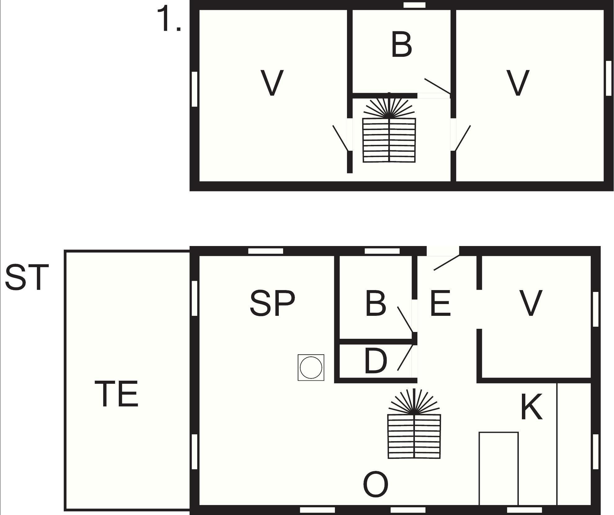 1 Opholdsstue: Brændeovn, radio, stereoanlæg med cd, tv, parabol