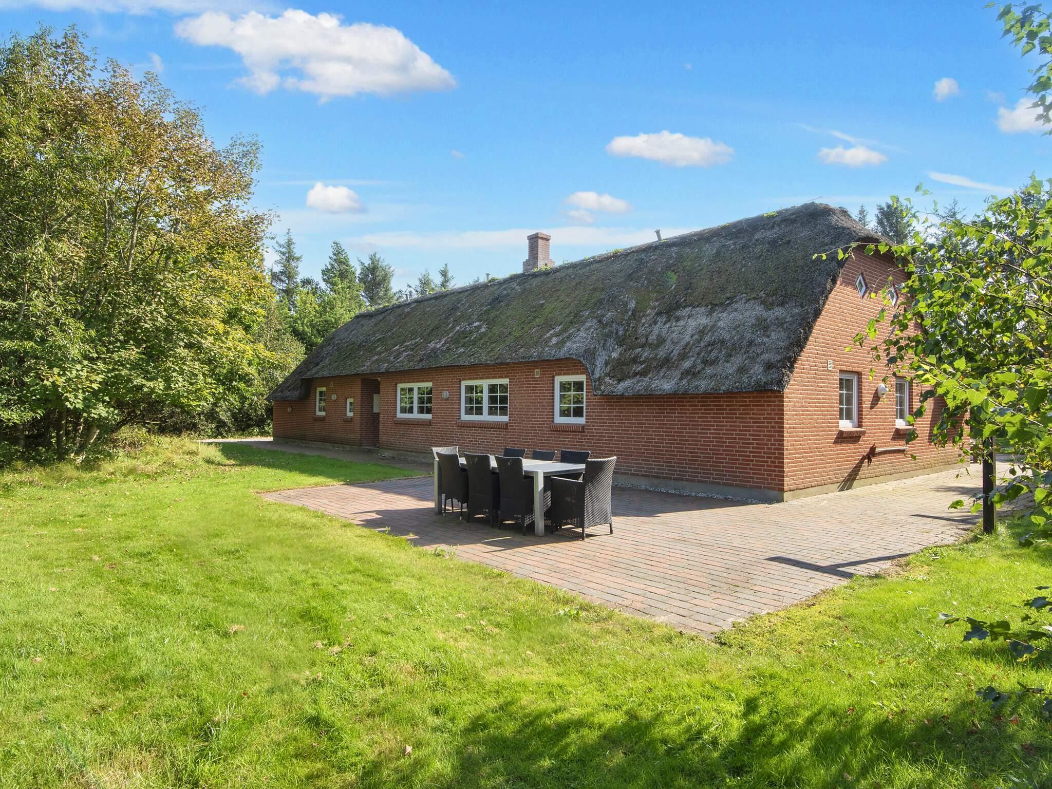 Luksuriøst stråtækt sommerhus nær Vesterhavet med pool, sauna, terrasse og plads til hele familien.