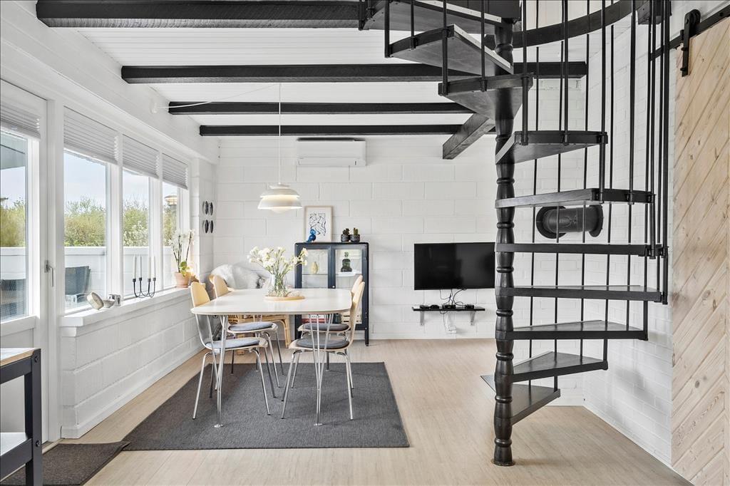 Yderst smukt feriehus, med en dejlig atmosfære der bare emmer af ferie og godt humør. Giv jer i kast med at lave et lækkert aftensmåltid i det veludstyrede og nyrenoverede køkken, hvor der er god plads til hele familien, og med det smukke lysindfald kan I nyde solens stråler selvom I er indendørs. Sæt jer omkring det flotte spisebord i spiseafdelingen der ligger i åben forbindelse med opholdsstue og køkken, her kan I nyde aftensmaden som en samlet flok, men det gør det også muligt at lave forskellige ting uden at være væk fra hinanden. Efter en lang dag med at udforske området kan I tænde op for brændeovnen og nyde dens dejlige varme og herlige knitrende lyd der spreder sig i rummet og giver en fantastisk ro.