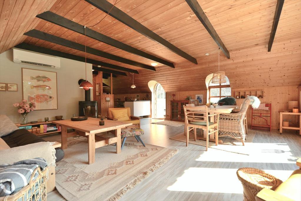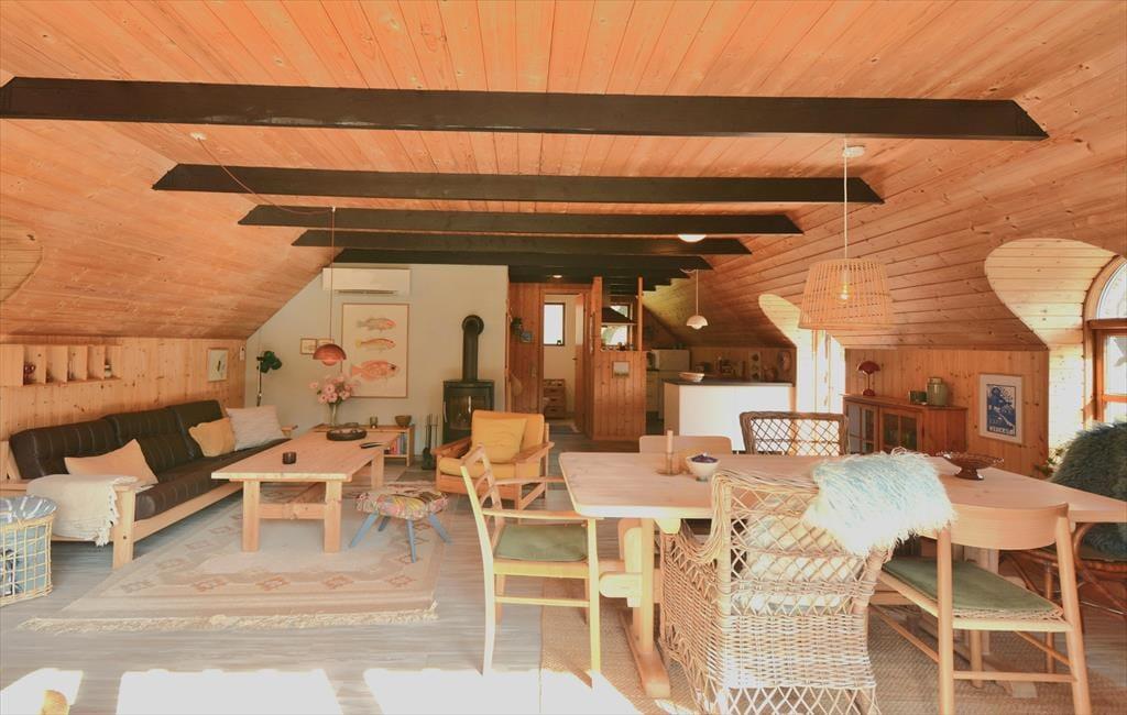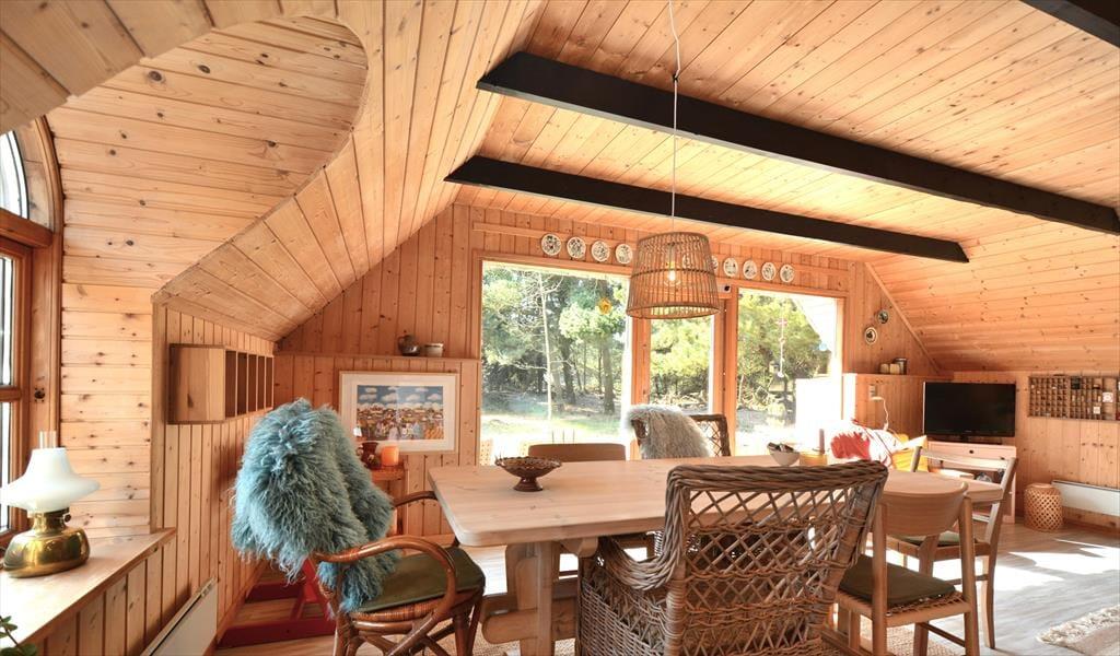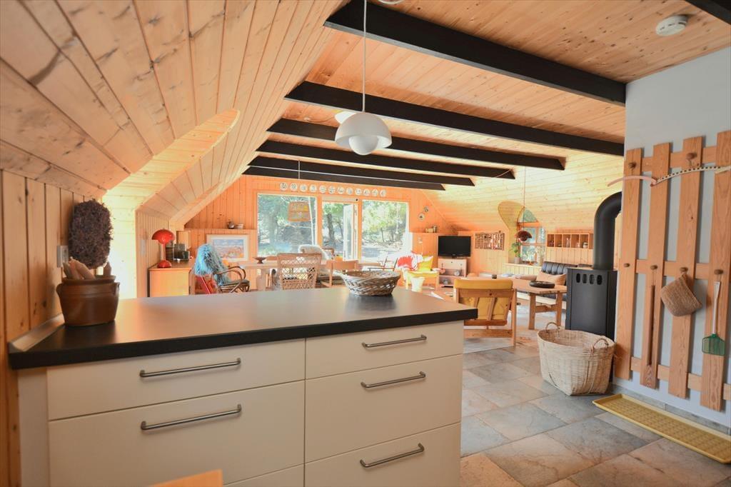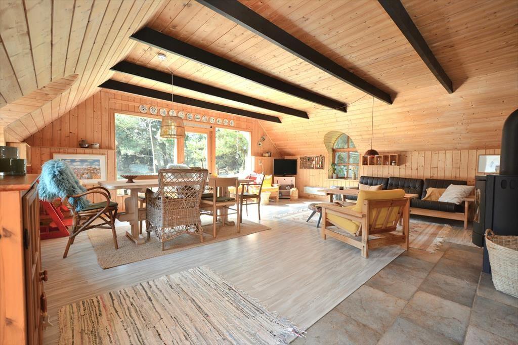 Når I træder ind i dette charmerende feriehus, bliver I mødt af en fantastisk stue der emmer af afslapning og ro, her kan I nyde den gode udsigt ud gennem de store vinduer. Sæt jer ved det store spisebord med de charmerende stole der giver stuen et farverigt pust. Køkkenet ligger i åben forbindelse med spiseafdeling og opholdsstue, så her kan I rigtigt nyde feriens afslappende atmosfære, og glem ikke at tænde op for den dejlige brændeovn og nyde dens dejlige varme og hyggelige knitrende lyd. Husets træbeklædte vægge og lofter giver huset en dejlige landlig charme som man kun kan holde af. Det dejlige anneks gør det også muligt for jer at trække jer tilbage og nyde en rolig stund i fred og ro på en af de to skønne værelser. Når I trænger til komplet afslapning, kan I tænde op i den dejlige spa, der giver både varme og ro. Huset er perfekt til 2 familier, eller hvis I har større børn med.