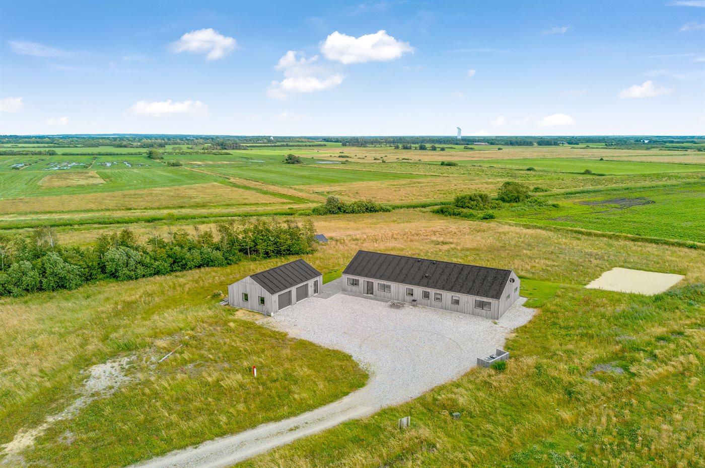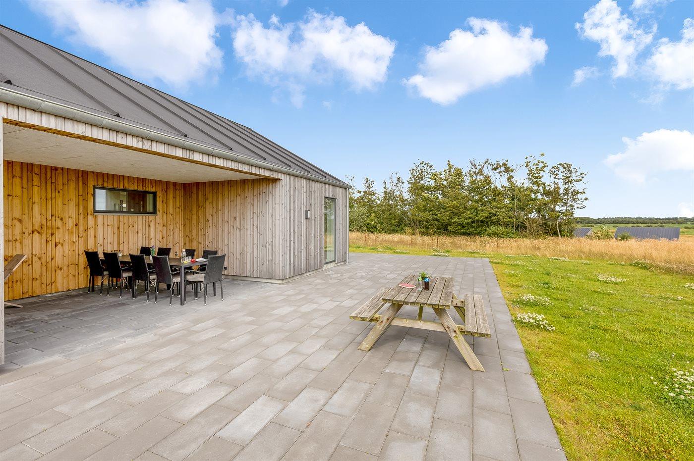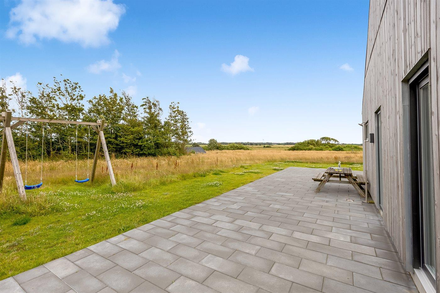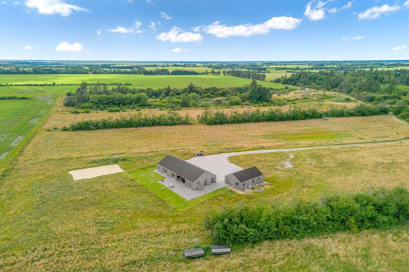 Ferieboligen er beliggende på en 78043 m² stor naturgrund. Der er 6000 m til havet. Nærmeste forretning er beliggende i en afstand af 4000 m. Der er en golfbane i en afstand af 20000 m. Til ferieboligen hører 100 m² terrasseareal. Desuden er der 50 m² overdækket terrasse. Gynge. Beachvolley. Bålsted. Shelter. Udendørs bruser. Der er installeret stik til opladning af elbil. Parkering ved ferieboligen.
