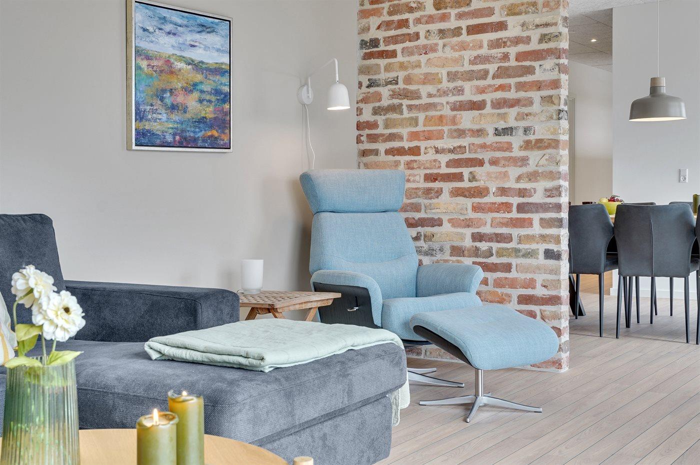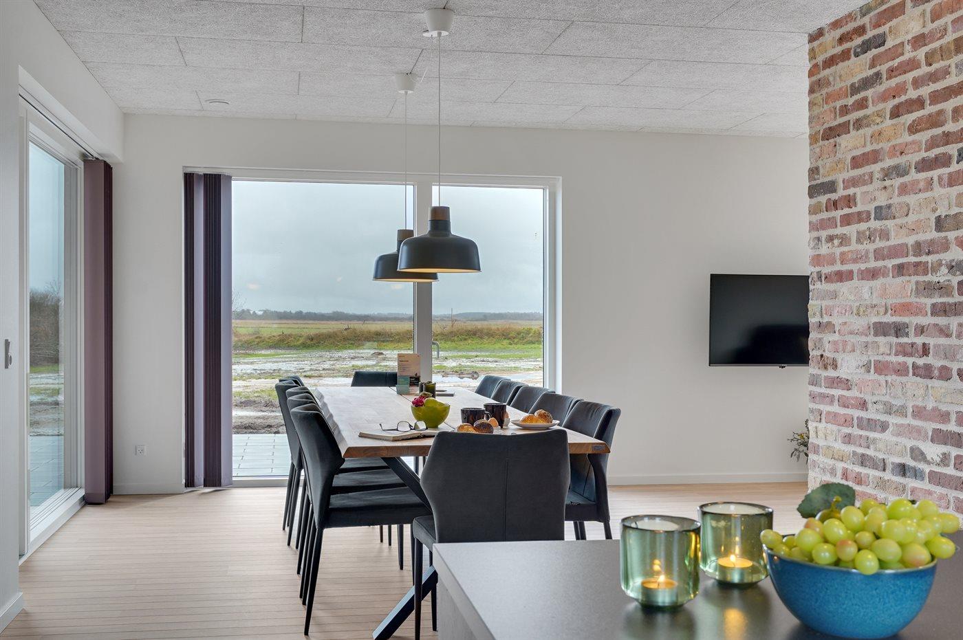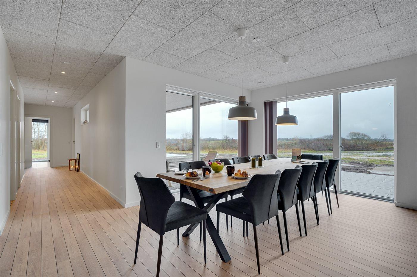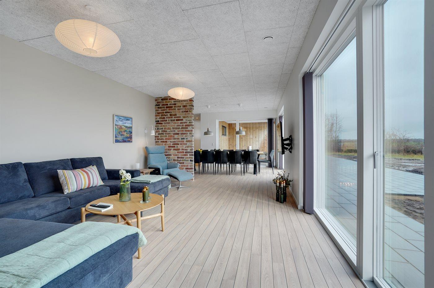 Flot sommerhus i Vedersø Klit med aktivitetsrum, store terrasser og naturgrund, perfekt til familieferie og afslapning.