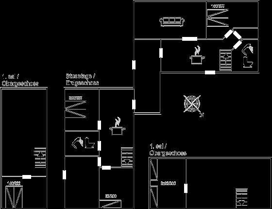 Der er 2 badeværelser med bruseniche og 2 toiletter. Badekar.