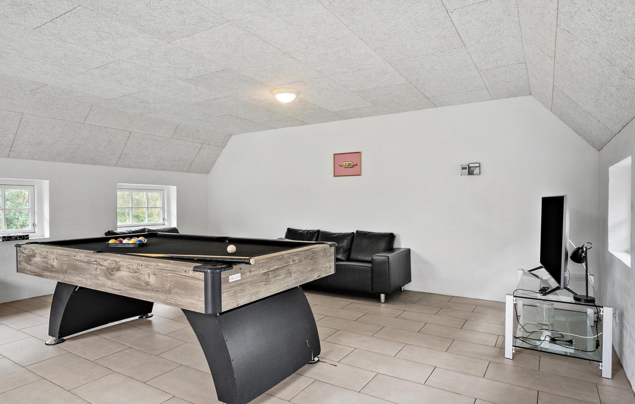 Velkommen til Vedersø Klit og denne mageløse ramme om jeres ferie! Her får I en skøn bolig med plads til tre familier eller en større rejsegruppe. Indretningen er klassisk, enkel og smagfuld med store, åbne rum, hvor lyset falder smukt ind gennem de høje vinduespartier. Det lækre køkken lægger op til hyggelige madlavningsaftener, hvor alle kan være med. Efter en dejlig middag kan I finde sammen i de bløde møbler, sætte en film på eller hygge jer med brætspil, mens ilden knitrer i brændeovnen. Husets faciliteter topper med poolrummet, som bliver et rent slaraffenland for børn og voksne. Der er både swimmingpool, spabad og en sauna, hvor I kan nyde en stille stund oven på frisk gåtur.