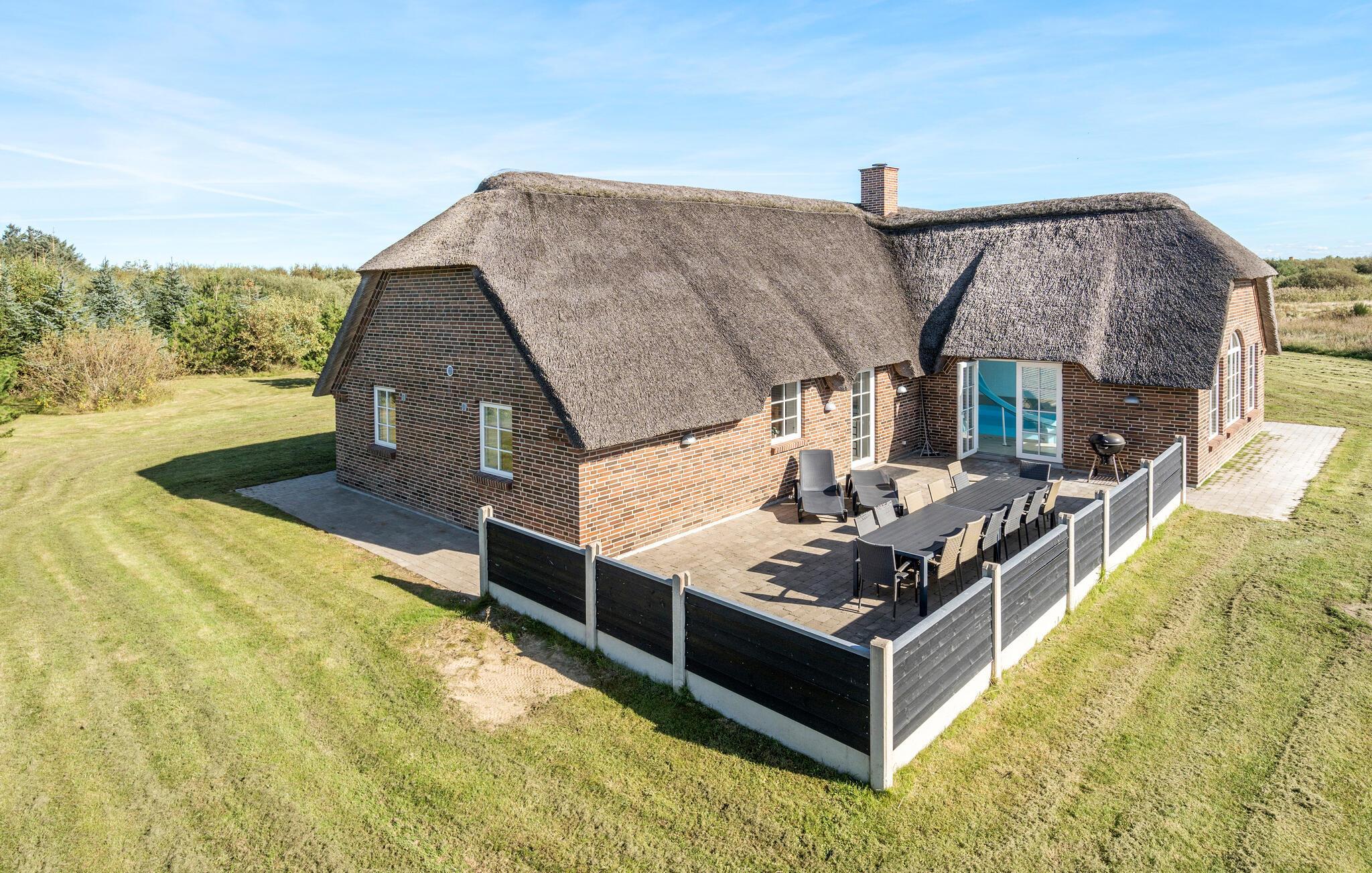 Charmerende feriehus med stråtag, indendørs pool, sauna og kort afstand til stranden ved Vedersø Klit.