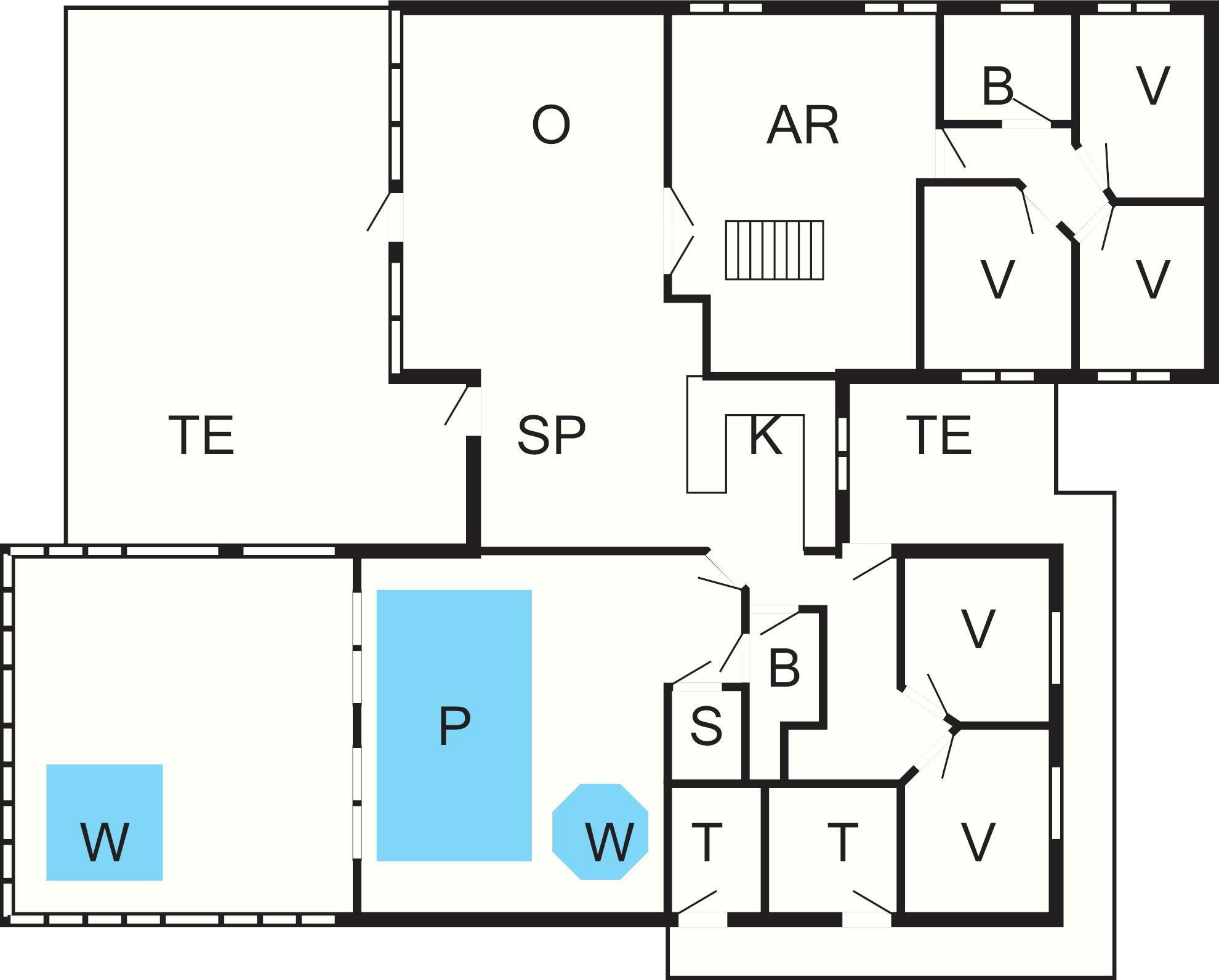 Huset er yderst rummeligt og veldimensioneret og er bygget op omkring to separate soveafdelinger og i alt 2 store badeværelser. Begge badeværelser er med bruseniche og gulvvarme.